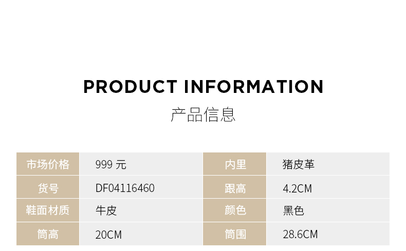 Dfuse迪芙斯冬季新款牛皮方头优雅花扣粗跟短靴女DF34116015