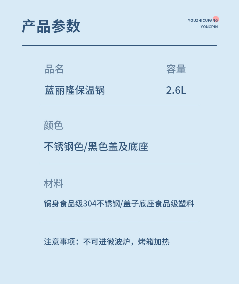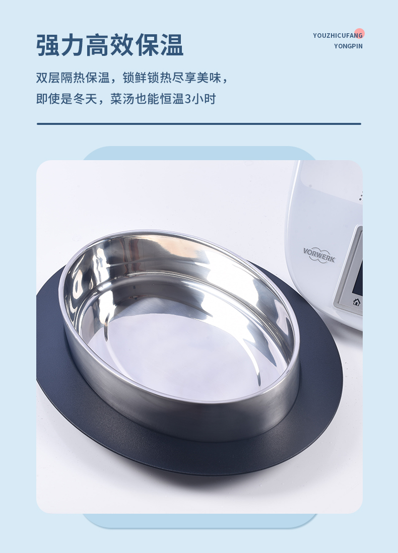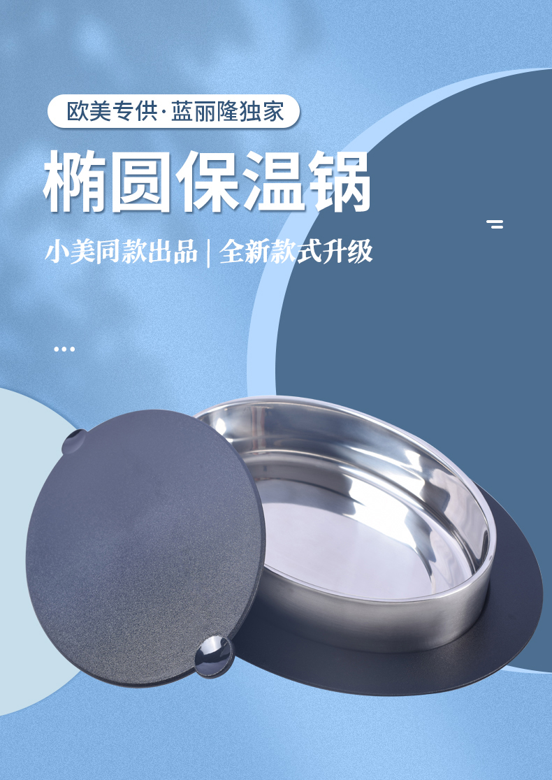 美善品专用椭圆形保温锅2.6L双层真空 304不锈钢保温锅小美专用