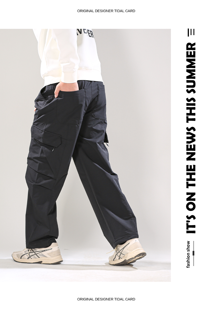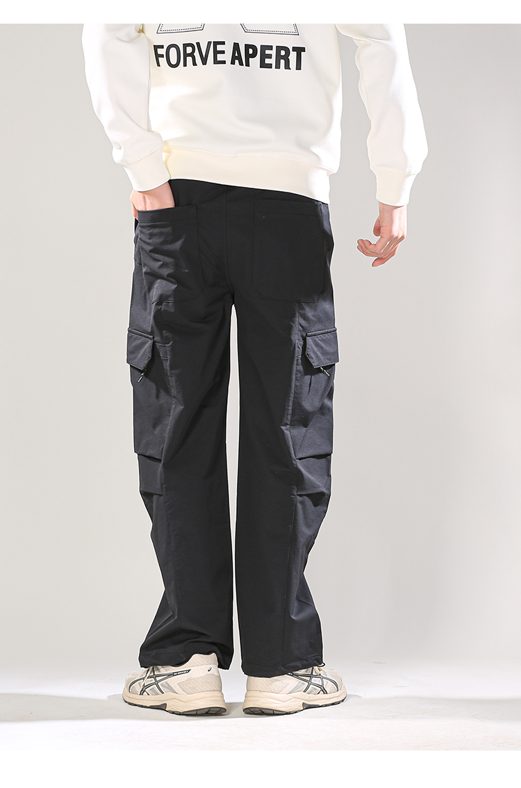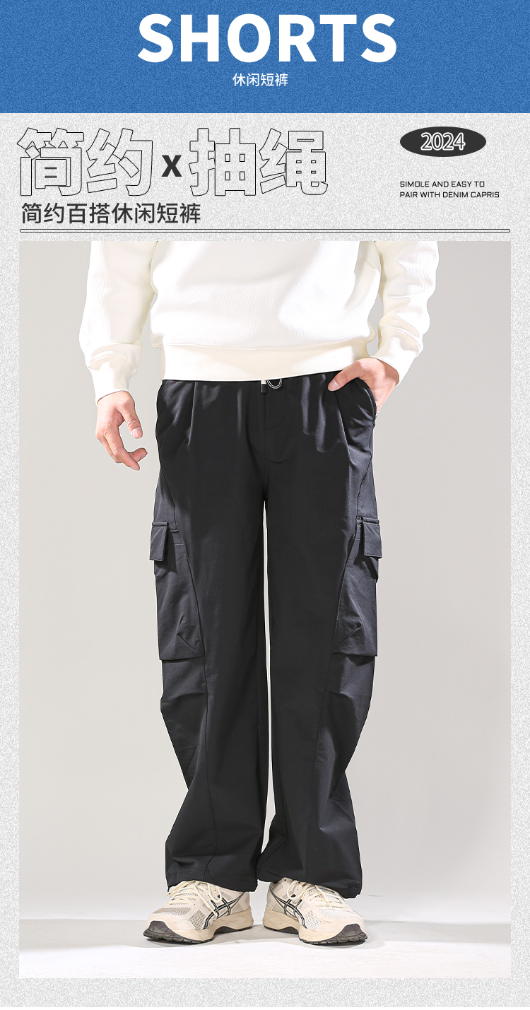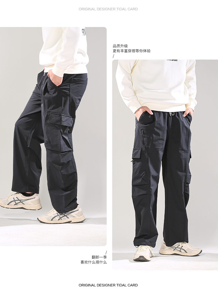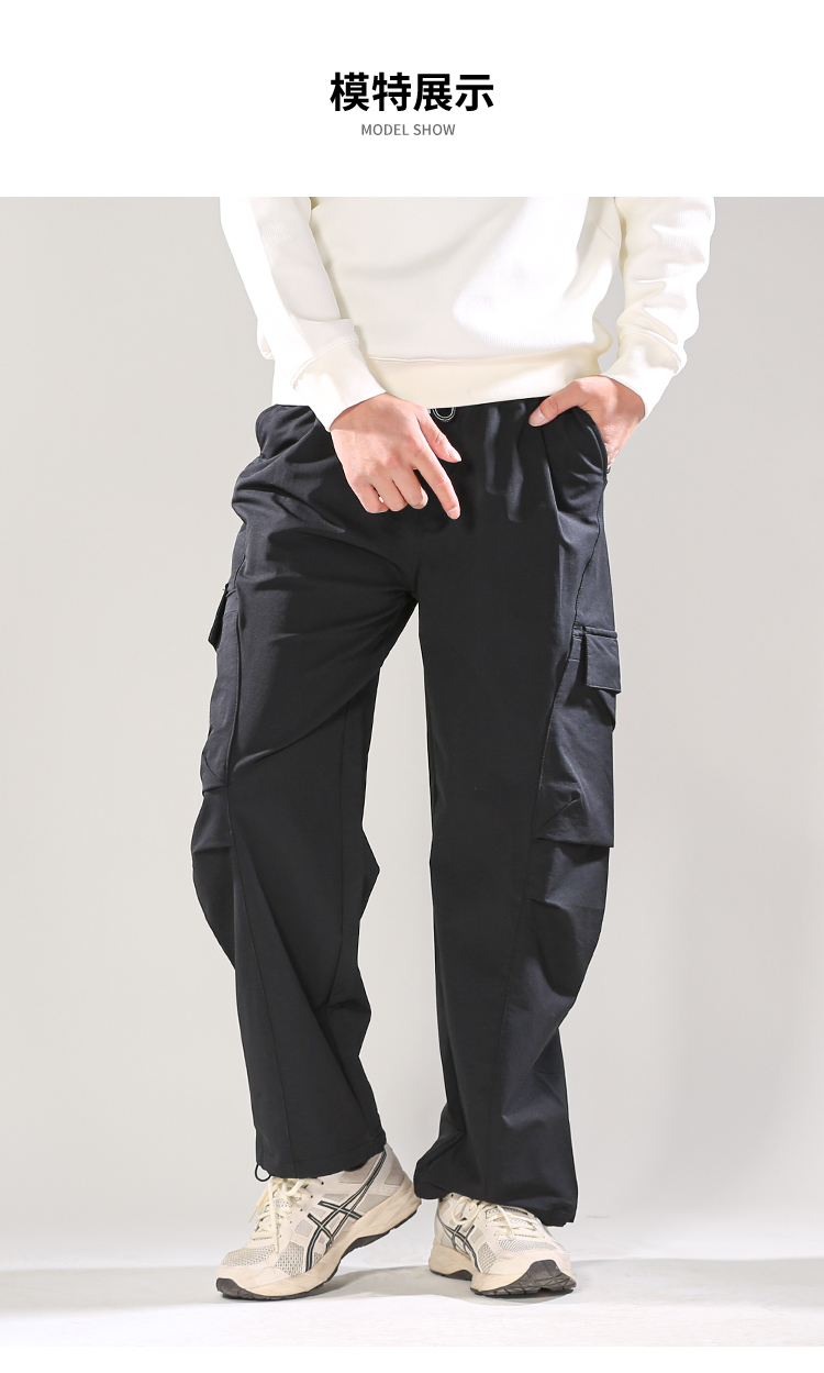 DRONKOO 2024 撞色抽绳两侧立体袋盖脚口抽绳中厚工装长裤
