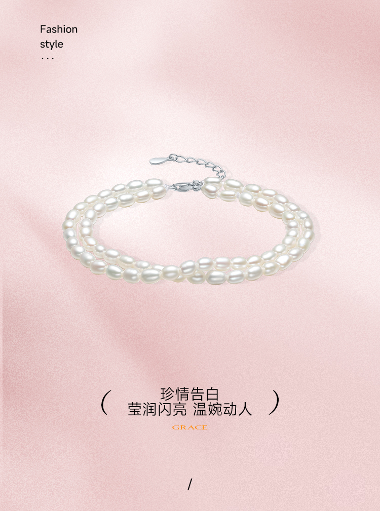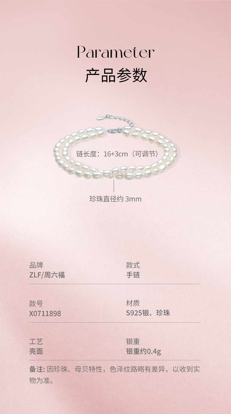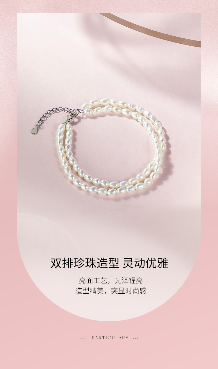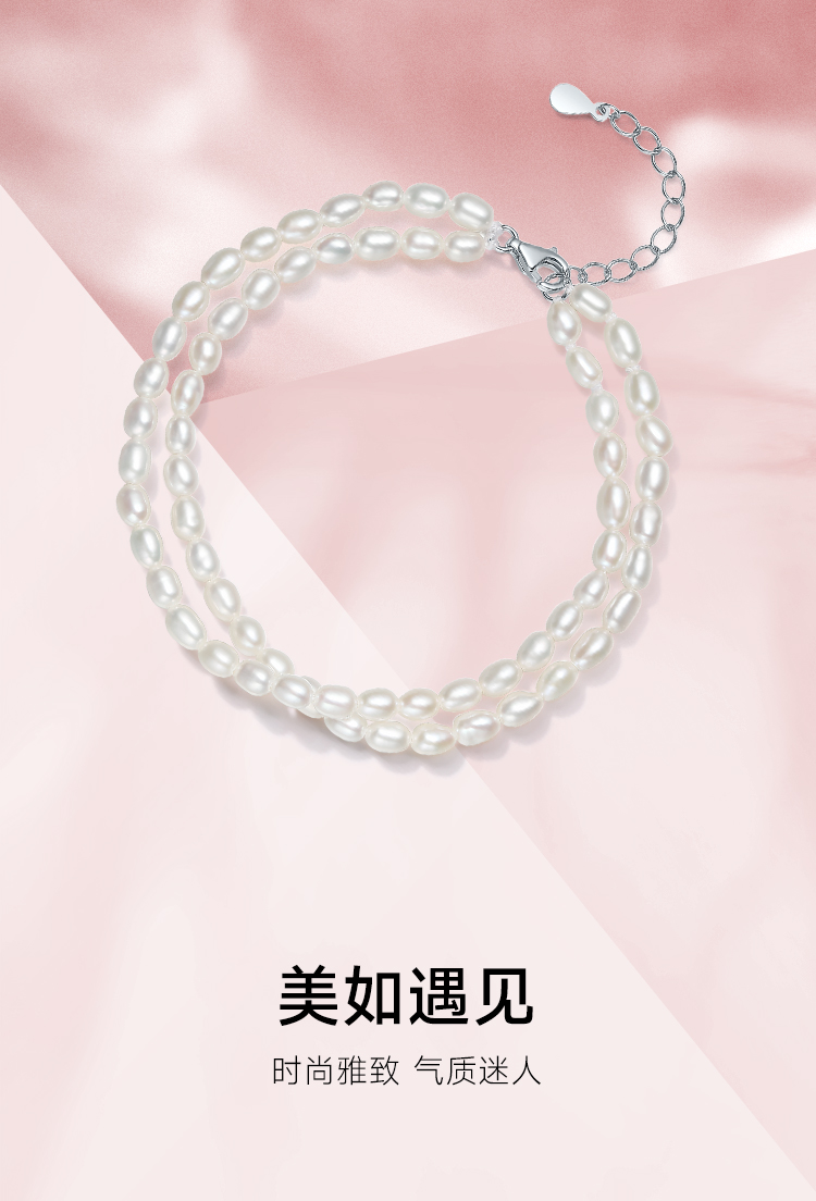 周六福S925银淡水珍珠手链 双层手链优雅时尚复古手饰送女友礼物