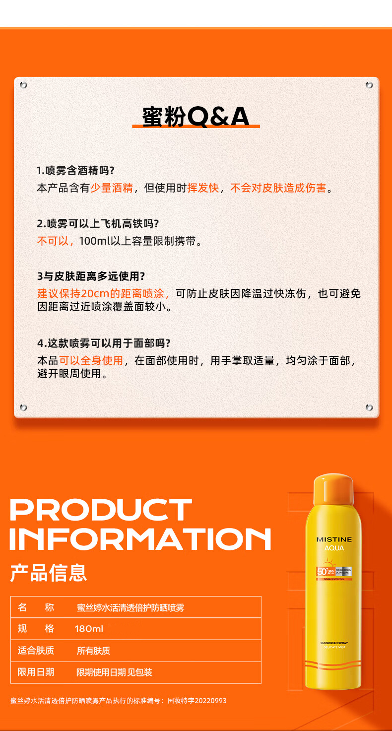 蜜丝婷 水活清透倍护防晒喷雾SPF50+ PA+++(新品纯化喷雾)