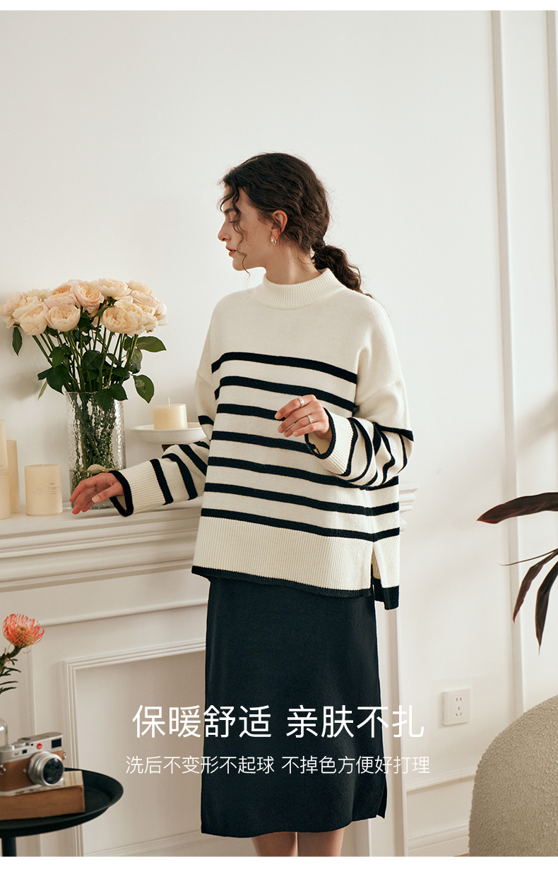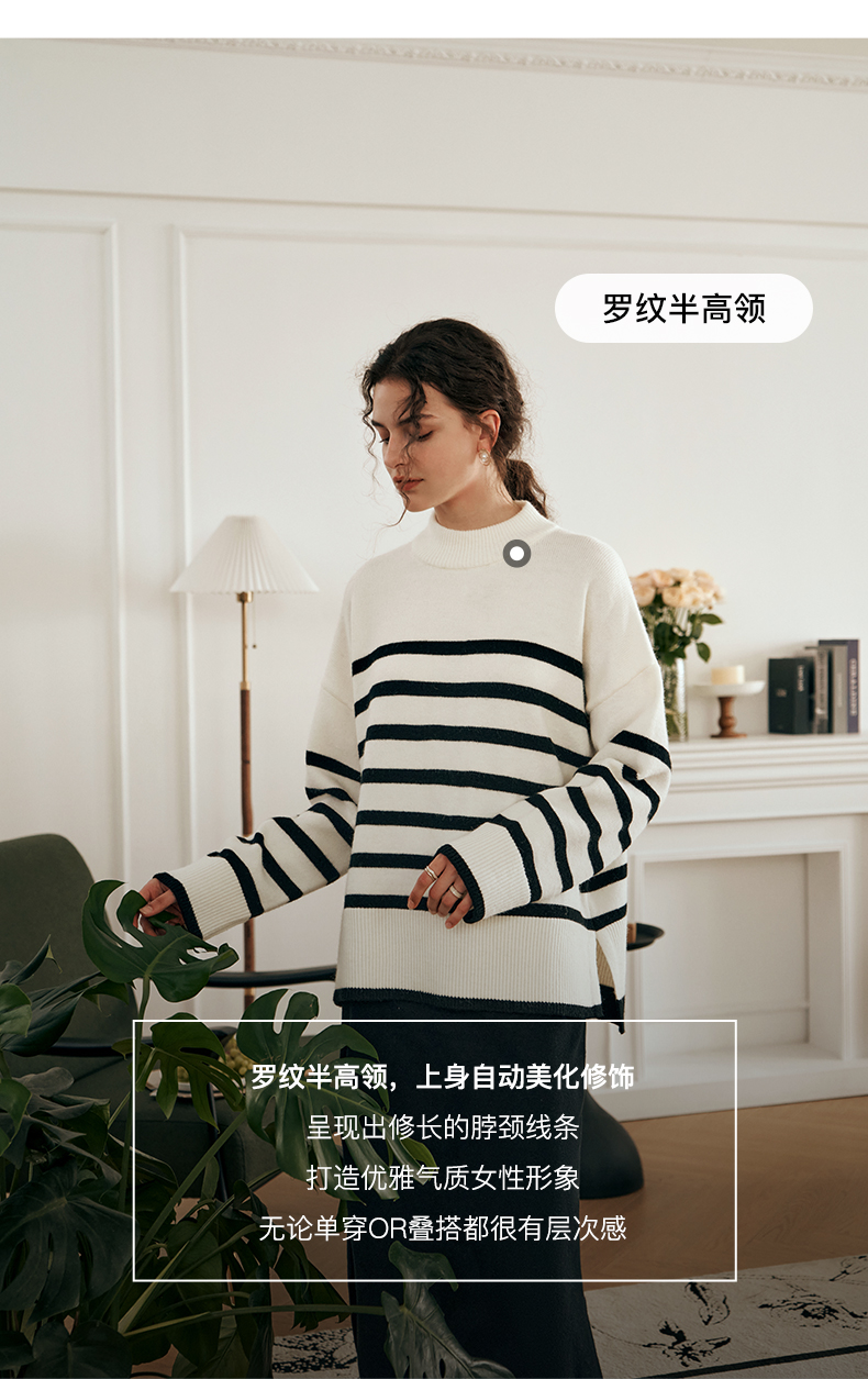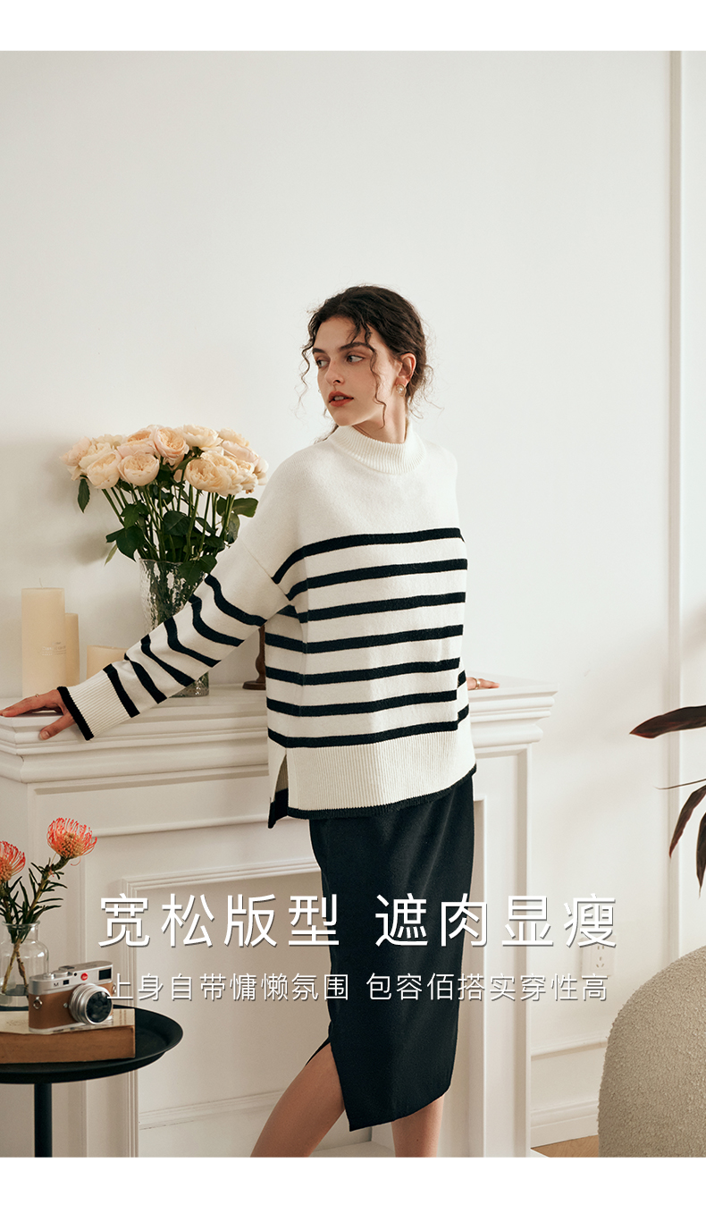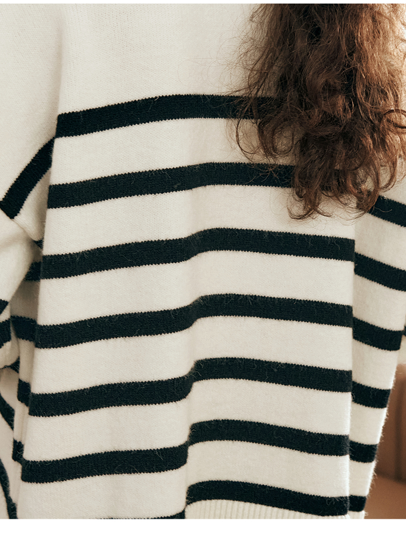 OLrain欧芮儿法式条纹毛衣女秋装2023年新款宽松慵懒风显瘦套头衫