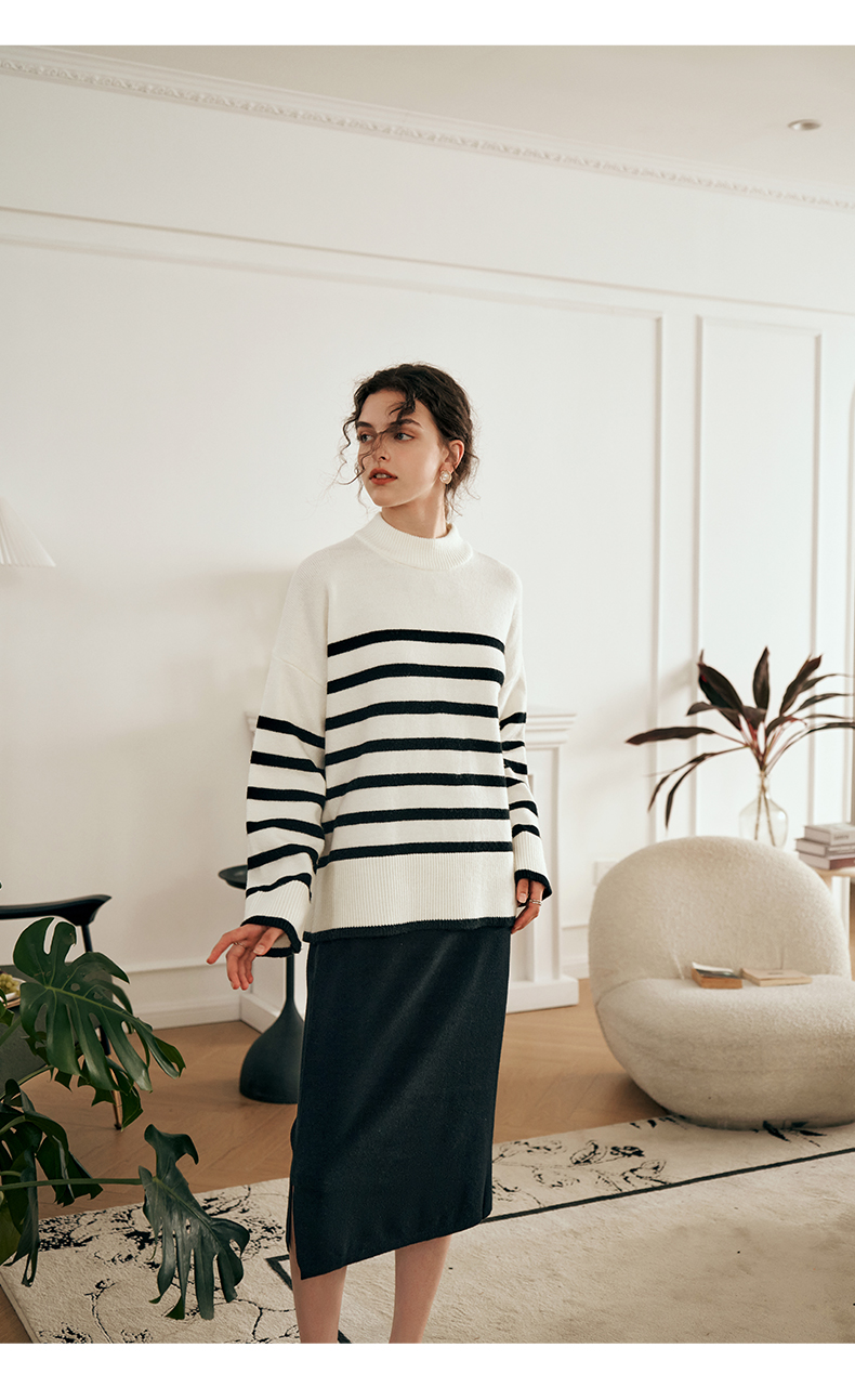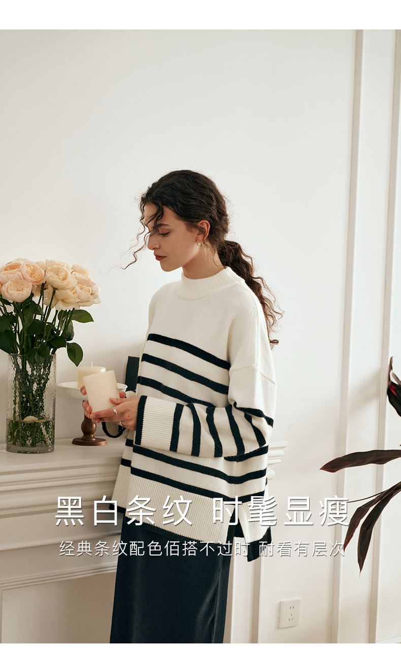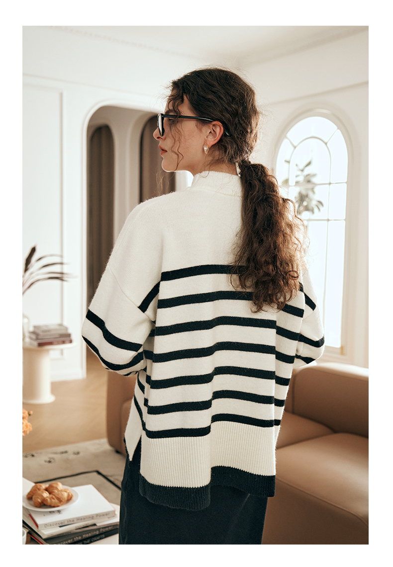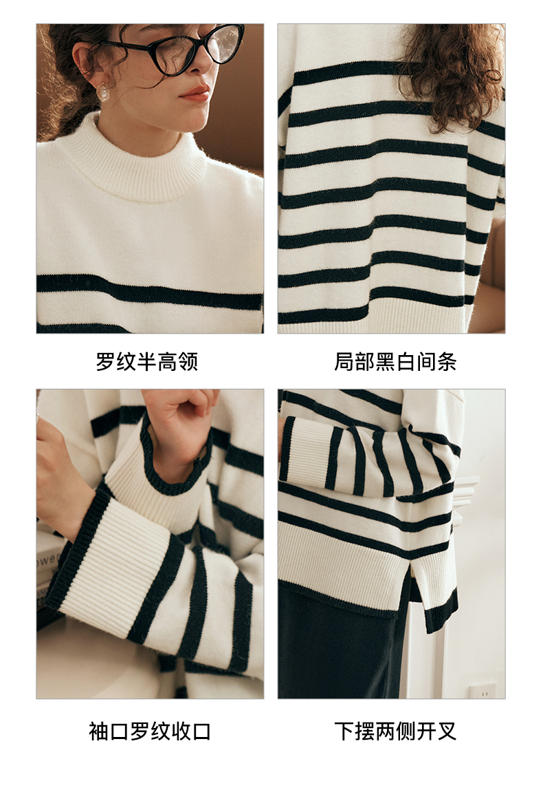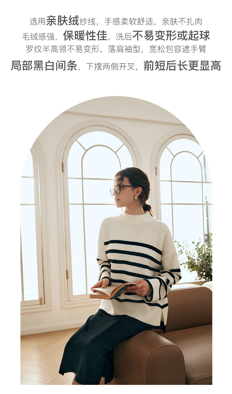 OLrain欧芮儿法式条纹毛衣女秋装2023年新款宽松慵懒风显瘦套头衫
