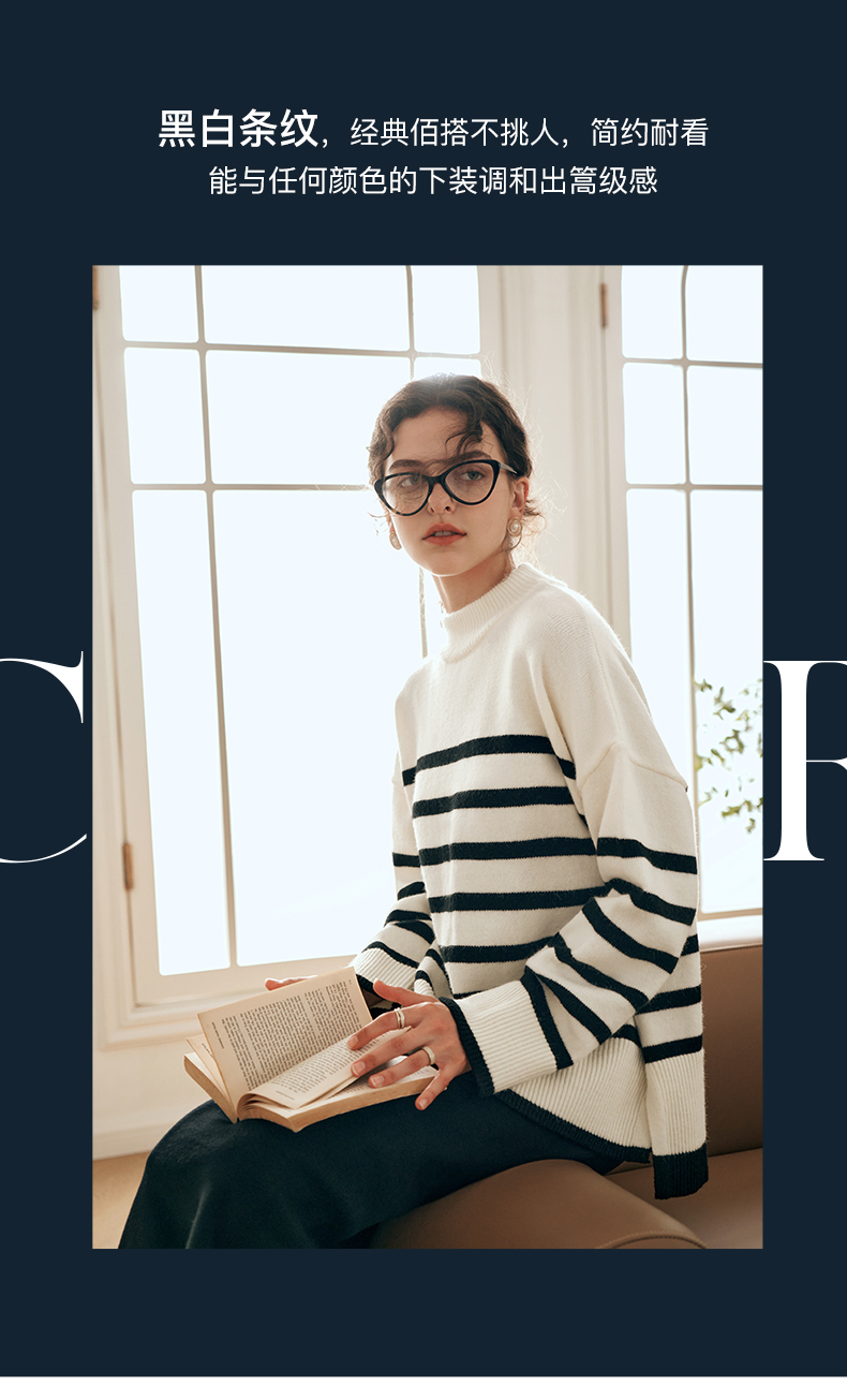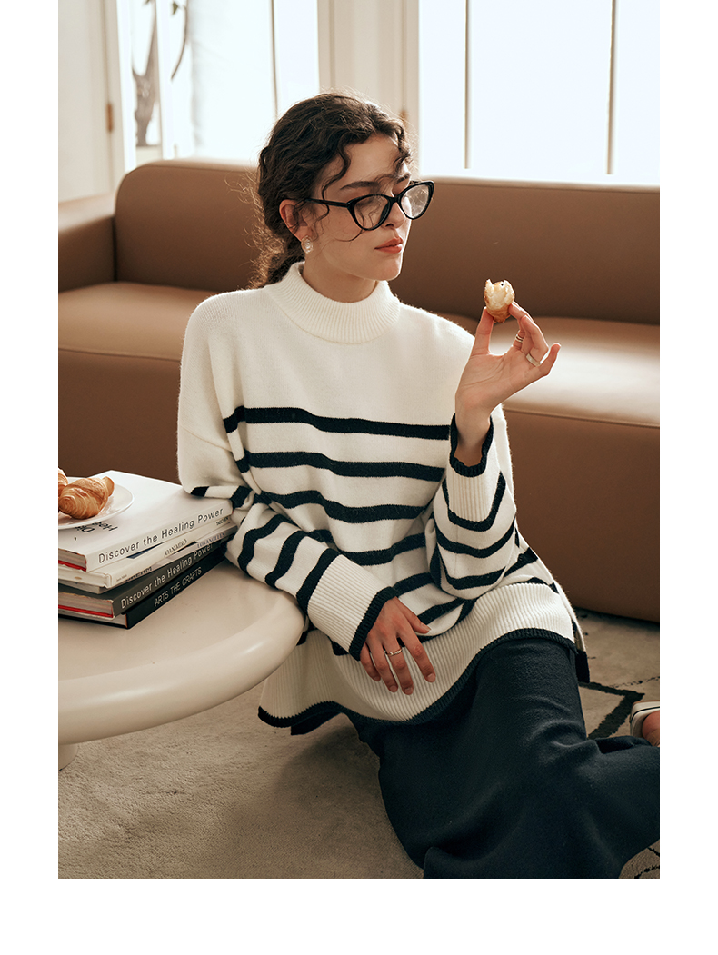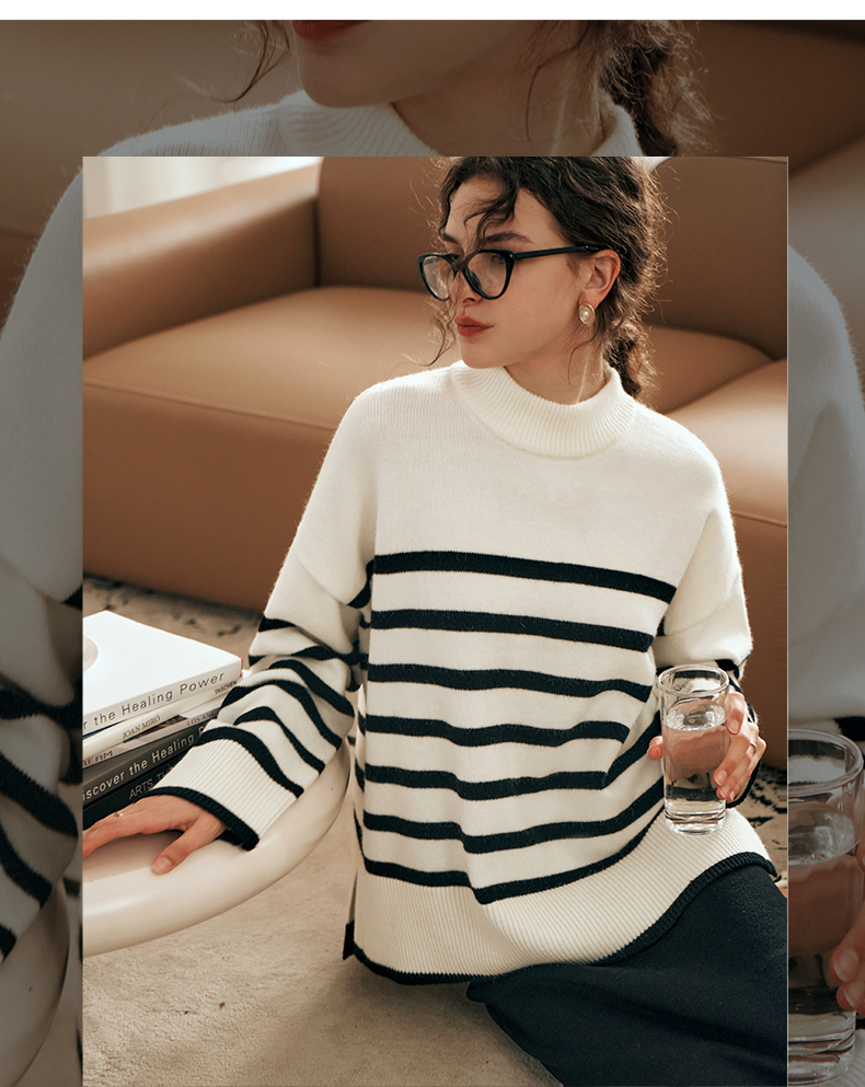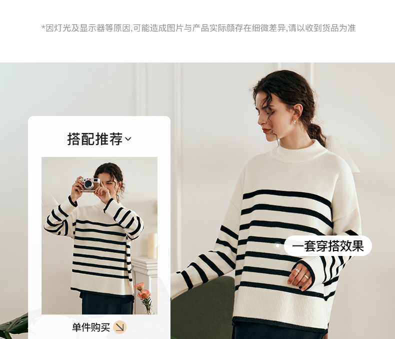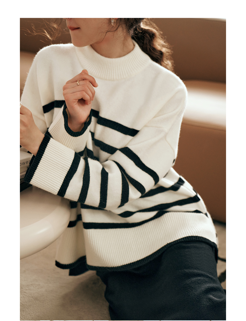 OLrain欧芮儿法式条纹毛衣女秋装2023年新款宽松慵懒风显瘦套头衫