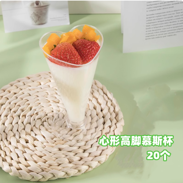 心形高脚慕斯杯 20个 一次性慕斯布丁杯木糠杯 甜品台塑料杯