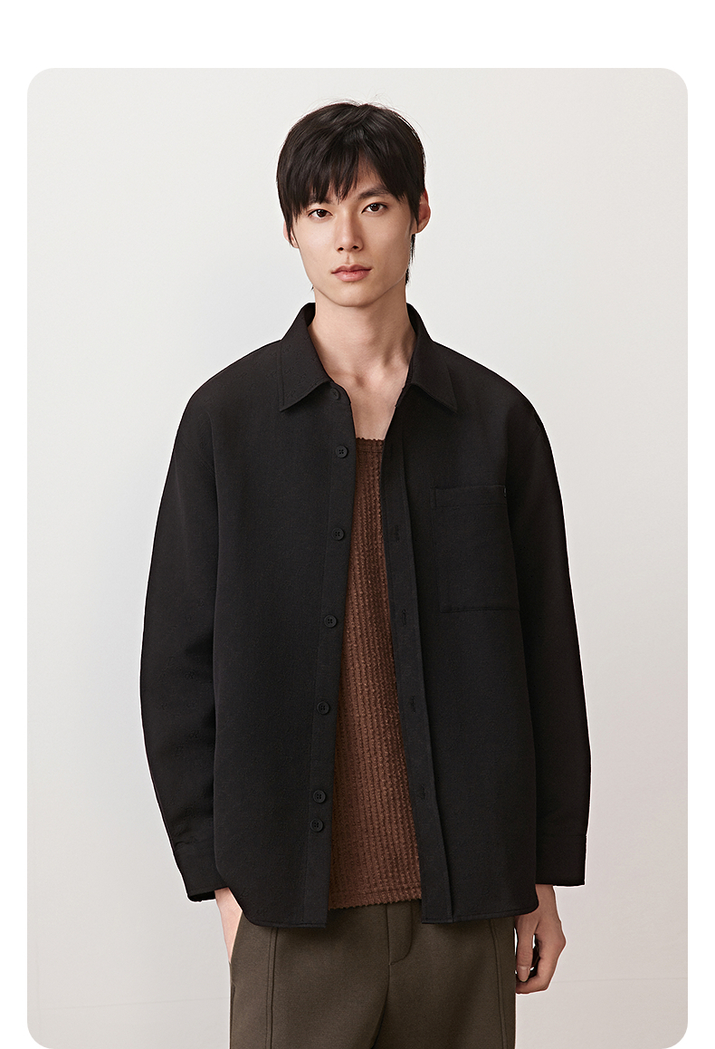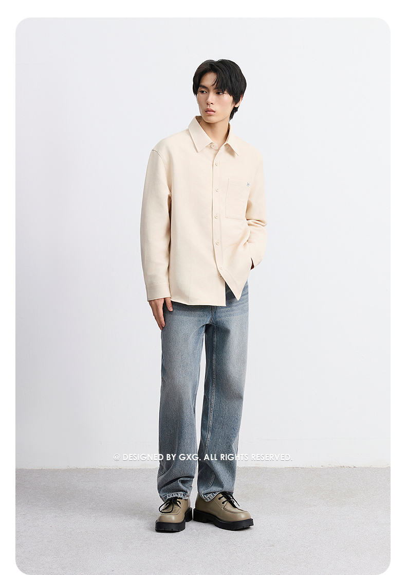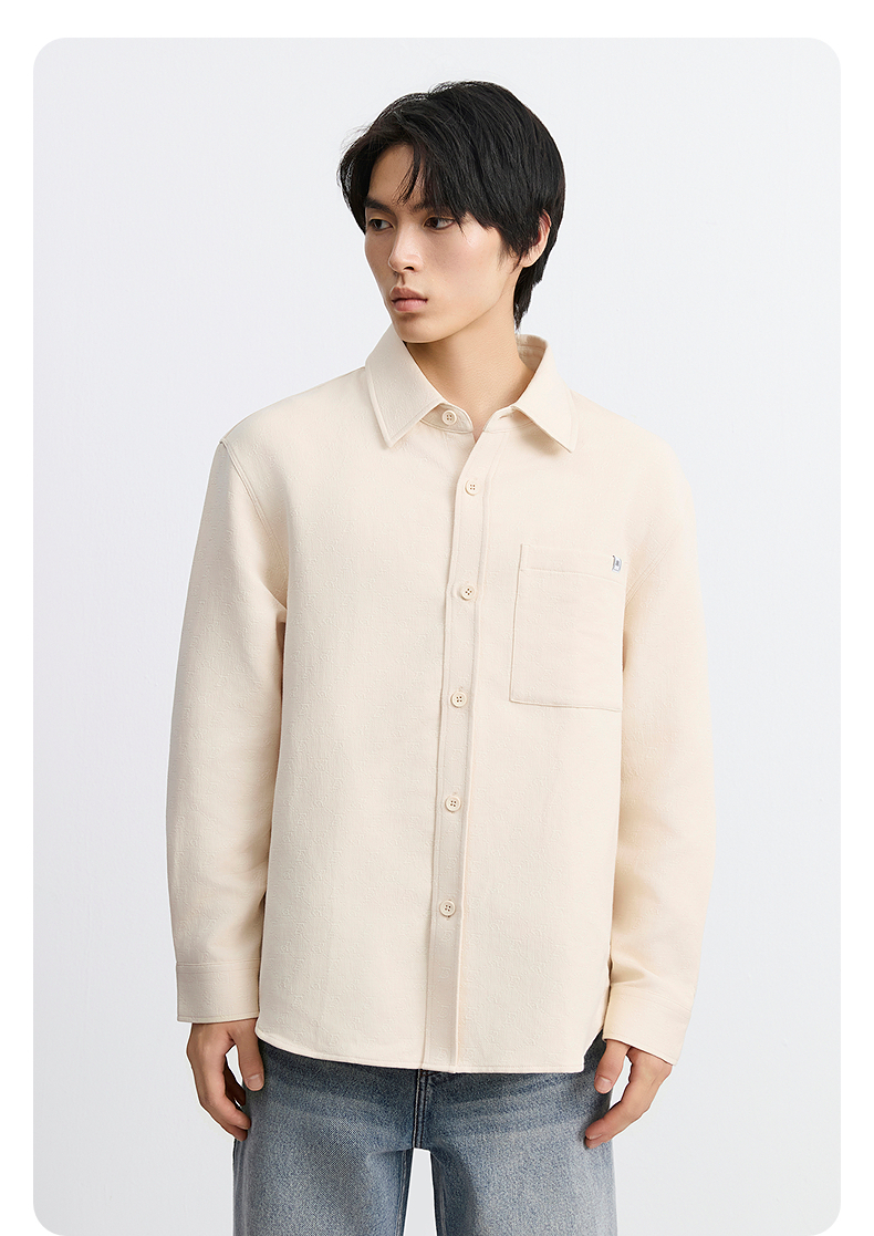 GXG男装 微肌理长袖衬衫暗纹精致休闲衬衣男薄外套 2025秋季新品