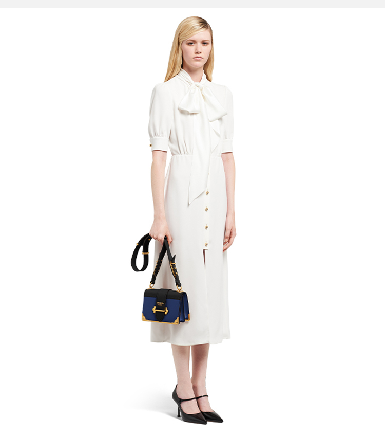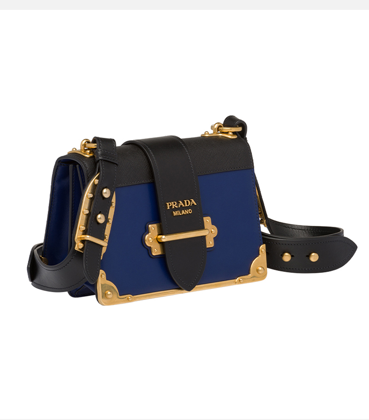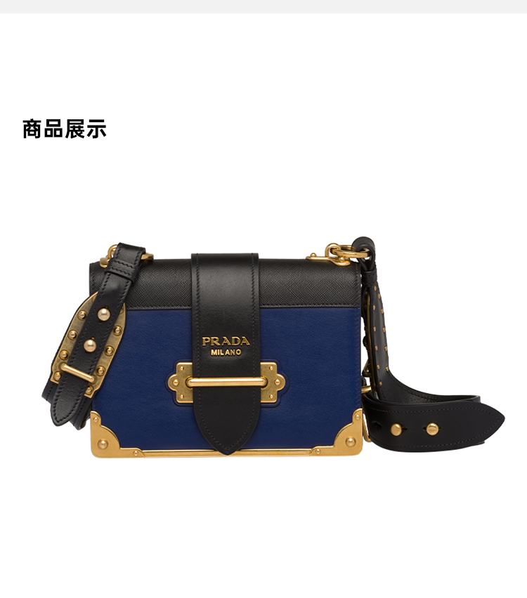 PRADA 普拉达 女士 Cahier 系列蓝色黑色牛皮单肩斜挎包 蓝色 1BD045 2BB0 F017C OCH