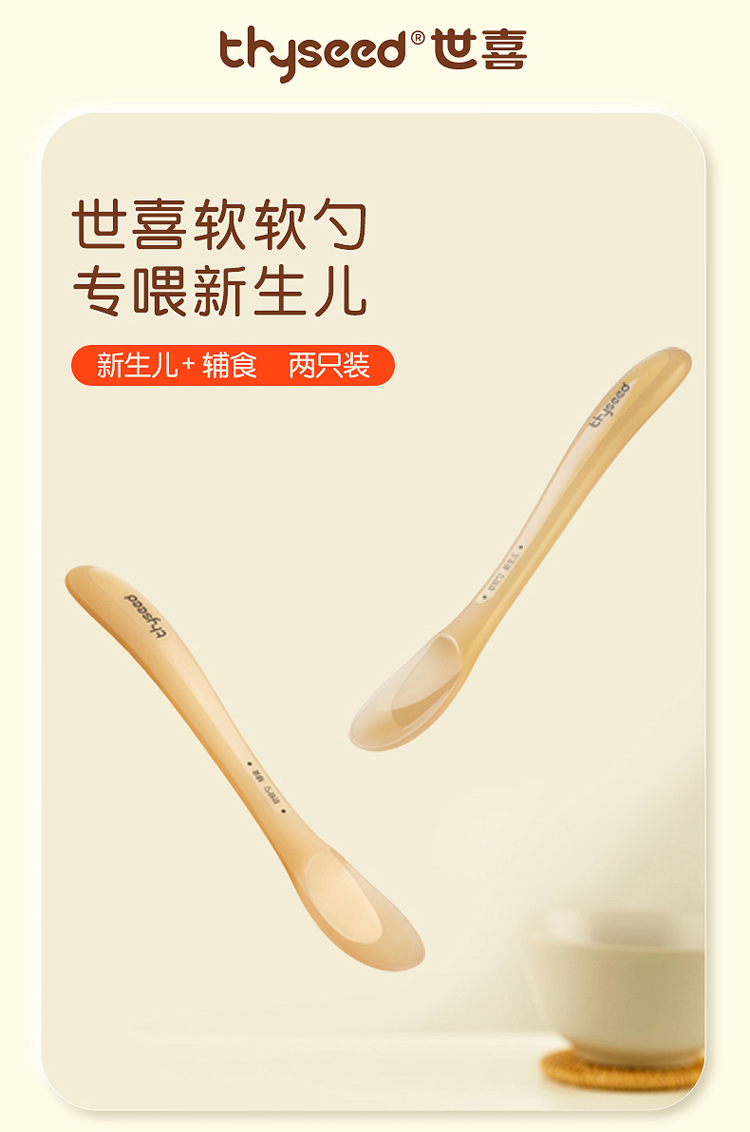 世喜 婴儿硅胶软勺+辅食勺 两只装