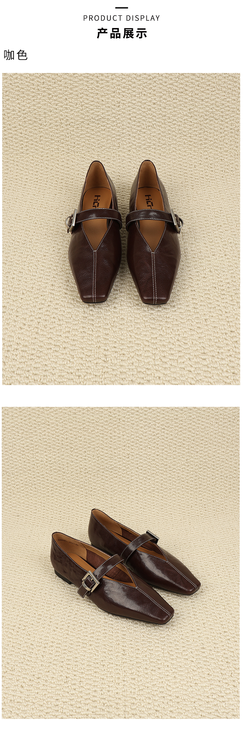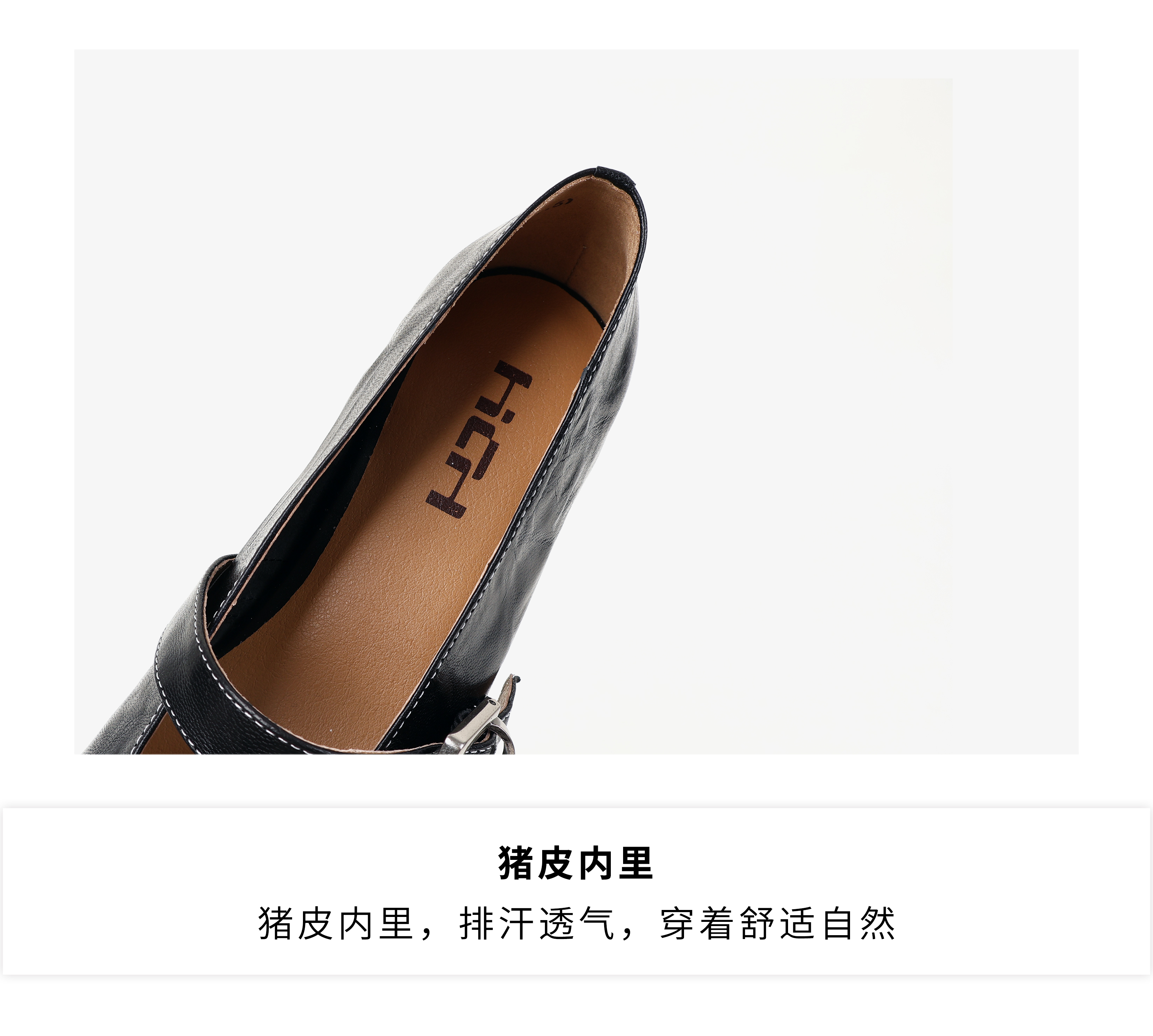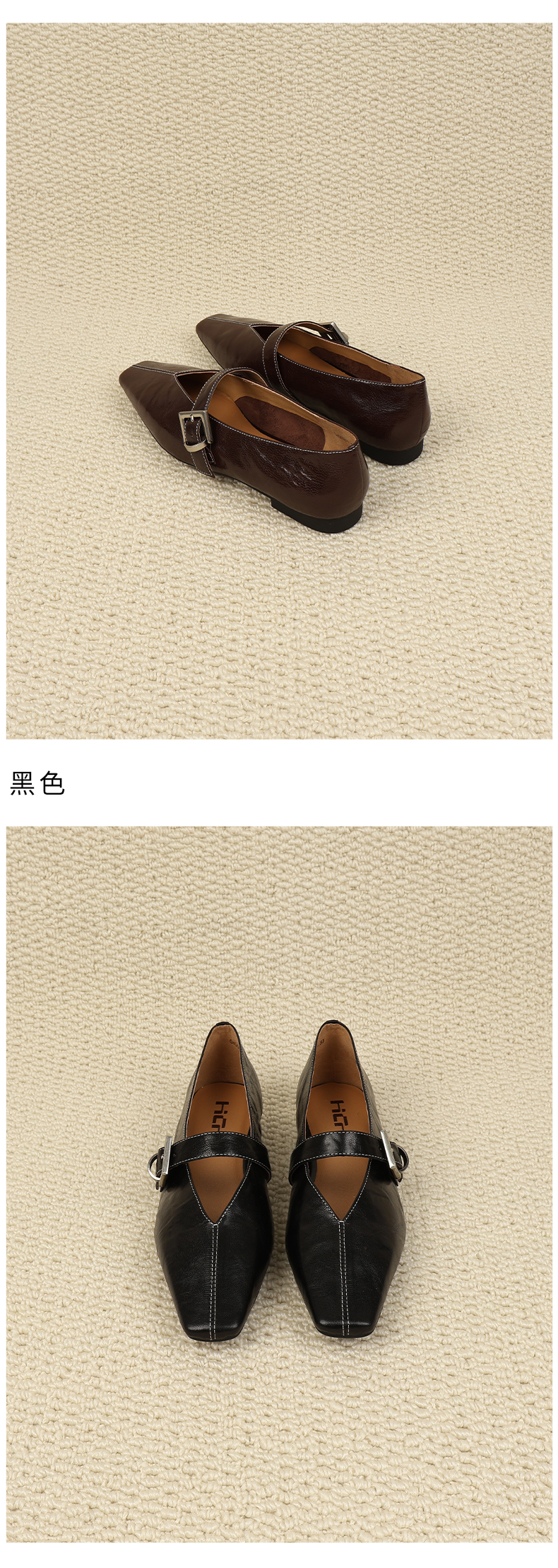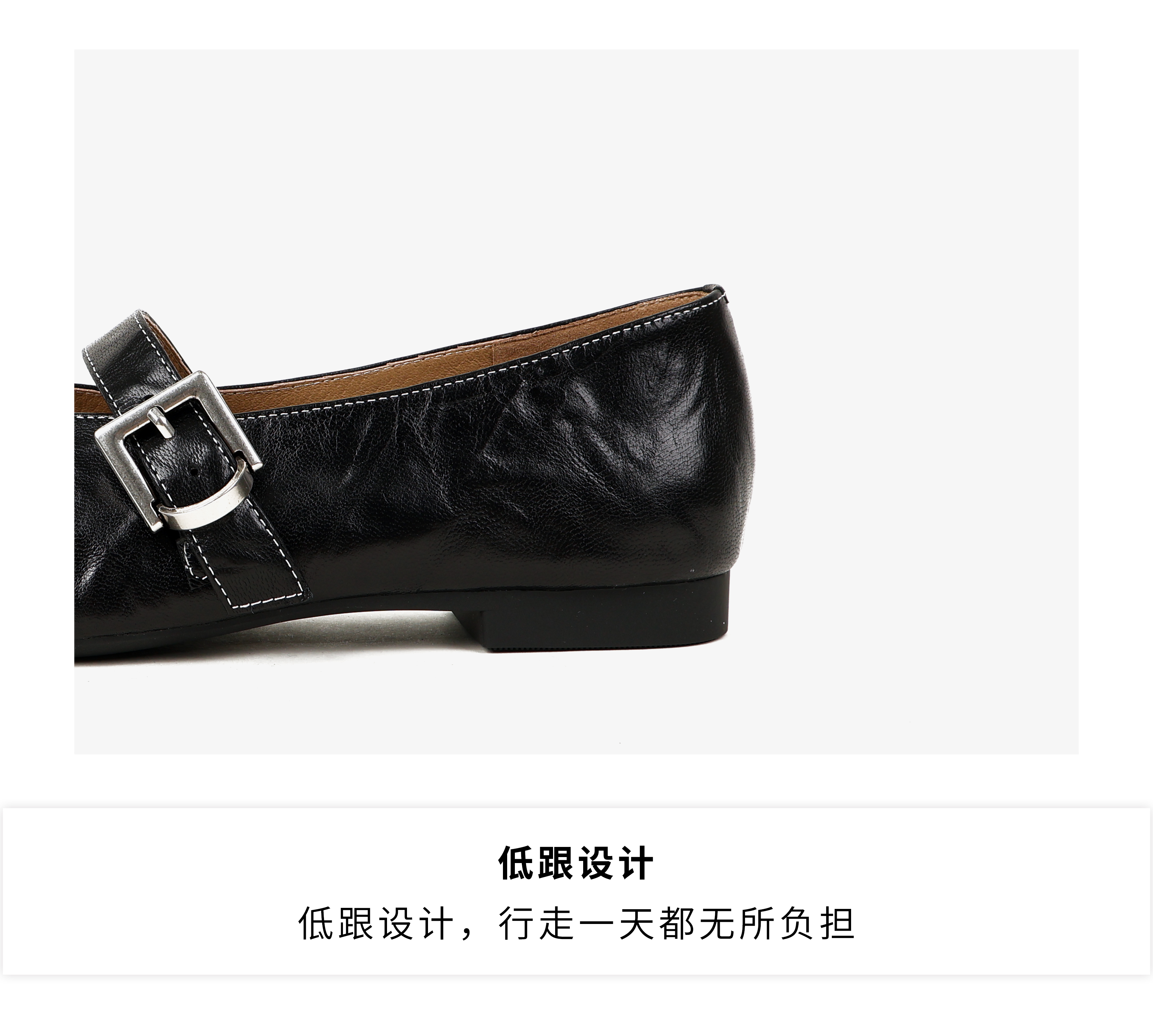 和诚行2026春季新款一字扣带复古软底设计感真皮平跟单鞋0400271