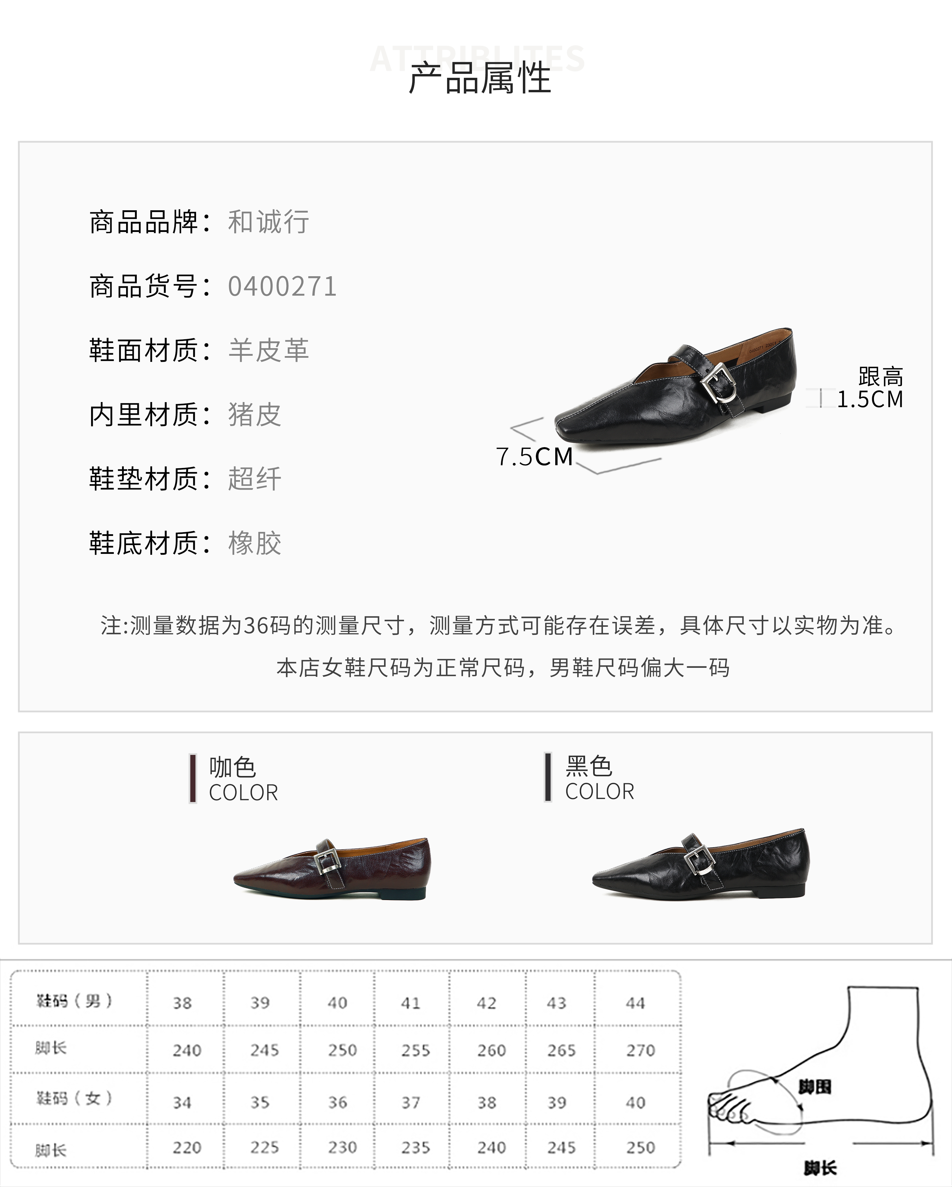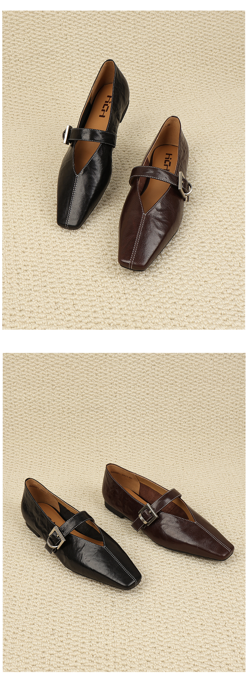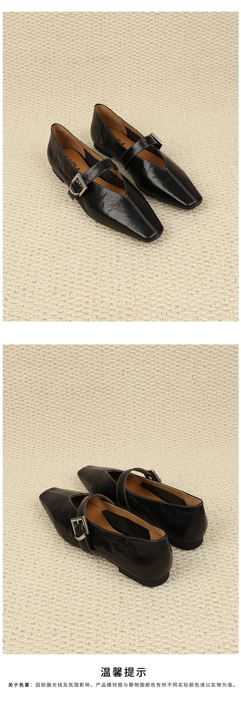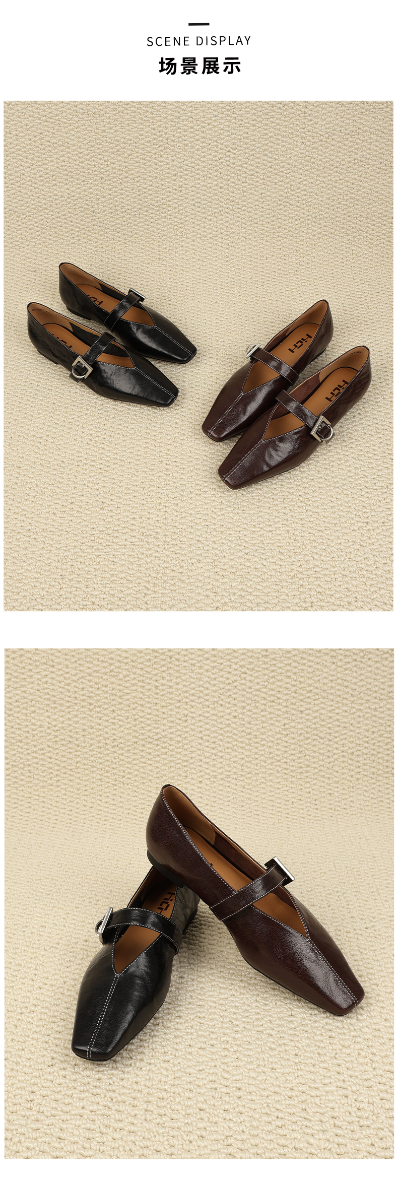 和诚行2026春季新款一字扣带复古软底设计感真皮平跟单鞋0400271