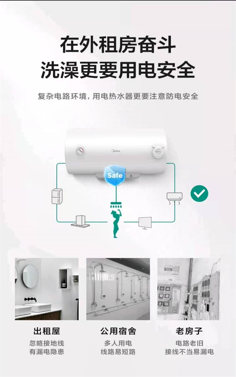 美的(Midea)家用60升2000W大功率电热水器 防电墙 摩卡金 F60-A20CA1(HI)