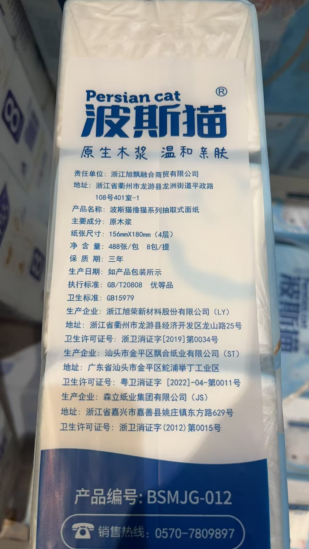 波斯猫 撸猫抽取式面纸488张(8包/提)