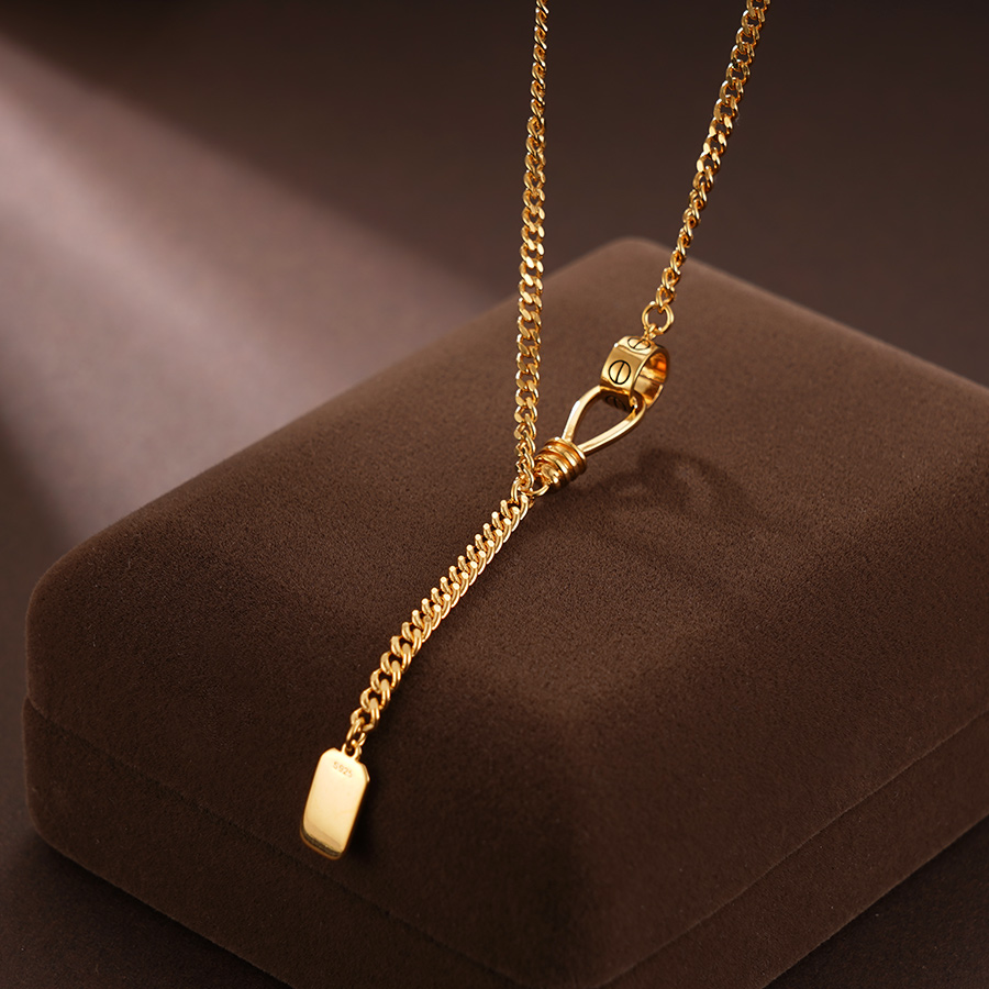【寓意】:精致的流苏项链,通体纯银镀金,光泽流转,优雅灵动。巧妙修饰颈部线条的同时,衬托出光彩照人的好气色。