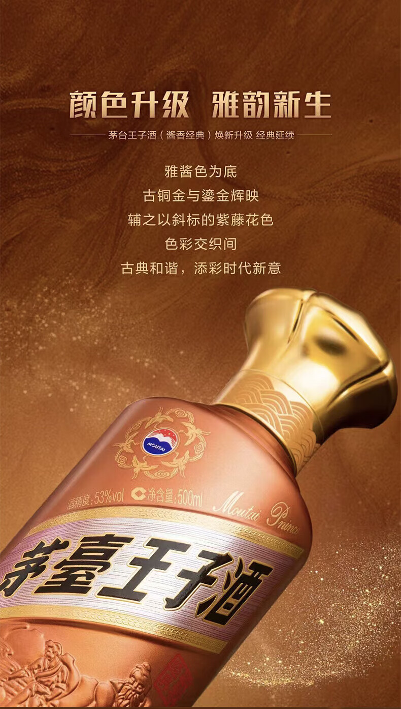 2025年新版 茅台王子酒 (酱香经典) 500ml*6瓶 整箱