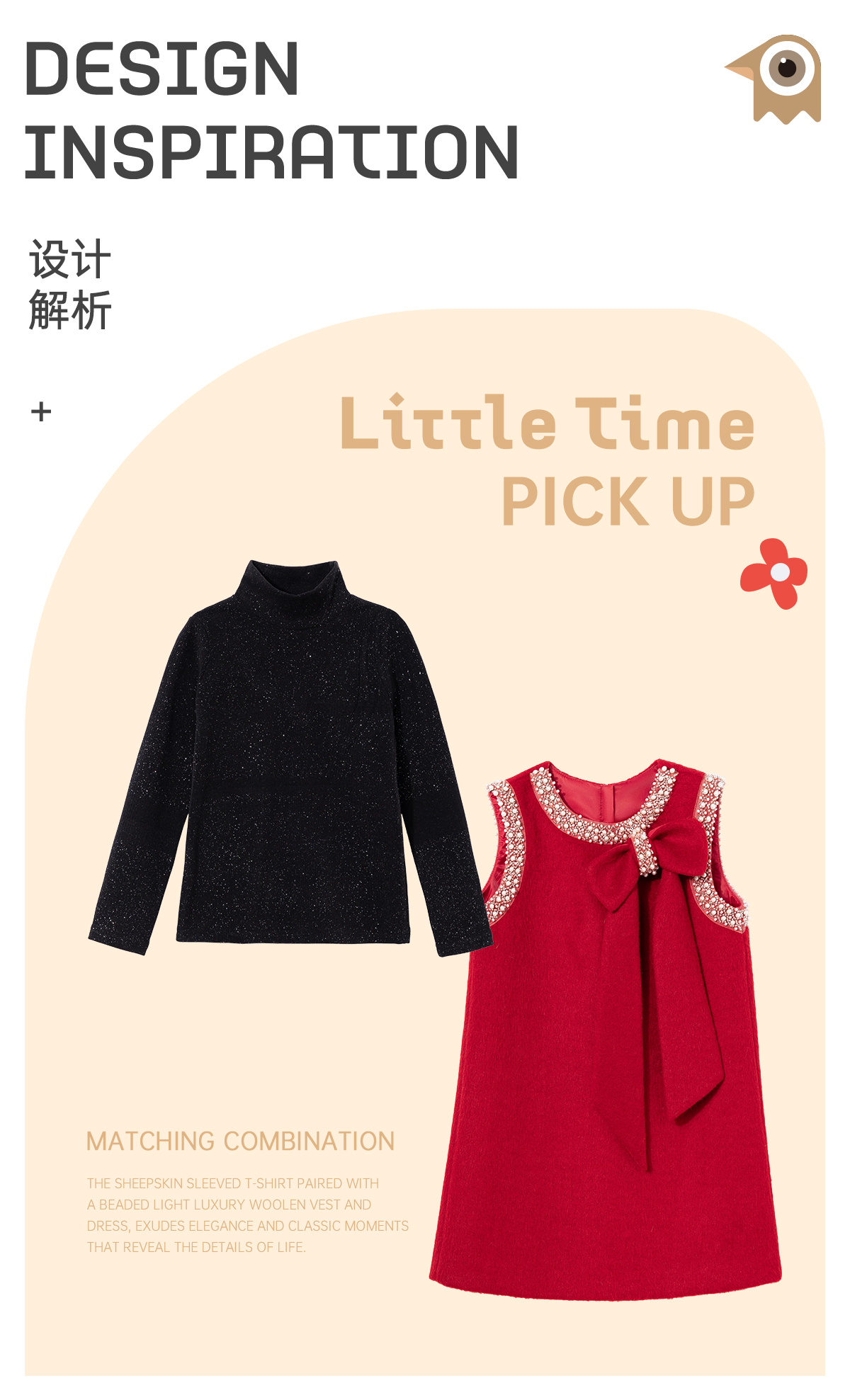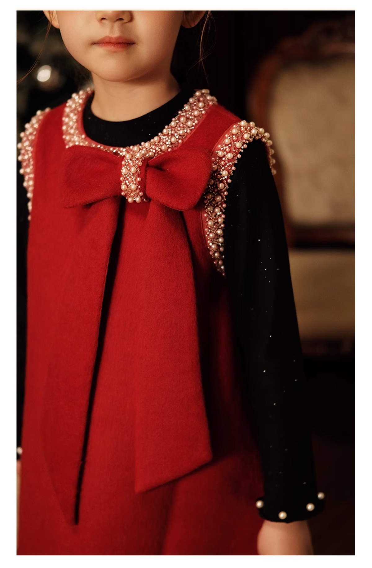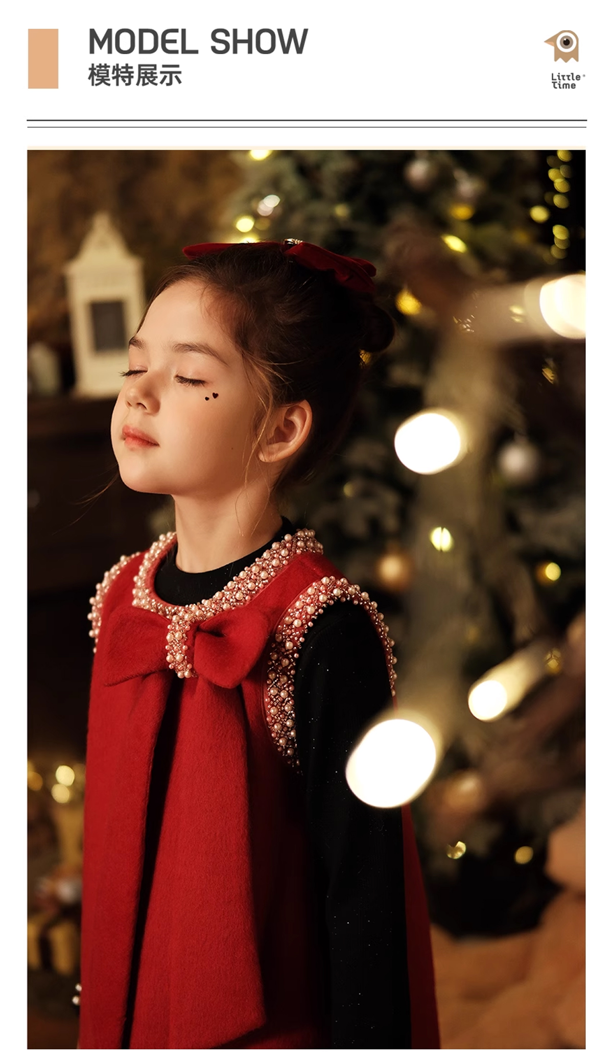 littletime儿童秋冬毛呢背心裙红色礼服裙年服女童小香风连衣裙