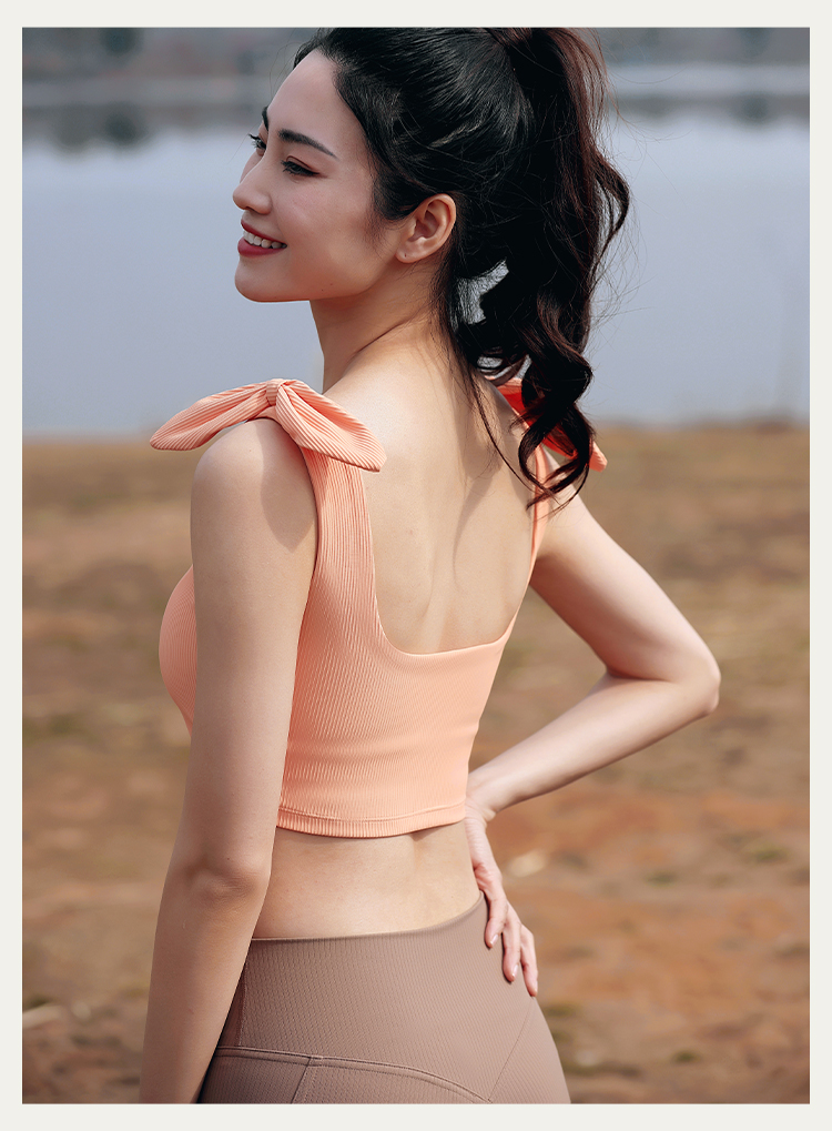 【双磨肌理】方领肩袢装饰带胸垫运动背心