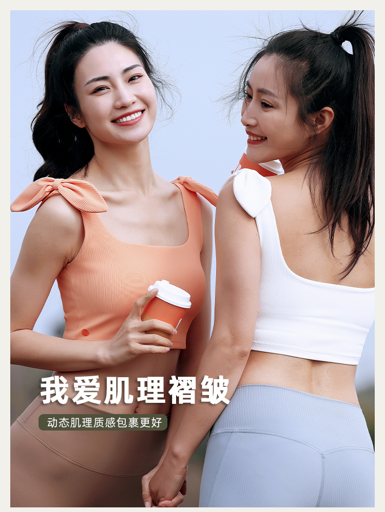 【裸感】浅象牙运动内衣女带胸垫美背胸衣文胸健身瑜伽背心