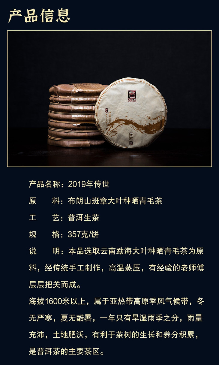 【云南茗茶】 班章普洱生茶 古树茶 布朗山班章大叶种 传世【包邮】