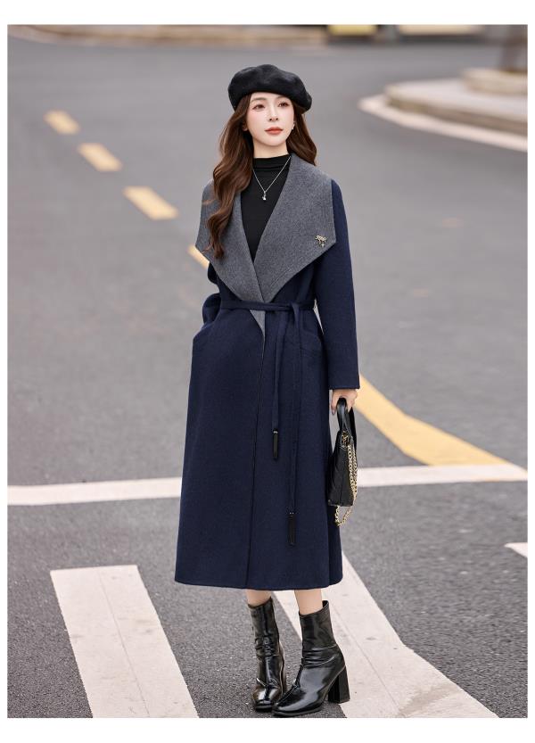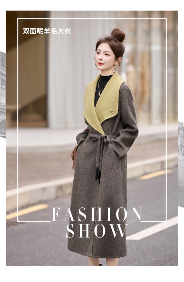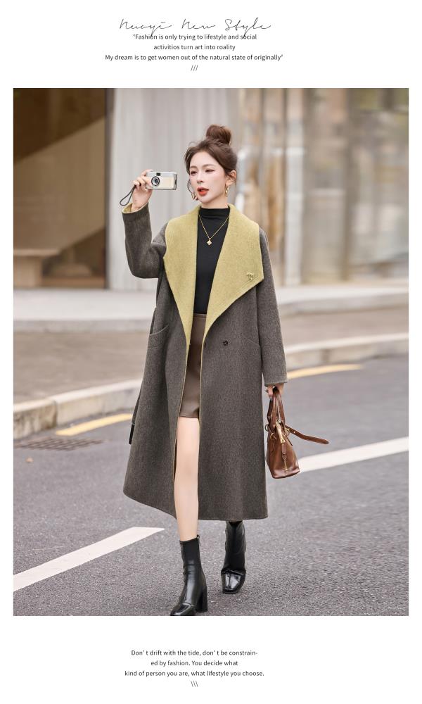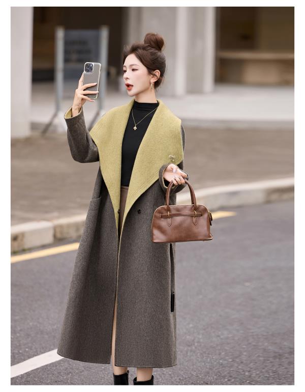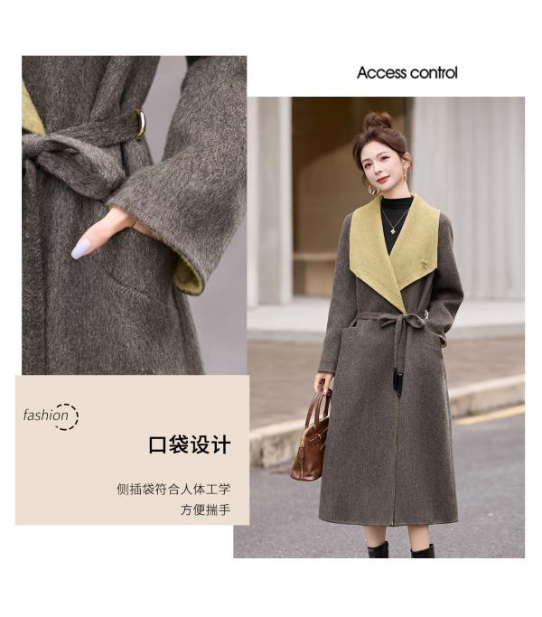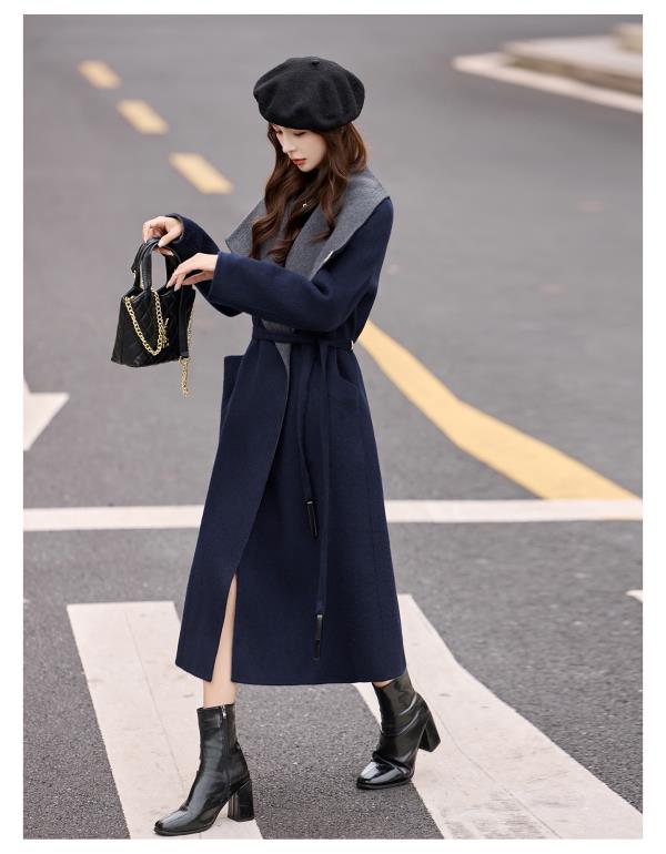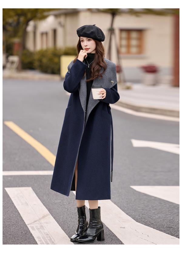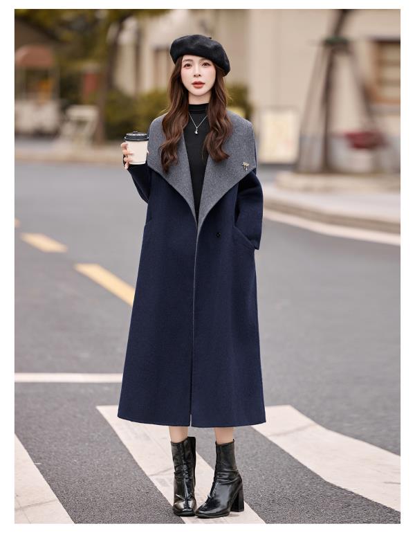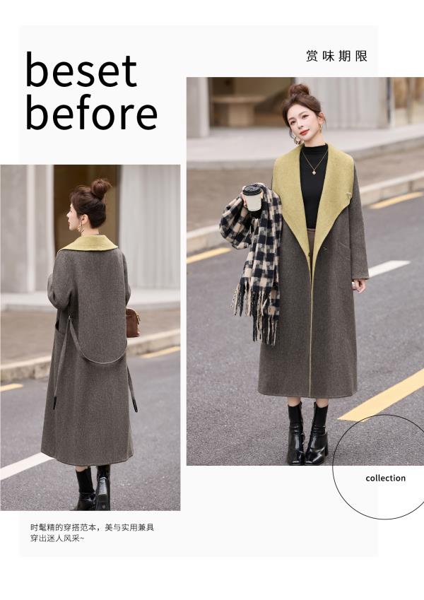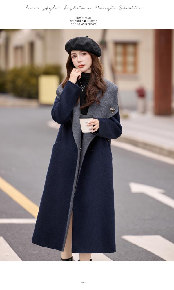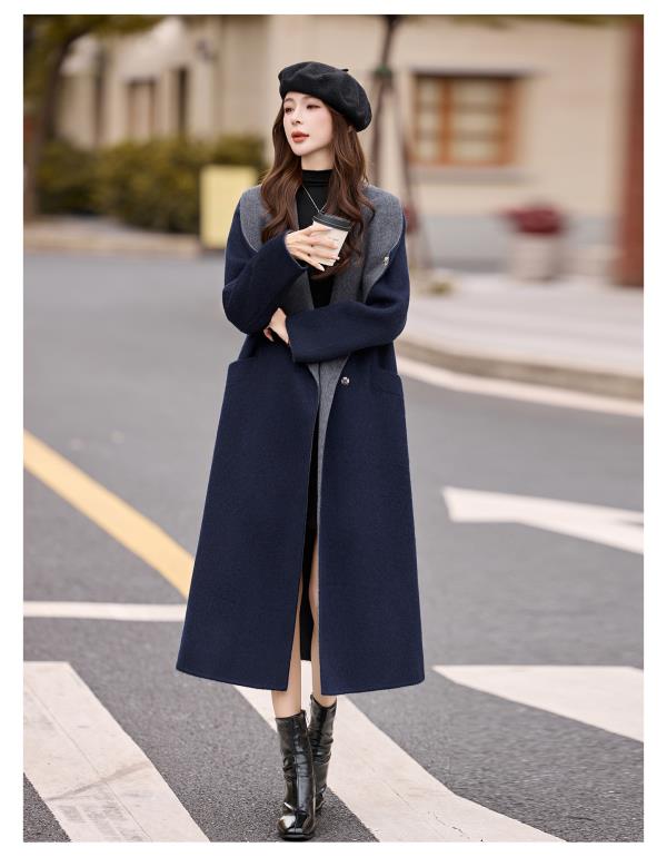 拼色双面呢羊毛大衣,显瘦宽松气质呢子外套HR-ASLZ8529