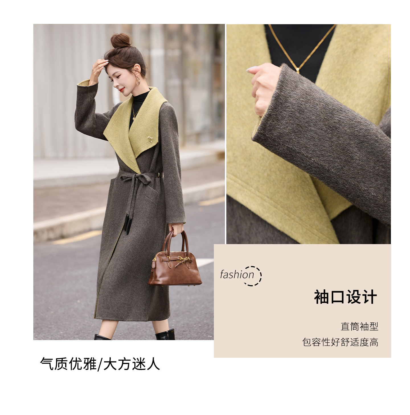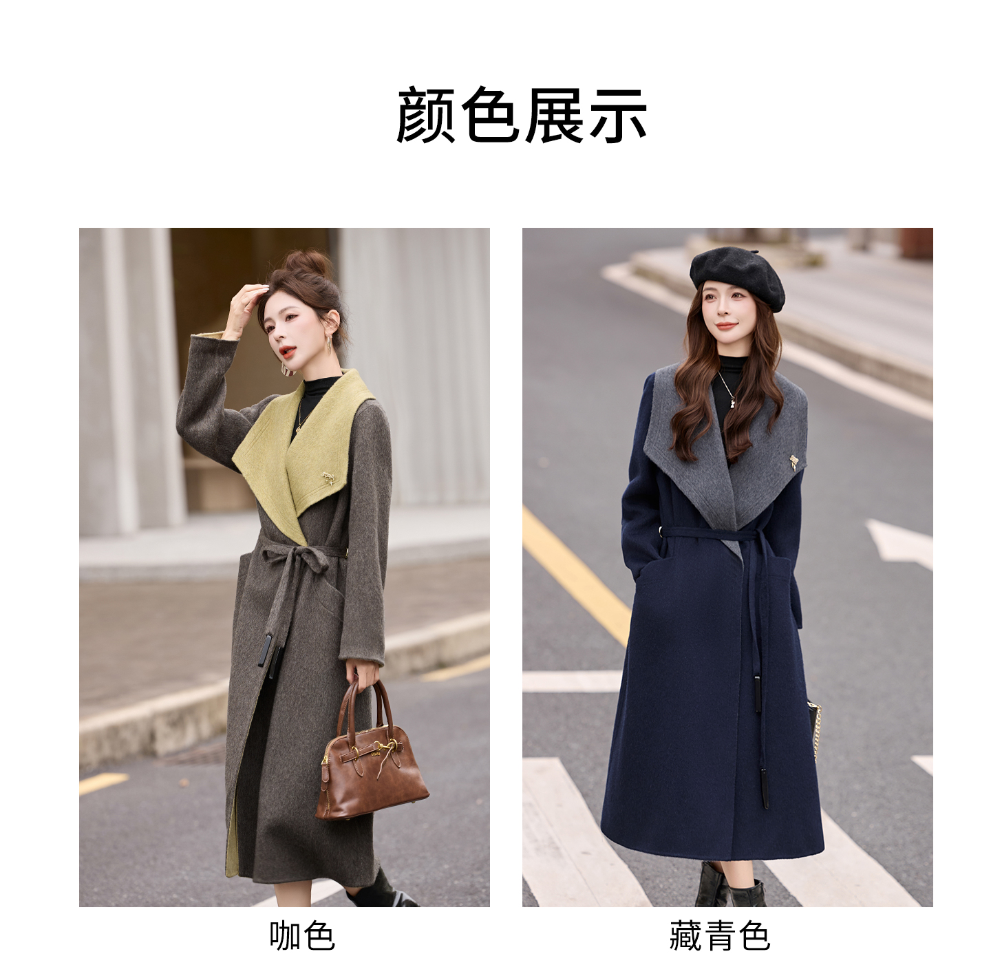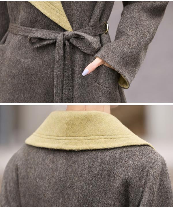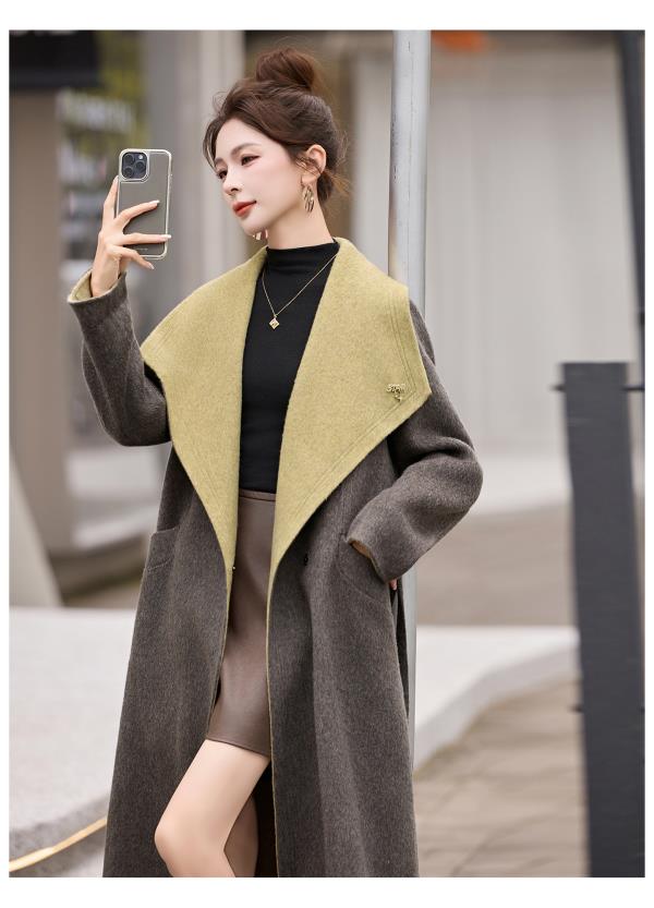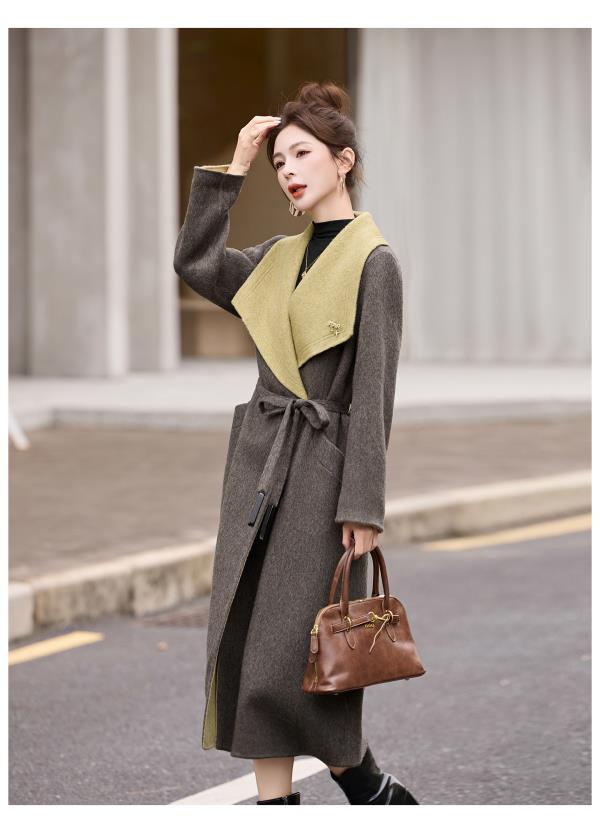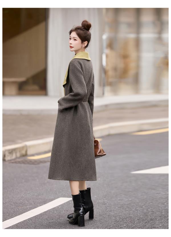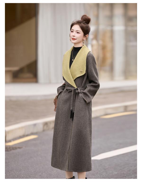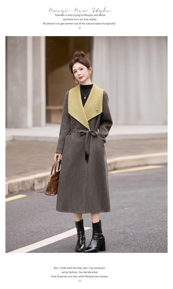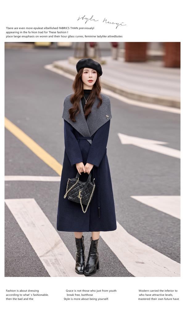 拼色双面呢羊毛大衣,显瘦宽松气质呢子外套HR-ASLZ8529