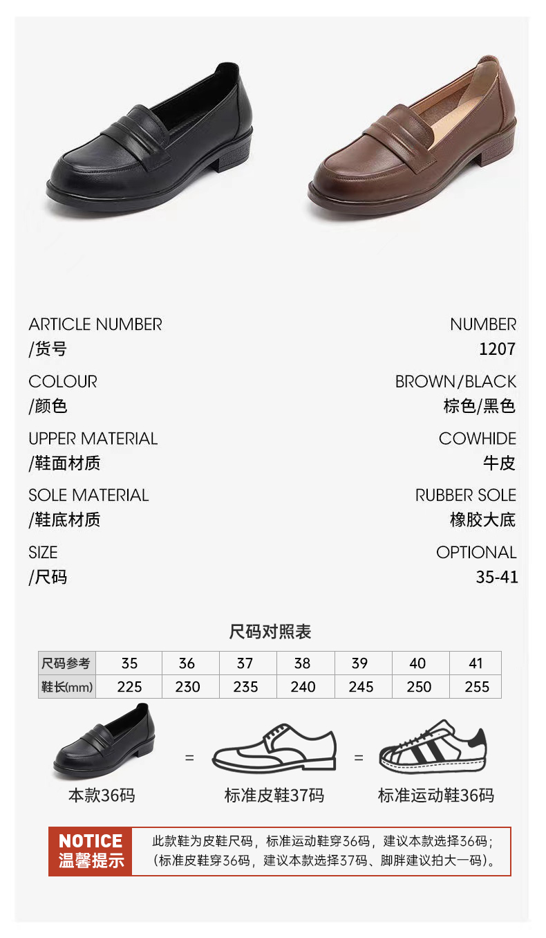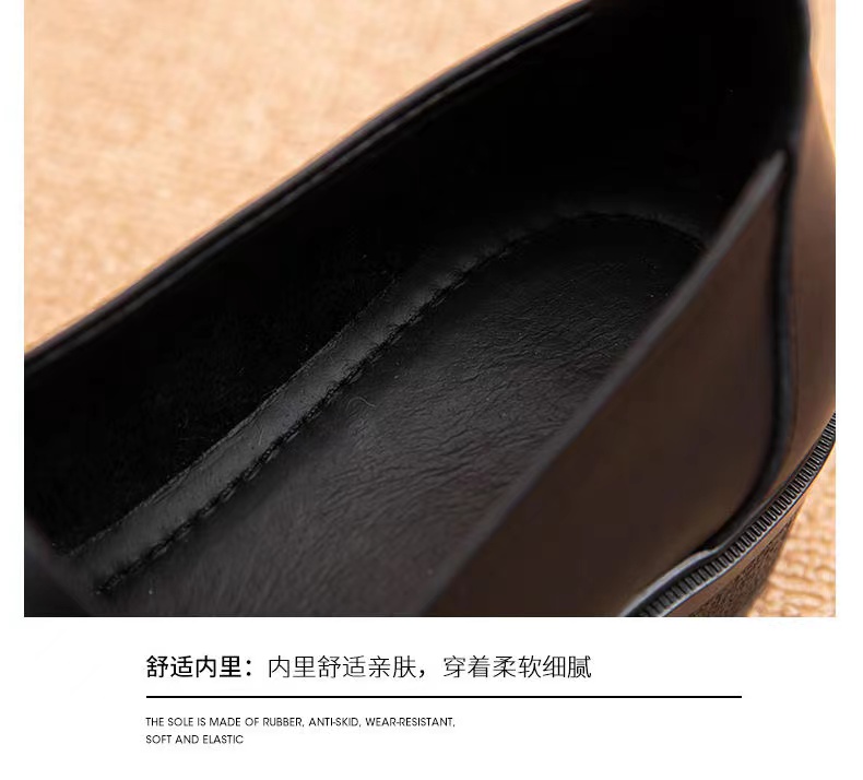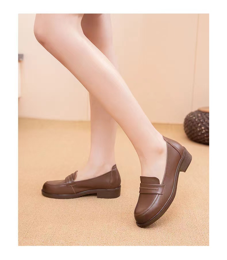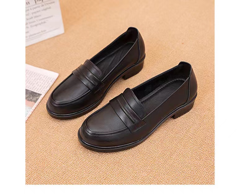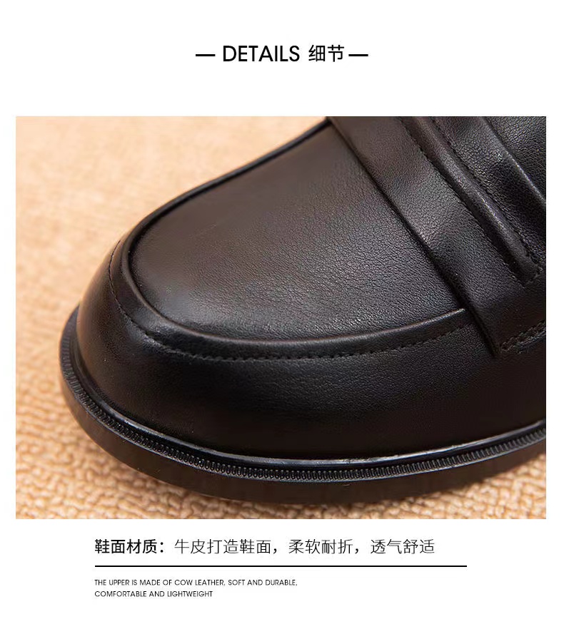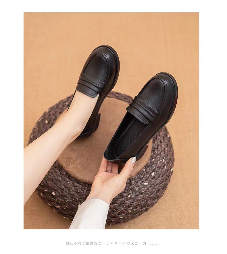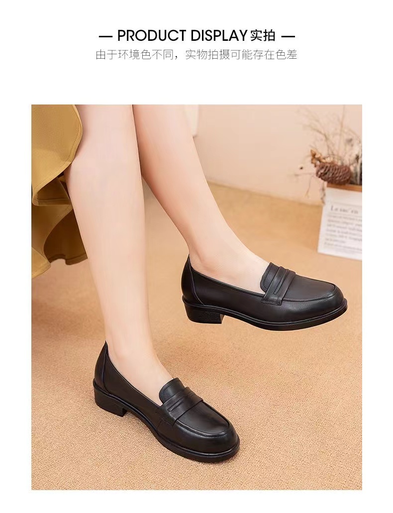 【实付满399送保温杯】【圆头小皮鞋】女2024新款黑色头层牛皮基础款套脚乐福鞋