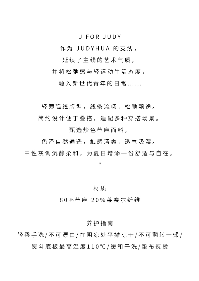 - 以极简建筑风格,诠释对生活美学之独特理解,JUDYHUA以作品触动您心。更多新款上架,请亲临JUDYHUA STUDIO试穿选购。预约电话:021-62663449,18201881913
