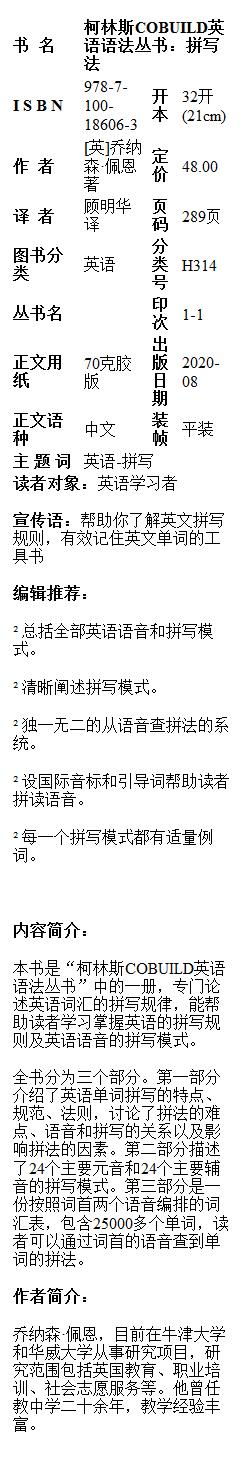 柯林斯COBUILD英语语法丛书:拼写法 [英]乔纳森·佩恩 著 顾明华 译 商务印书馆