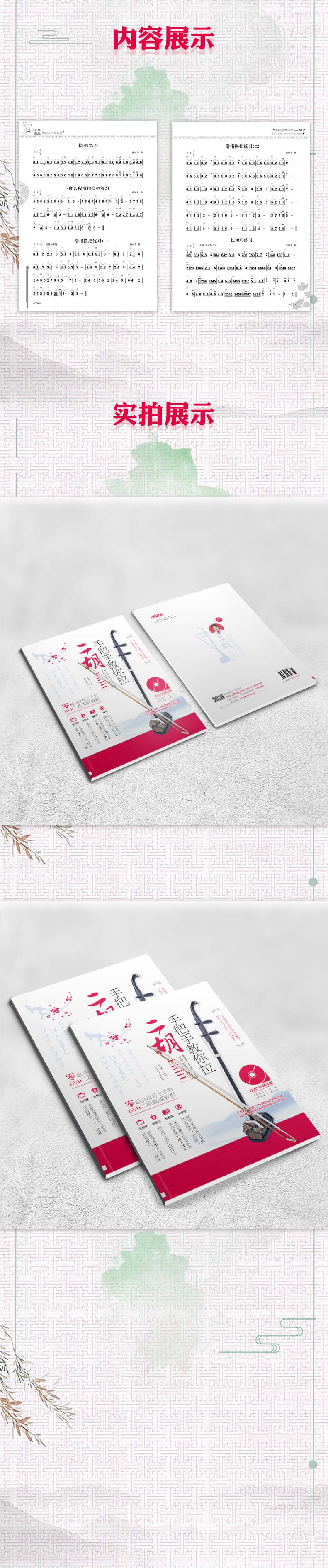 ●第一单元 D调(15弦)学习与演奏 01 二胡的历史渊源 02 演奏基础 03 练习曲部分 认读音名与唱名 视唱 D调音位图 空弦运弓练习 摆放手型与运弓(一) 摆放手型与运弓(二) 摆放手型与运弓(三) 按指练习(一) 按指练习(二) 按指练习(一) 按指练习(三) 按指练习(四) 音阶位置练习(一) 运弓与按指综合练习 音阶位置练习(二) 连弓练习 连弓与分弓综合练习 切分与附点综合练习 运弓流畅练习 四指练习 连弓练习 04 乐曲部分 上学歌 粉刷匠 找朋友 小星星 小蜜蜂 八月桂花遍地开 杨柳青 摘辣椒 月亮 坐火车 第二单元 G调(52弦)学习与演奏 05 练习曲部分 G调音位图 G调音阶位置练习 慢长弓练习 前十六分音符练习 后十六音符练习 换弦运弓练习 二把位音位图 G调二把位练习 D调二把位练习 换把练习 三度音程滑指换把练习 滑指换把练习(一) 滑指换把练习(二) 长短弓练习 短弓练习 06 乐曲部分 探妹 五更调 我们把祖国爱在心窝 牧童之歌 欢乐颂 洁白的哈达 纤夫的爱 歌声与微笑 天路 向着太阳 少儿欢歌 第三单元 F调(63弦)学习与演奏 07 练习曲 F调音位图 F调音阶位置练习 音位练习 三度音模进练习 指距练习 八三拍子练习 伴奏音型练习 伴奏音型训练 快弓练习 08 乐曲部分 卖报歌 观灯 黄杨扁担 采花 女人花 母亲 敖包相会 过雪山草地 边疆的泉水清又纯 快乐的啰嗦 第四单元 C调(26弦)学习与演奏 09 练习曲部分 C调音位图 C调音阶位置练习 音位练习 四三拍子练习 上式把位练习 C调换把练习 C调中式把位练习 上,中把练习 10 乐曲部分 陕北秧歌 马兰花开 中国,中国,鲜红的太阳永不落 九九艳阳天 赶牲灵 红梅赞 谁不说俺家乡好 军民大生产 阿里郎 第五单元 A 调(41弦)学习与演奏 11 练习曲部分 A调音位图 A调音阶位置练习 A调基本把位练习 A调上把及连续切分练习 十六分音符快速练习 12 乐曲部分 走降州 掀起你的盖头来 道拉基 越来越好 第六单元 降B调(37弦)学习乐演奏 13 练习曲部分 降B调音位图 音阶位置练习 降B调上把综合练习 降B调上把音准校正练习 14 乐曲部分 映山红 外婆的澎湖湾 为了谁 祖国你好 微山湖 E调,降E调音位图 第七单元 综合技术训练 综合练习曲部分 连弓练习 幸福的花朵(片段) 五声音阶练习 快速弓段练习 第三,四指音准校正练习 音型模进与节奏练习 上把指距练习 快弓练习 双手配合练习 快速换把练习 快速同指换把练习 中把综合练习 降B调换弦音准练习 A调把位音准练习 混合节奏练习 指序练习 综合练习 垫指滑音练习 快弓练习 D调溜手练习 综合练习 多种弓法练习 快速转调练习 传统把位间的换把练习 快弓练习 换弦与指距练习 第八单元 二胡经典作品选 二胡独奏曲精选 赛马 好日子 幸福歌儿唱不完 秦腔主题随想曲 草原新牧民 春诗 洪湖随想曲 金珠玛米赞 一枝花 喜送公粮 河南小曲 乡土之恋 渝北叙事曲 江南春色 二泉映月 葡萄熟了 翻身歌 江河水 三门峡畅想曲 战马奔腾 川江船歌 怀想曲 兰花花叙事曲