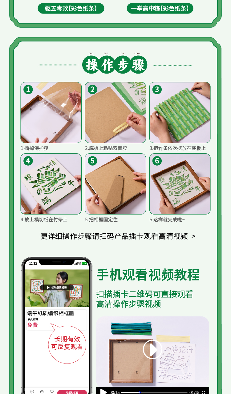 端午节手工diy纸质编织相框画儿童制作材料包幼儿园摆件团建活动