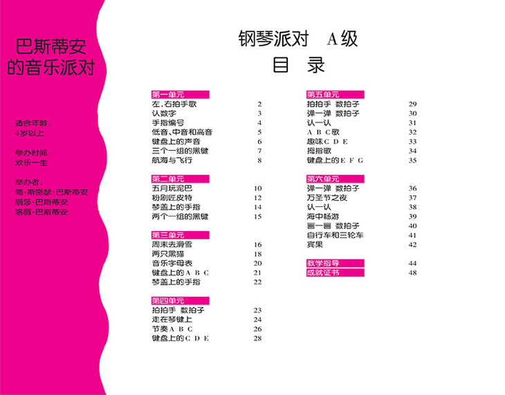 当前国内主流的低幼钢琴教程以引进版图书为主,这些图书的优势在于它们能把在国外起步较早、经过长期教学实践总结出的教学经验快速带给国内琴童,不过也有钢琴教师认为缺乏教学指导的教材在使用上有些困难,当前这套《巴斯蒂安的音乐派对》可谓漂亮地攻克了这一难题,它大量使用了文献著作的交互参照编著法,每一课的内容都配有简明实用的教学指导,它们既是对课程要点的提示,也是对琴童家长的帮助,在这样一种系统、精密的设计下,相信这套教程一定能使国内低幼琴童受益良多。