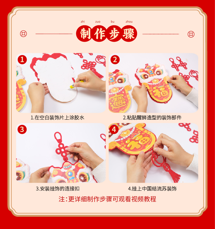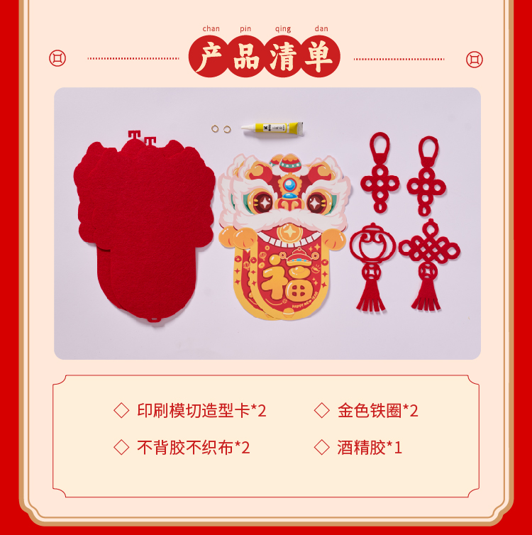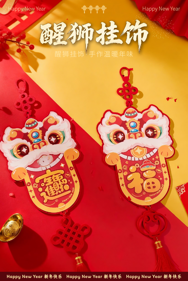 新年春节元宵马年醒狮挂饰手工diy儿童制作材料包幼儿园装饰2026