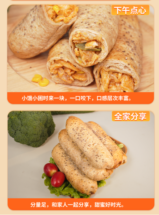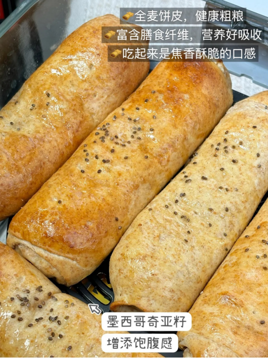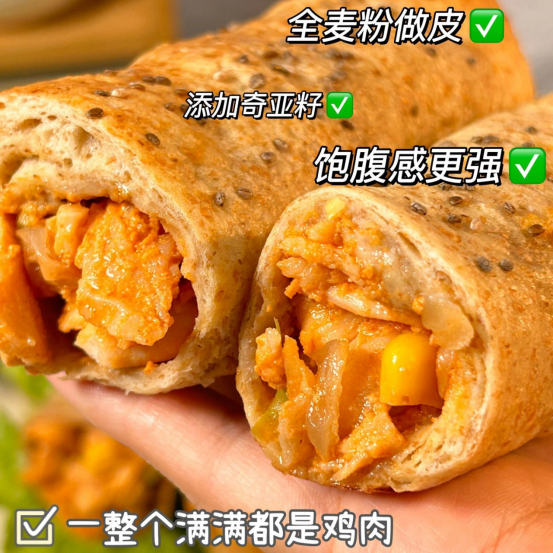 精选优质全麦面粉🌾膳食纤维满满 低GI值,吃完不血糖飙升,抗饿更久 特别添加奇亚籽🥝蛋白质和纤维double 比起白面粉做的卷饼,健康度直接翻倍 减脂期吃它🥬不用算热量也安心