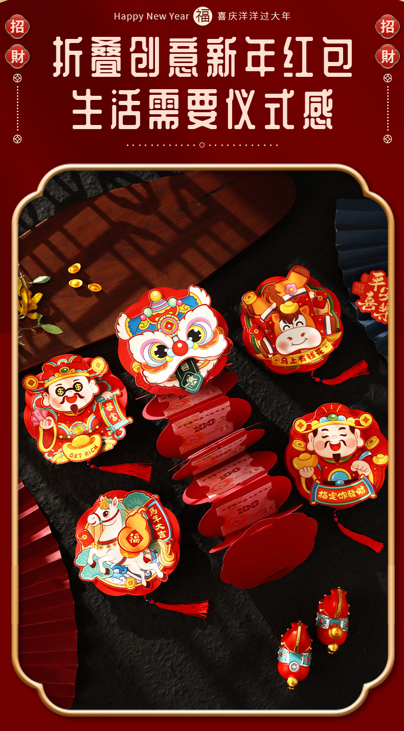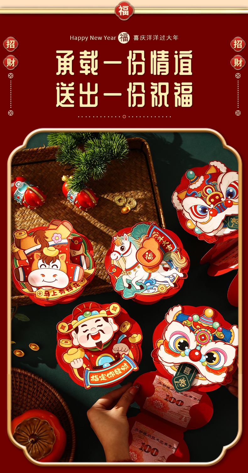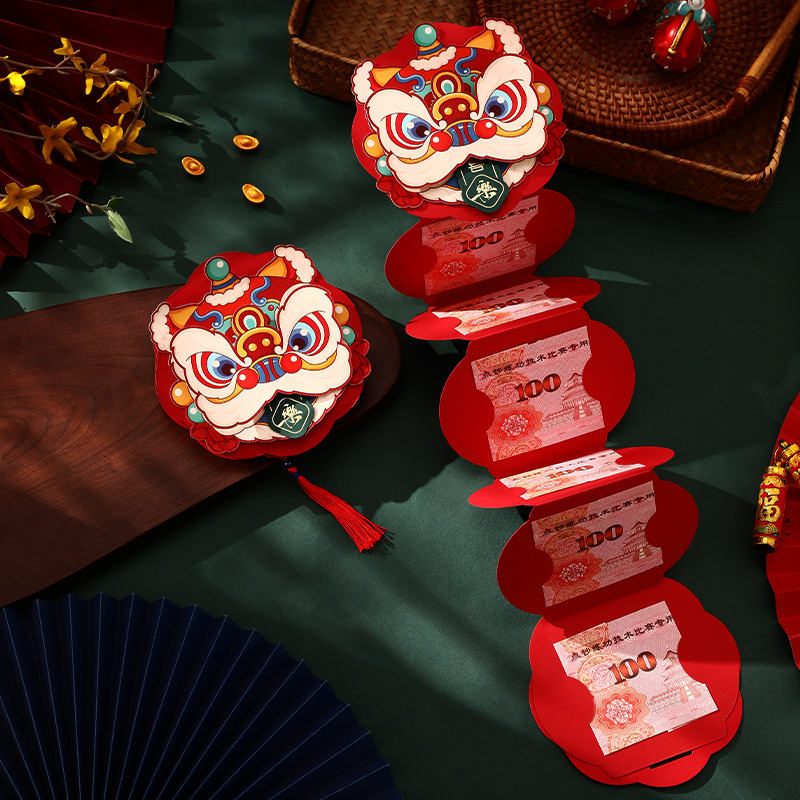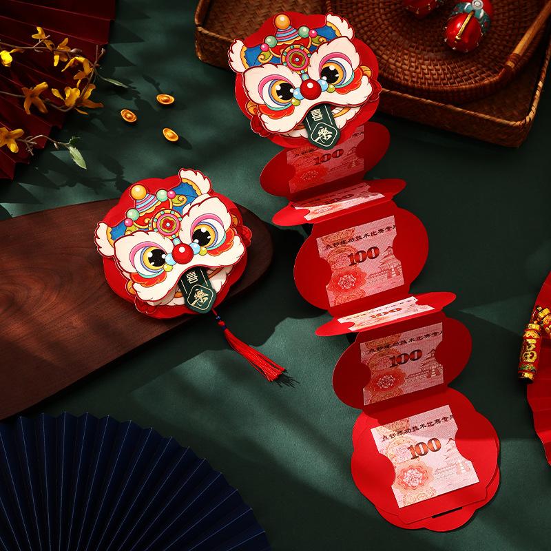 【创意折叠卡位红包❗喜庆洋洋过大年】装饰可以旋转,加厚材质,新年折叠红包2026马年醒狮卡位利是封过年春节拉拉红包袋。rf