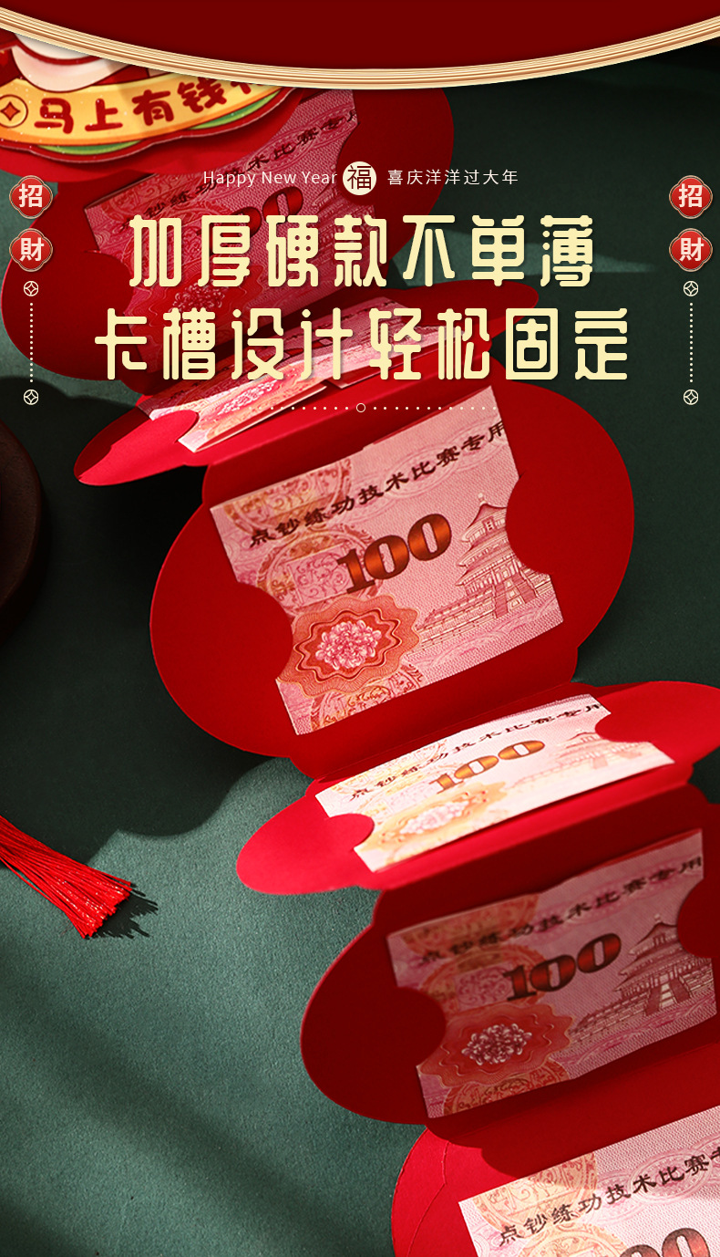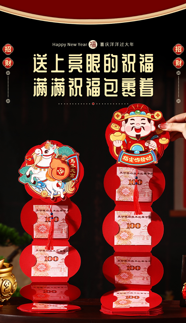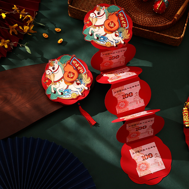 【创意折叠卡位红包❗喜庆洋洋过大年】装饰可以旋转,加厚材质,新年折叠红包2026马年醒狮卡位利是封过年春节拉拉红包袋。rf
