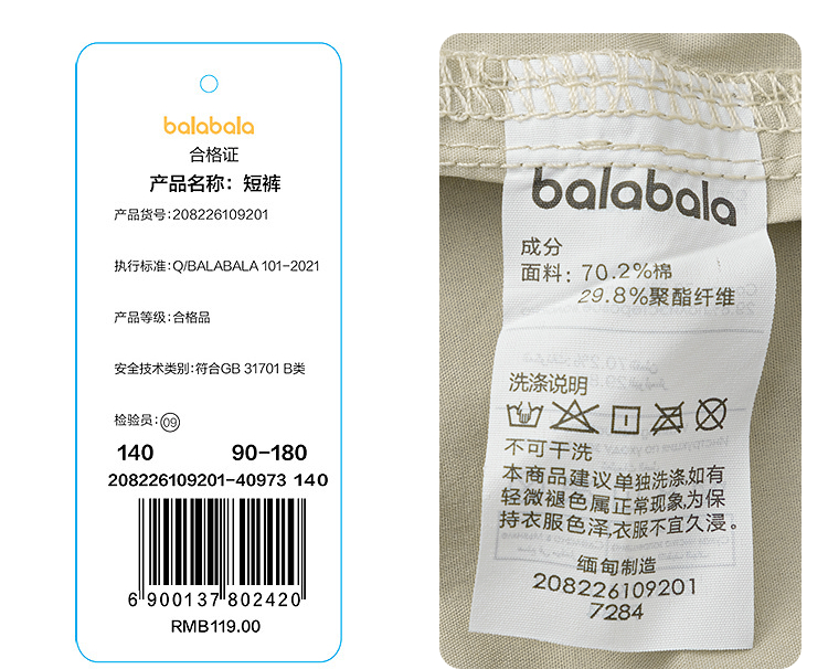 巴拉巴拉童装儿童中裤男童短裤2026夏大童女童轻薄直筒裤百搭舒适