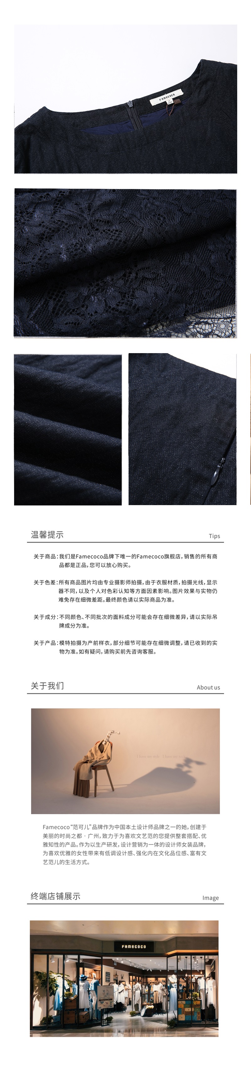 famecoco范可儿连衣裙宽松显瘦蕾丝下摆长款连衣裙F195FA017