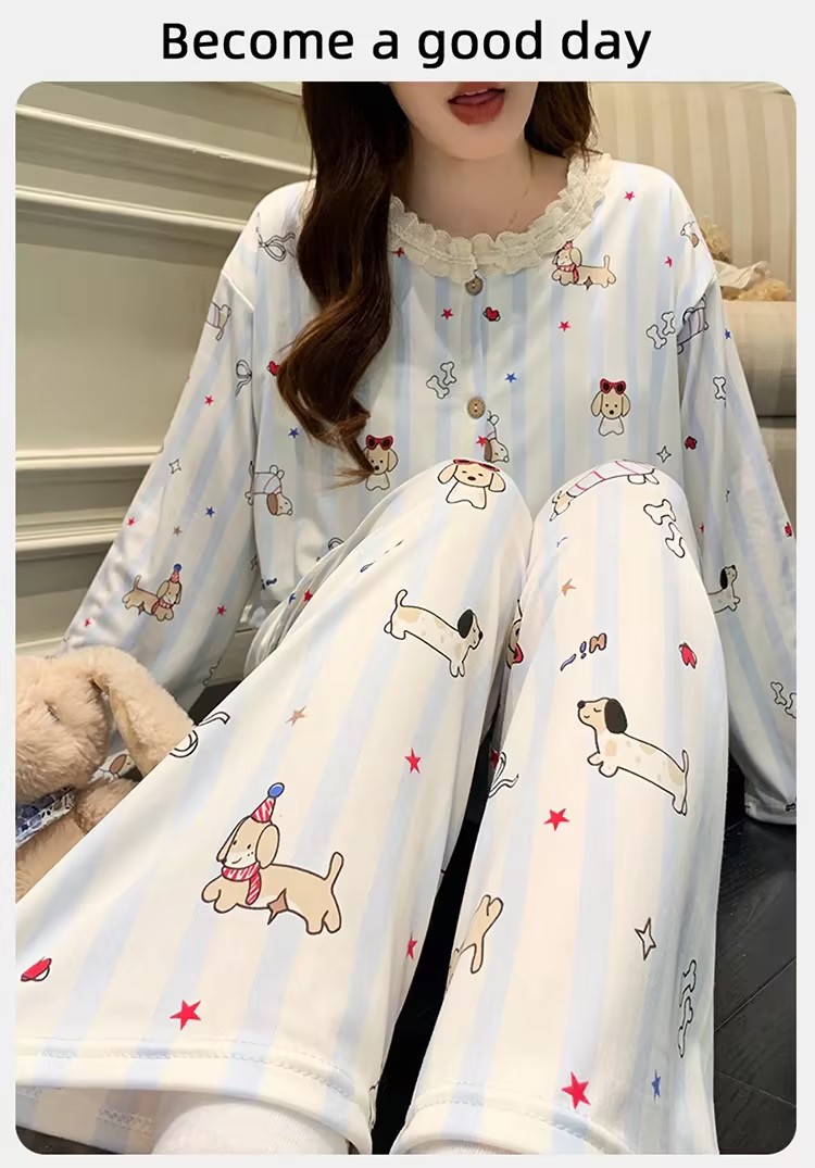 YW买手优选春季新款云朵棉印花宽松甜美家居服女士套装170545450(预售3-5天发货)