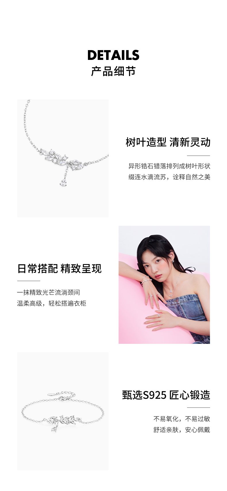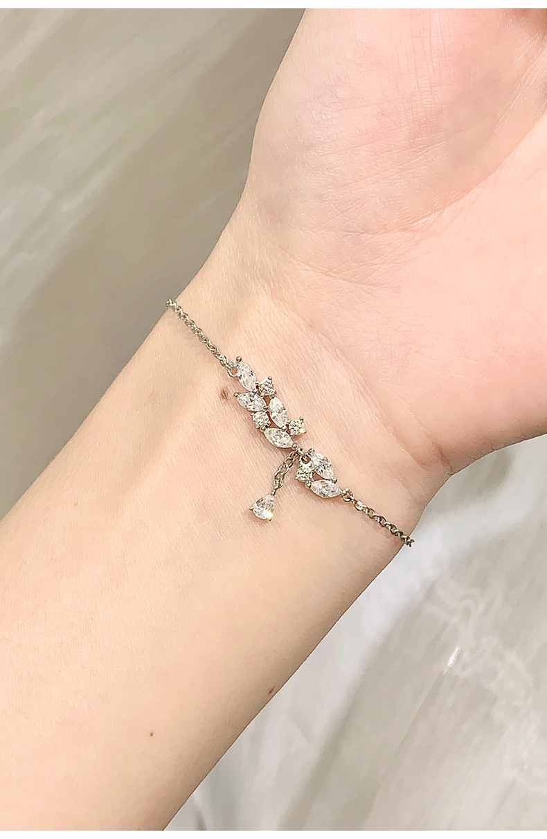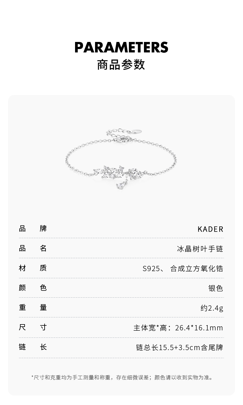 卡蒂罗/KADER 冰晶树叶手链 满镶宝石轻奢原创设计可调节流苏拼接链 纯白茉莉紫藤花的微笑手饰 925银