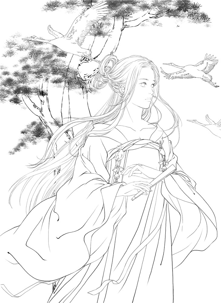 伊人绘:唯美古风涂色线描集