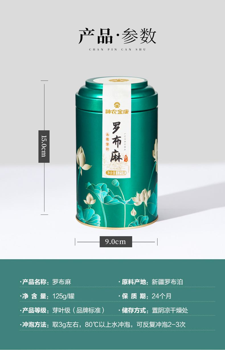 神农金康 新疆罗布麻嫩叶茶125g/罐 原生态真滋补 喝护家人健康