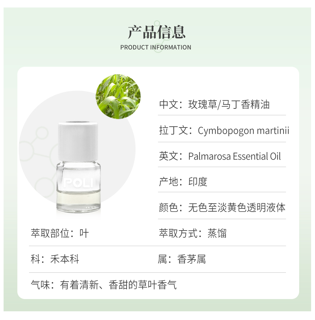 印度进口玫瑰草单方精油原料 玫瑰草精油原液 颇黎POLI精油原料批发