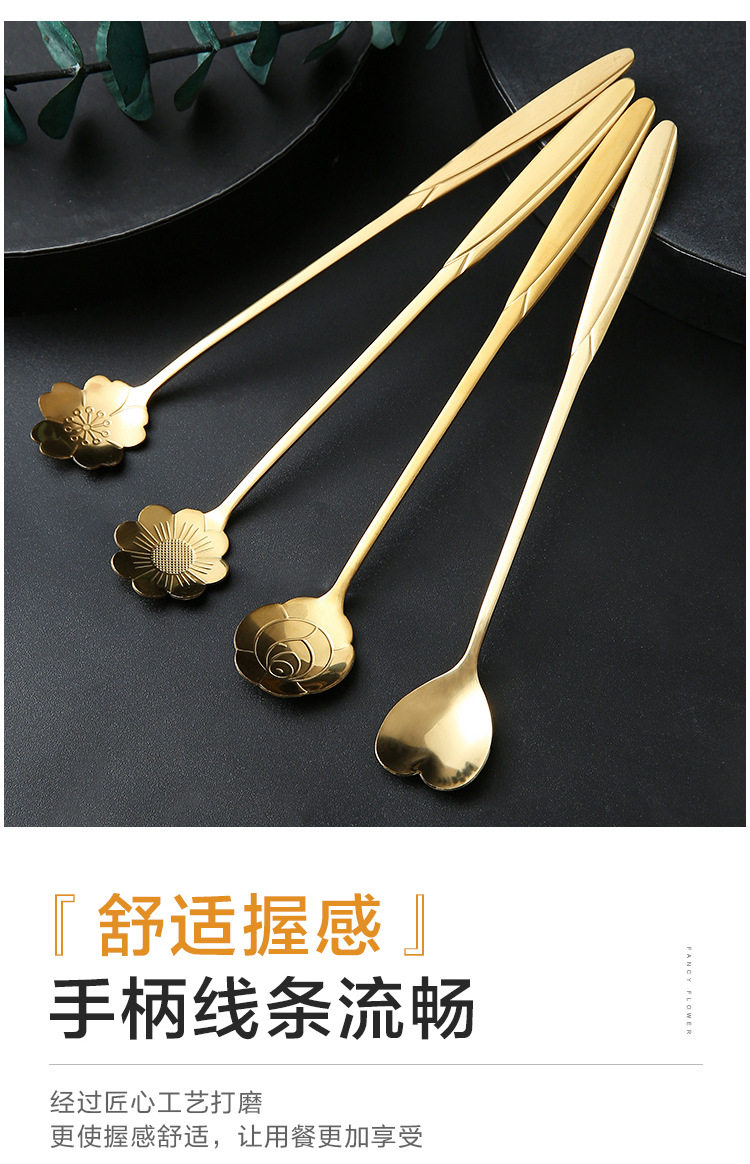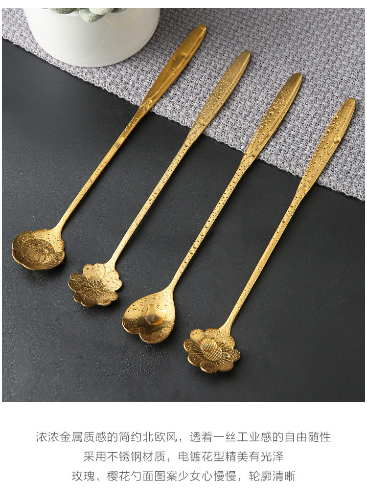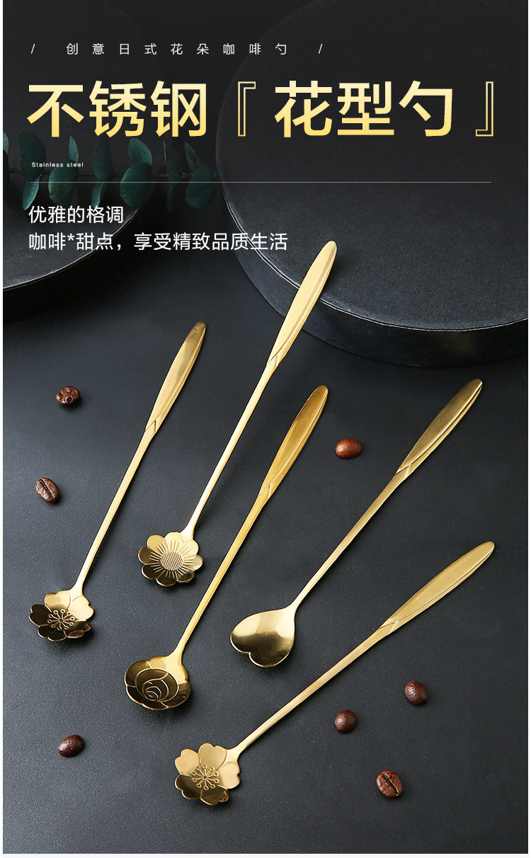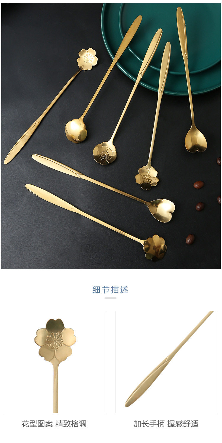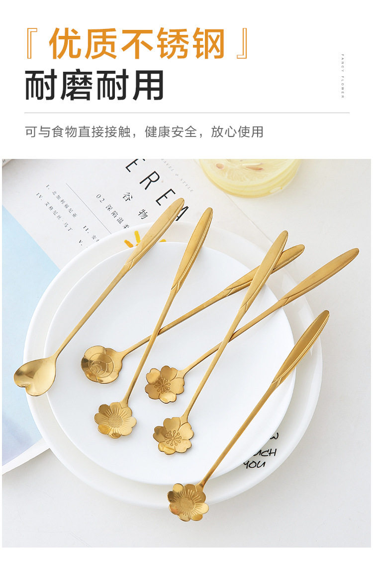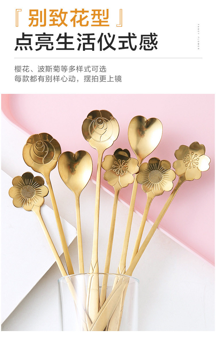 勺樱花勺子搅拌勺长柄咖啡勺马克杯不锈钢汤匙批发小时尚冰勺甜品