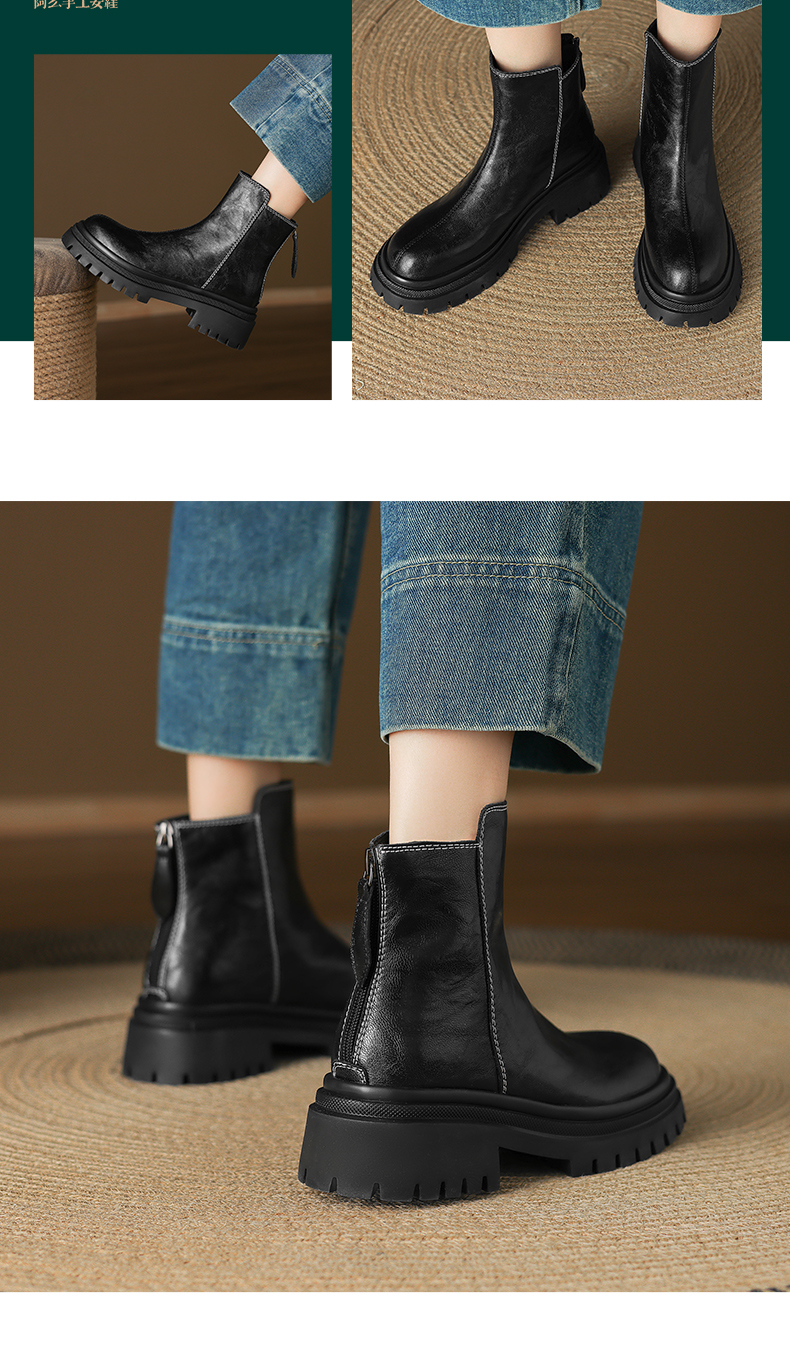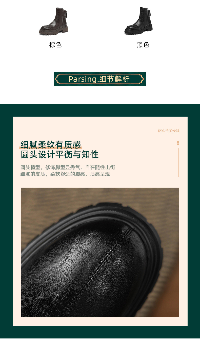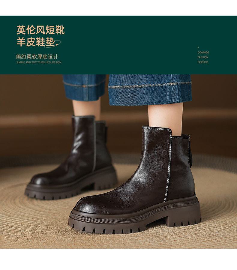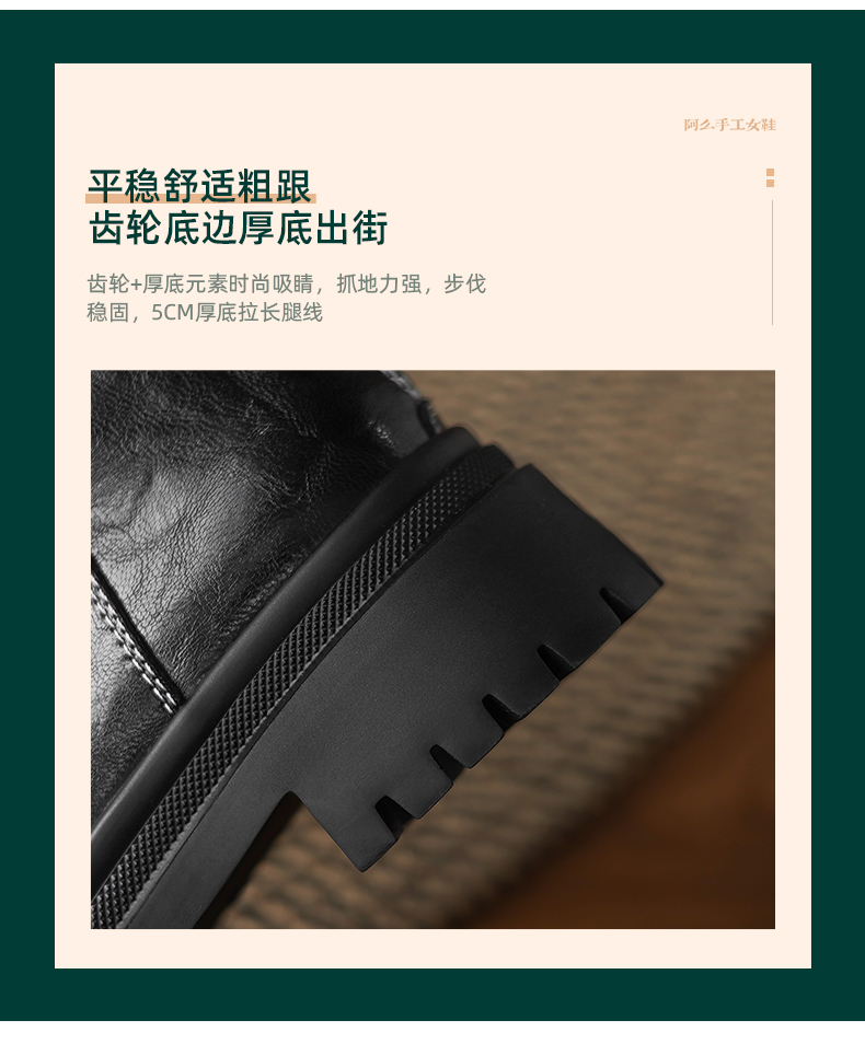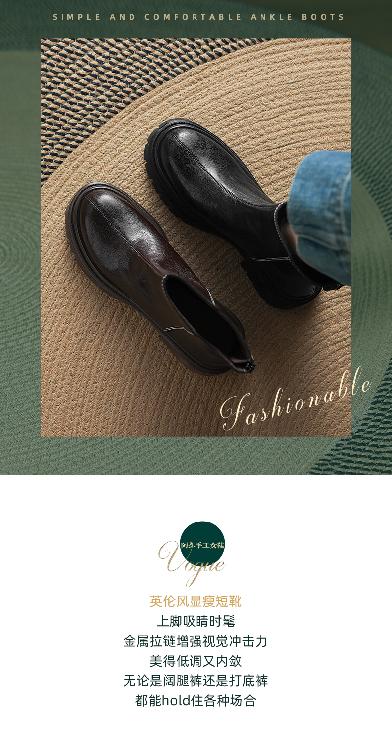 阿么手工女鞋增高厚底短靴2025新款复古拉链洋气时髦靴子女款5CM