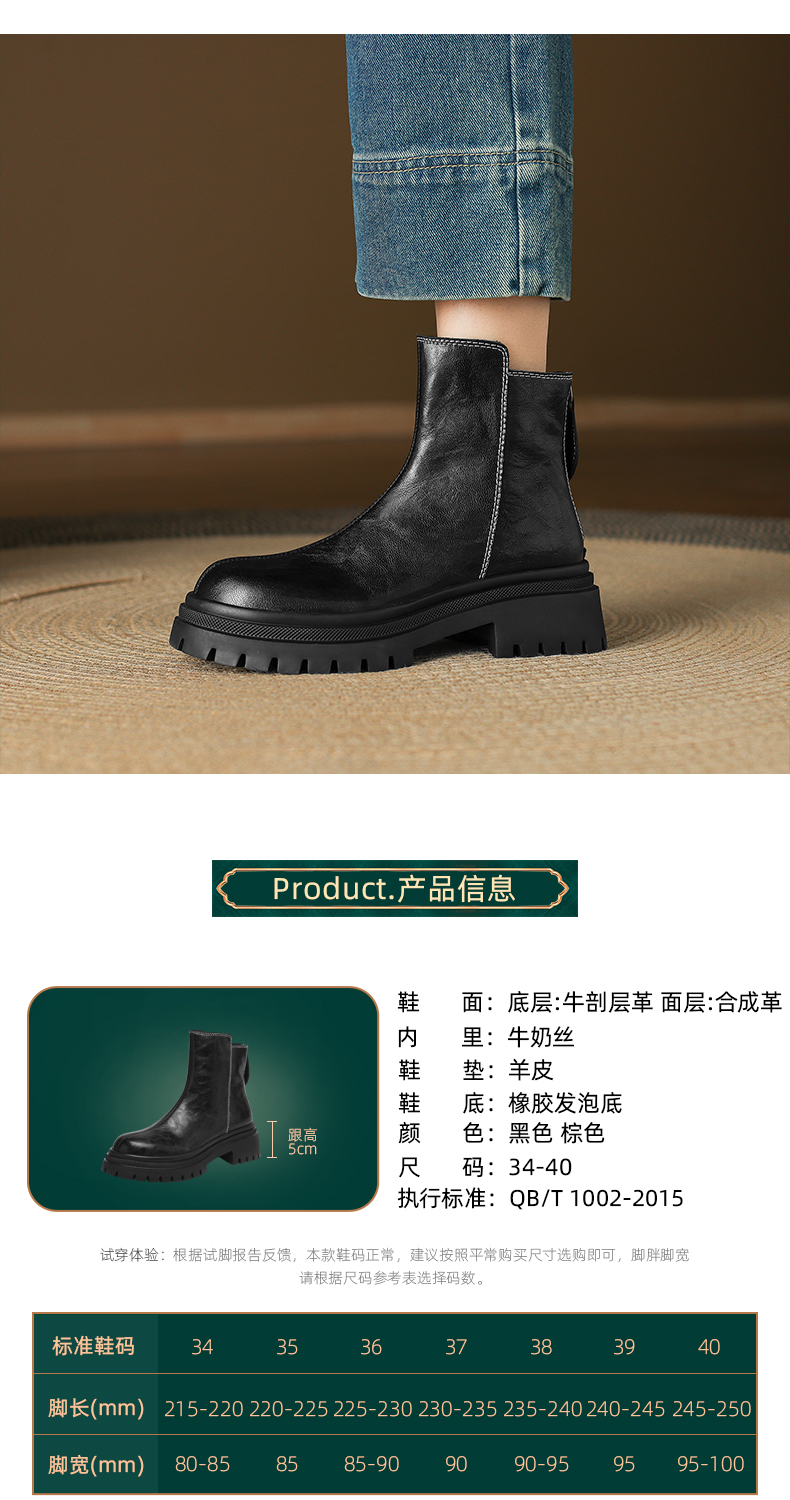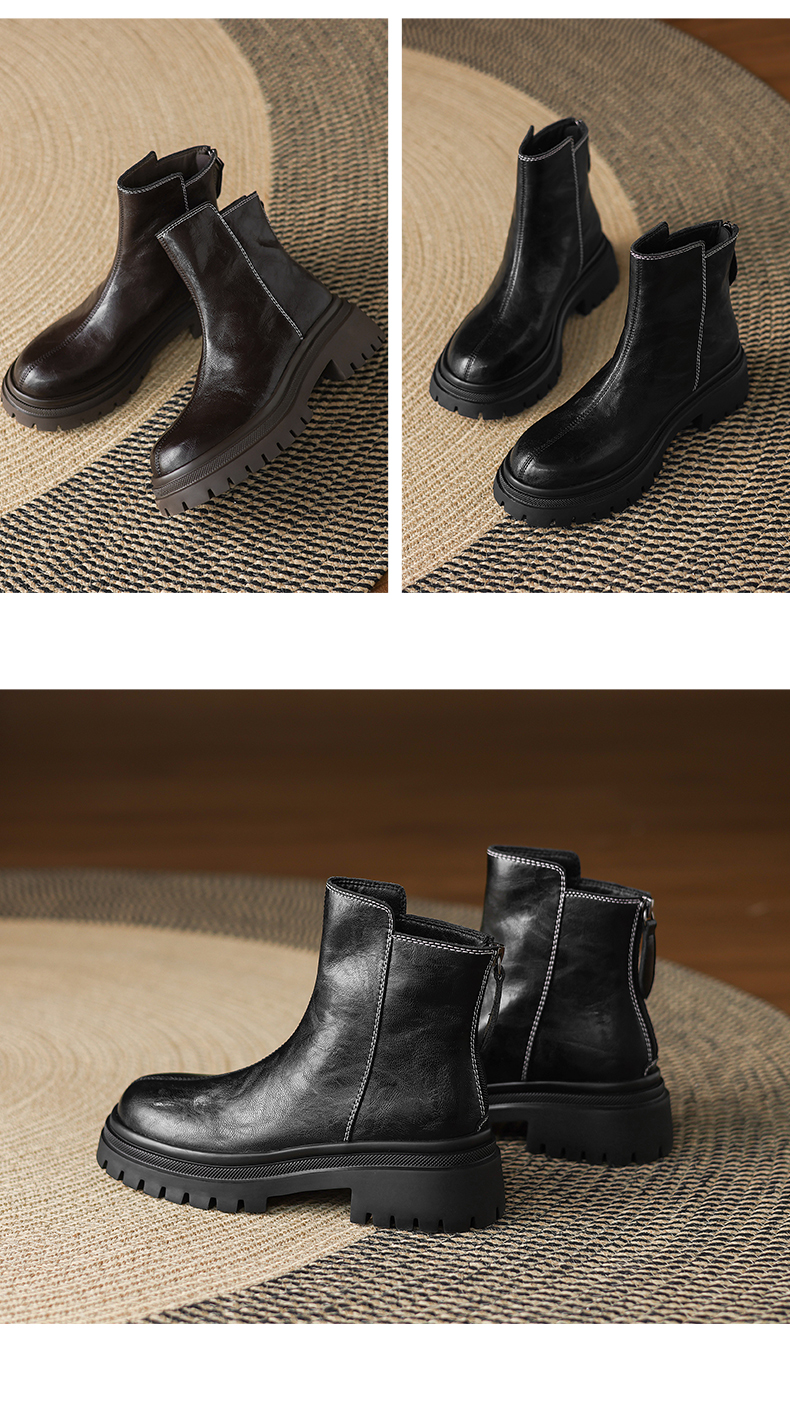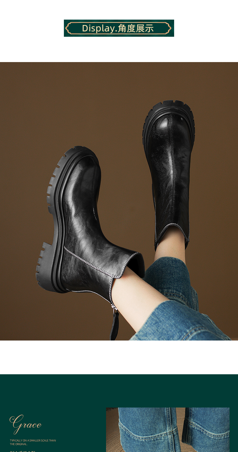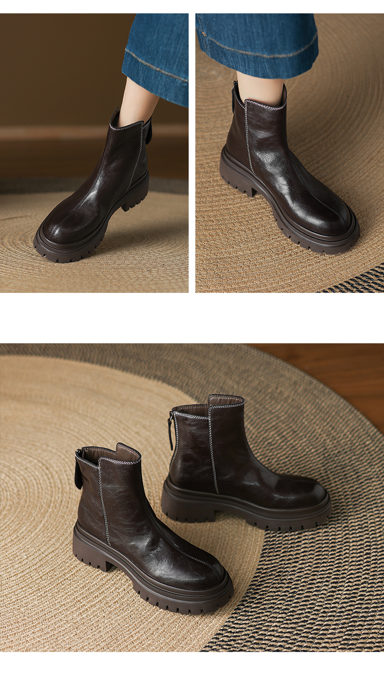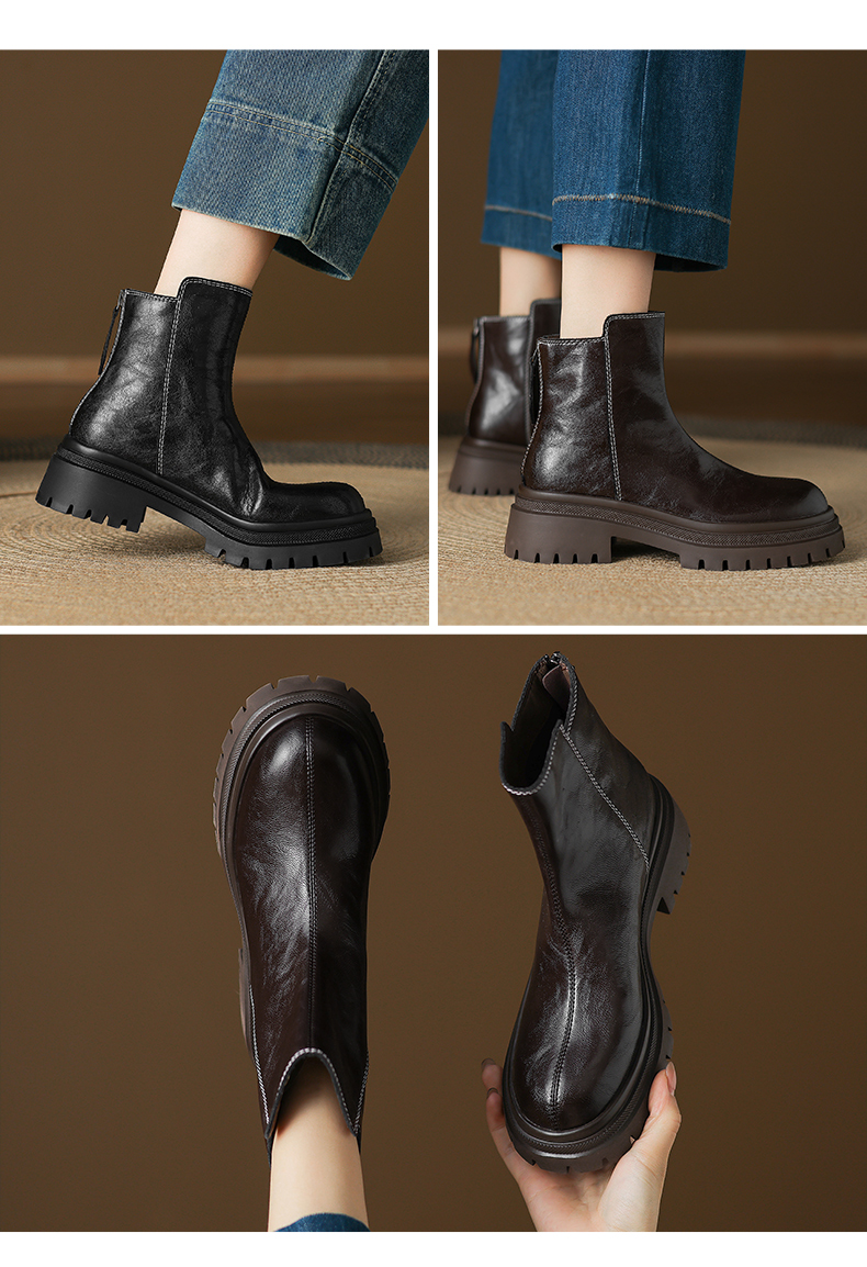 阿么手工女鞋增高厚底短靴2025新款复古拉链洋气时髦靴子女款5CM