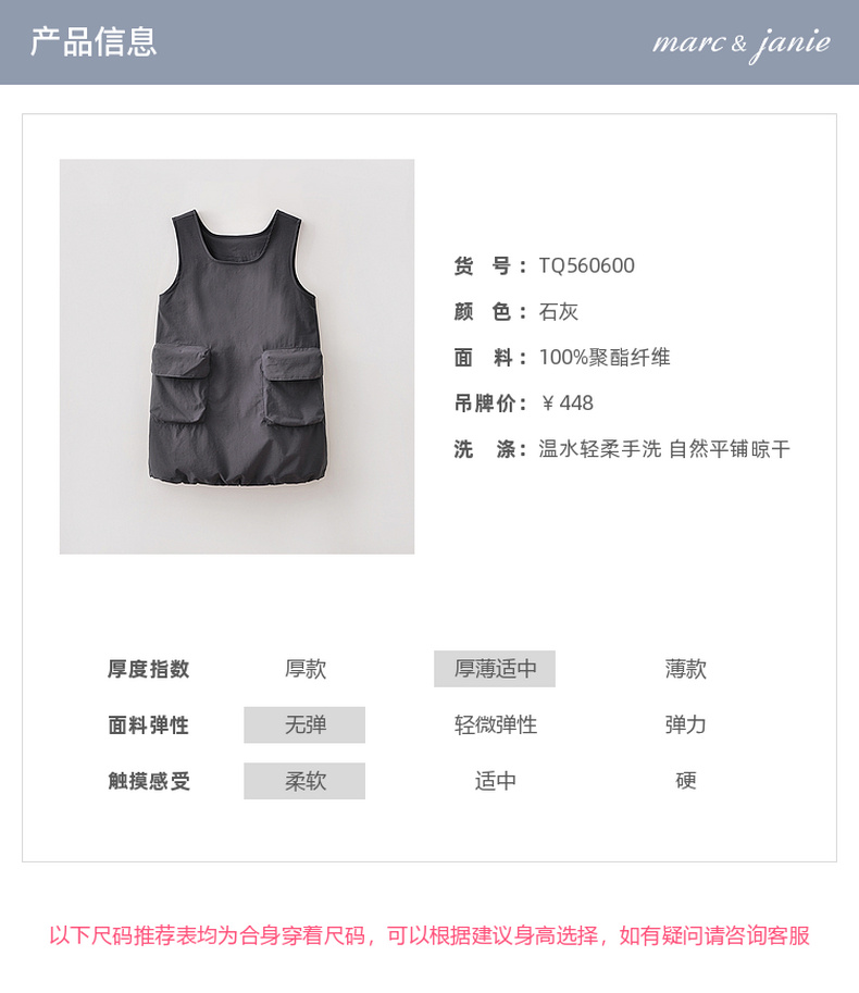 马克珍妮简约时髦女童速干工装裙2026年夏装新款560600