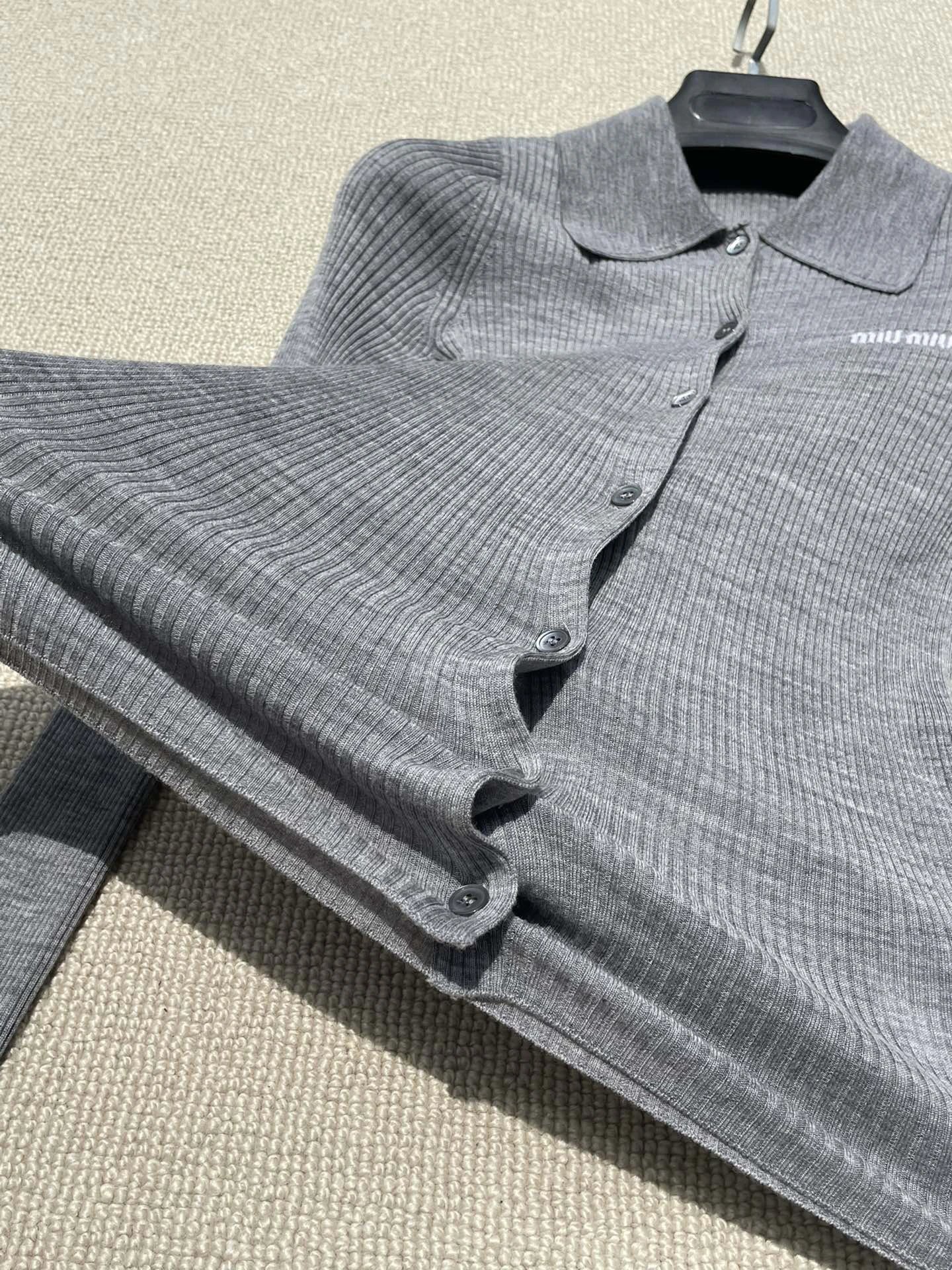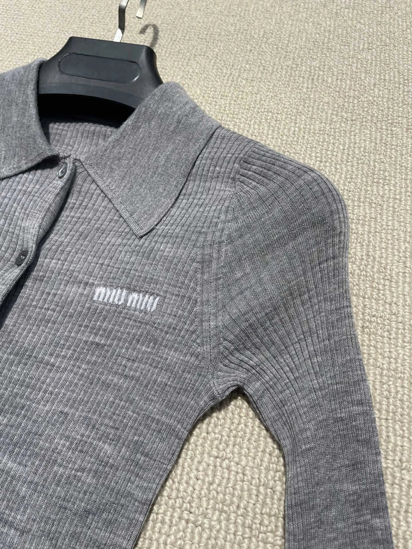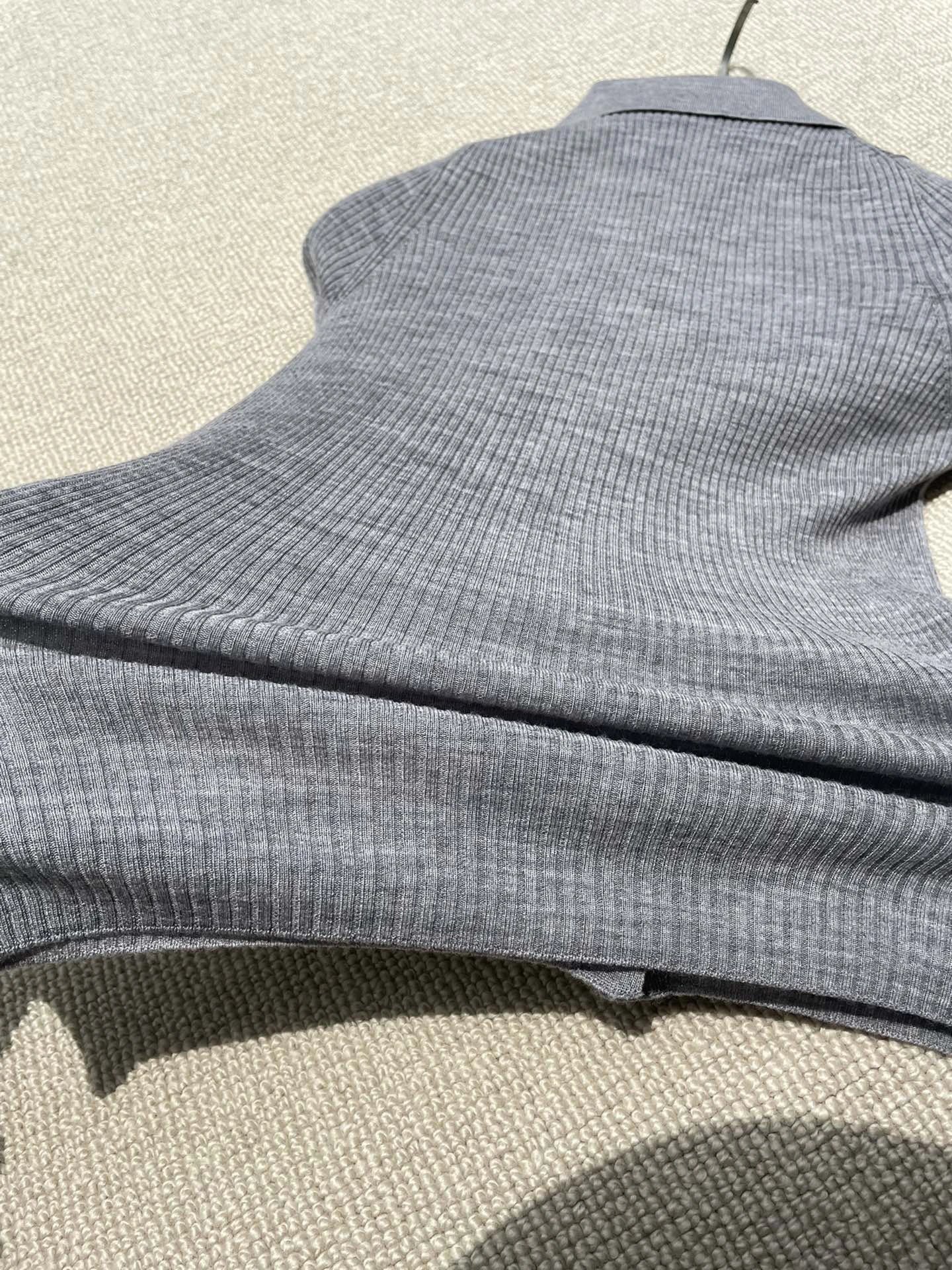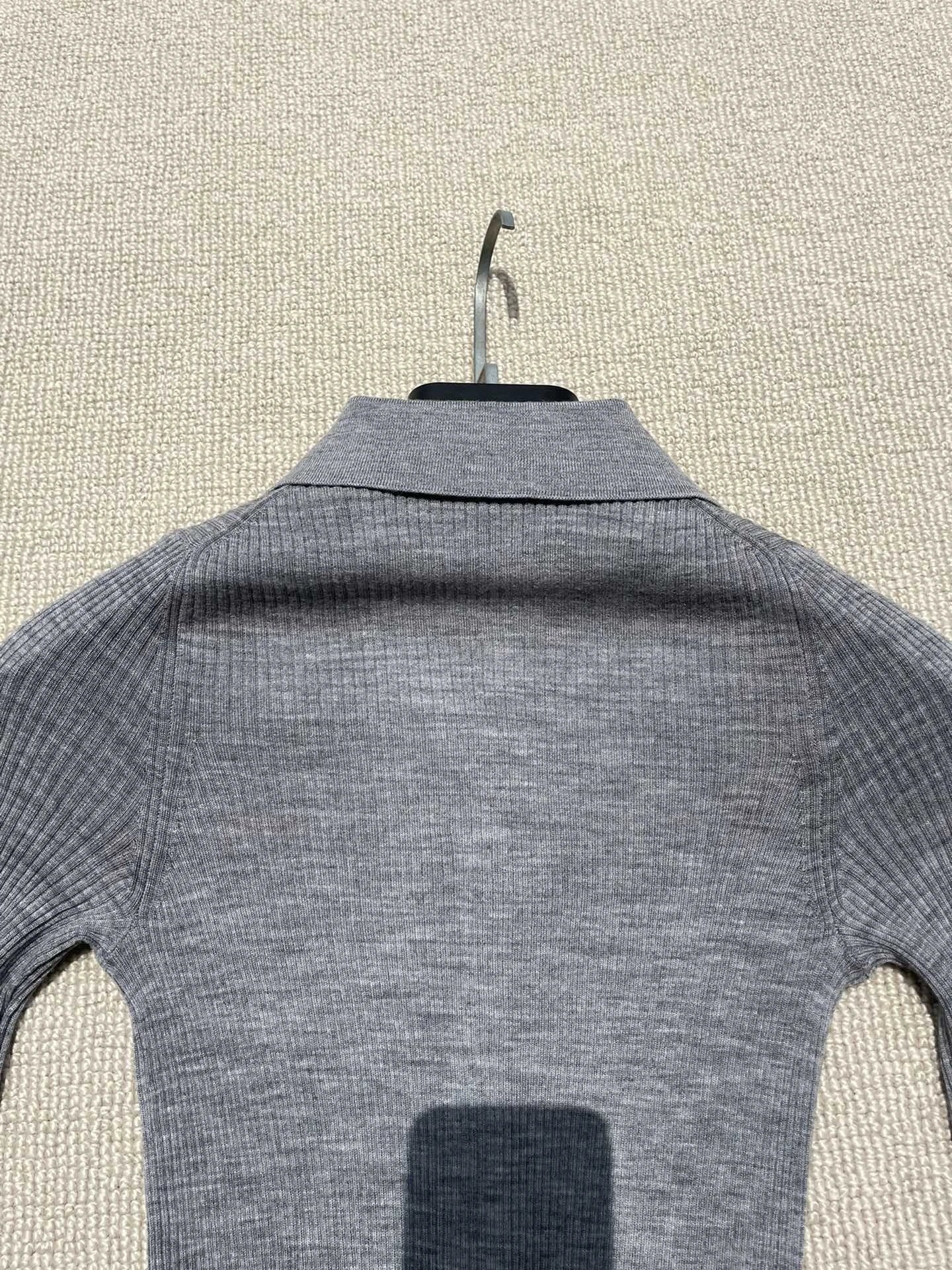 贸易公司渠道 miu丝羊绒长袖polo衫 坑条针织弹力修身版型
