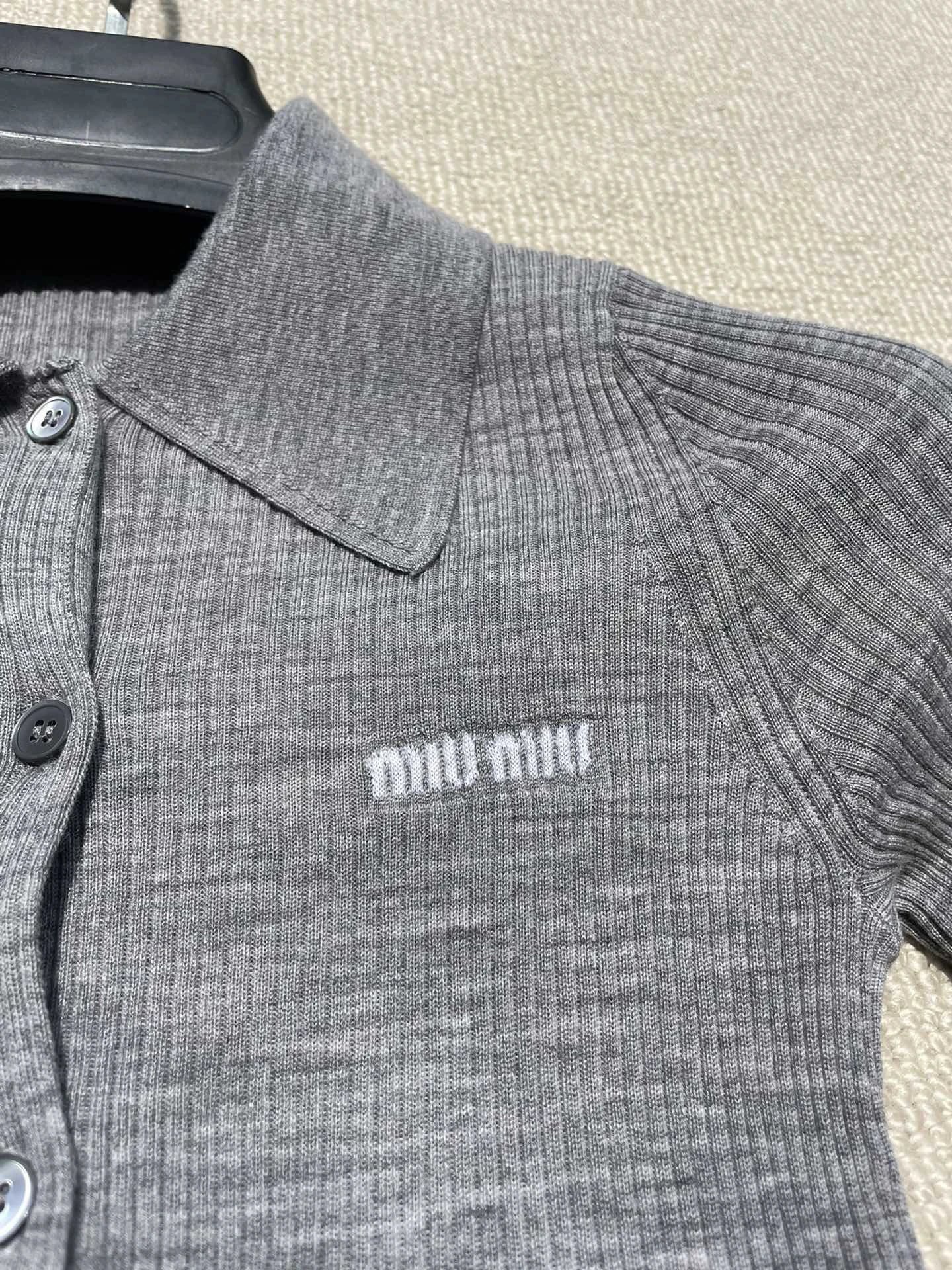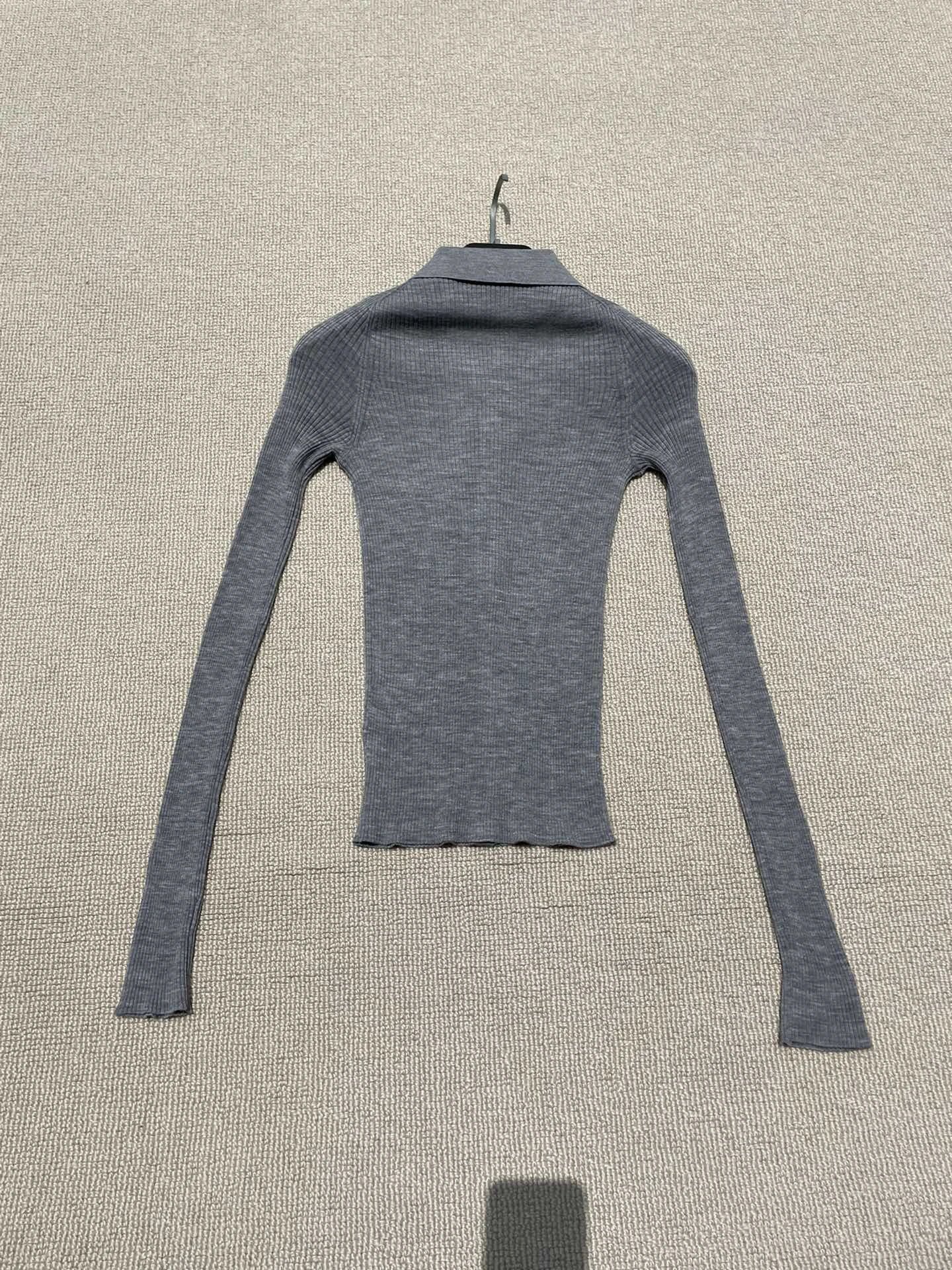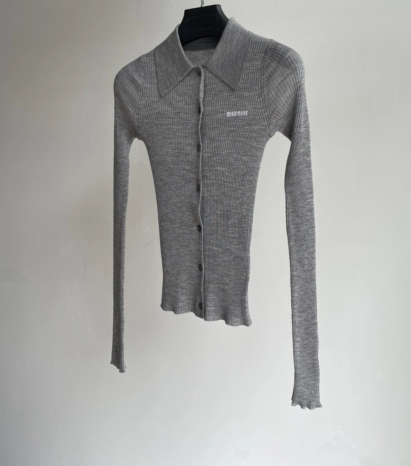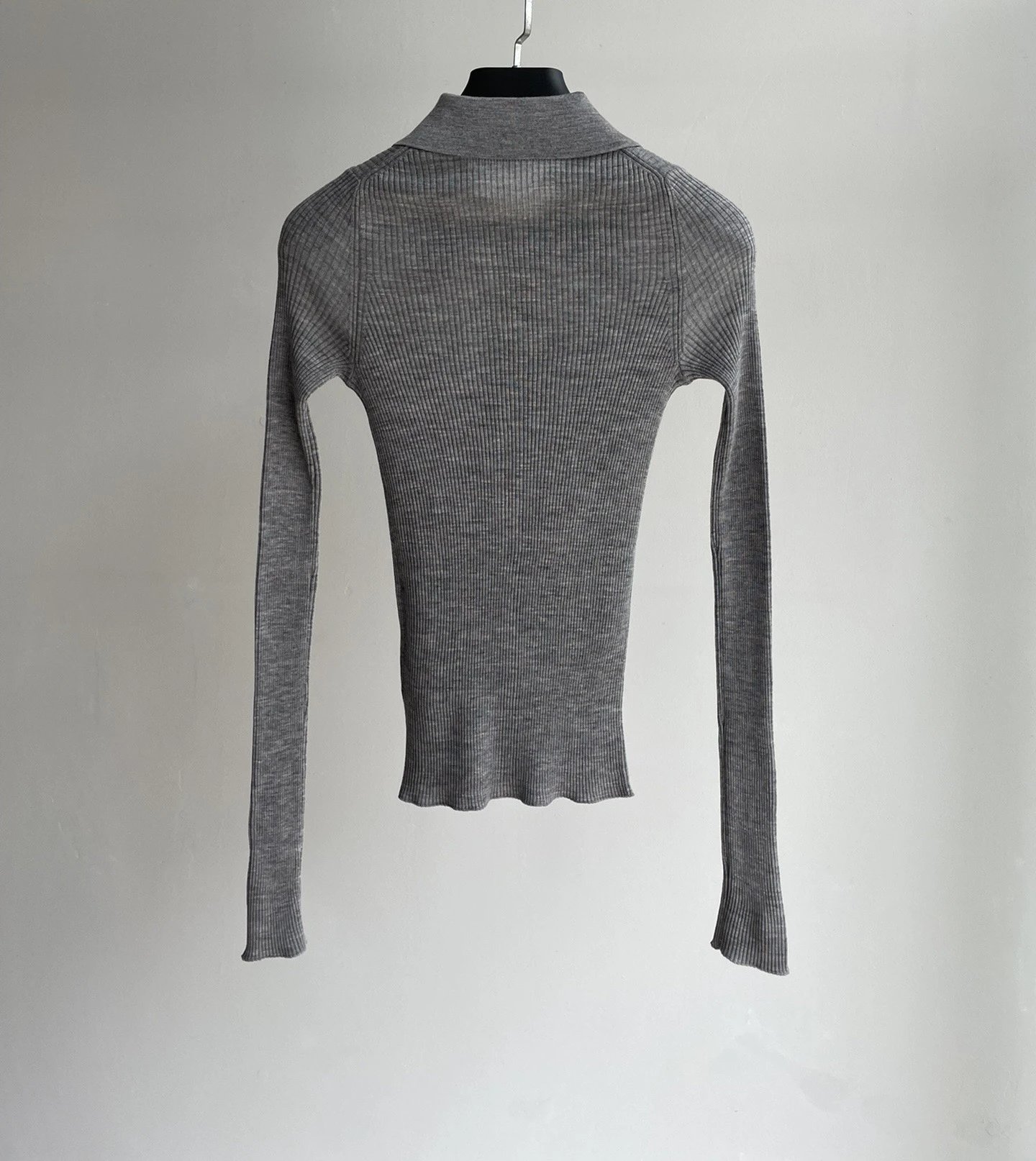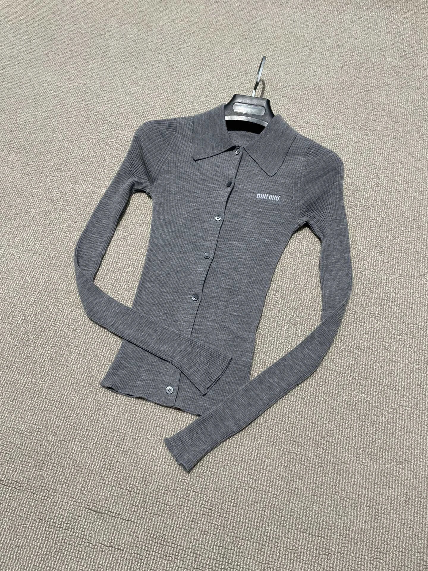 贸易公司渠道 miu丝羊绒长袖polo衫 坑条针织弹力修身版型