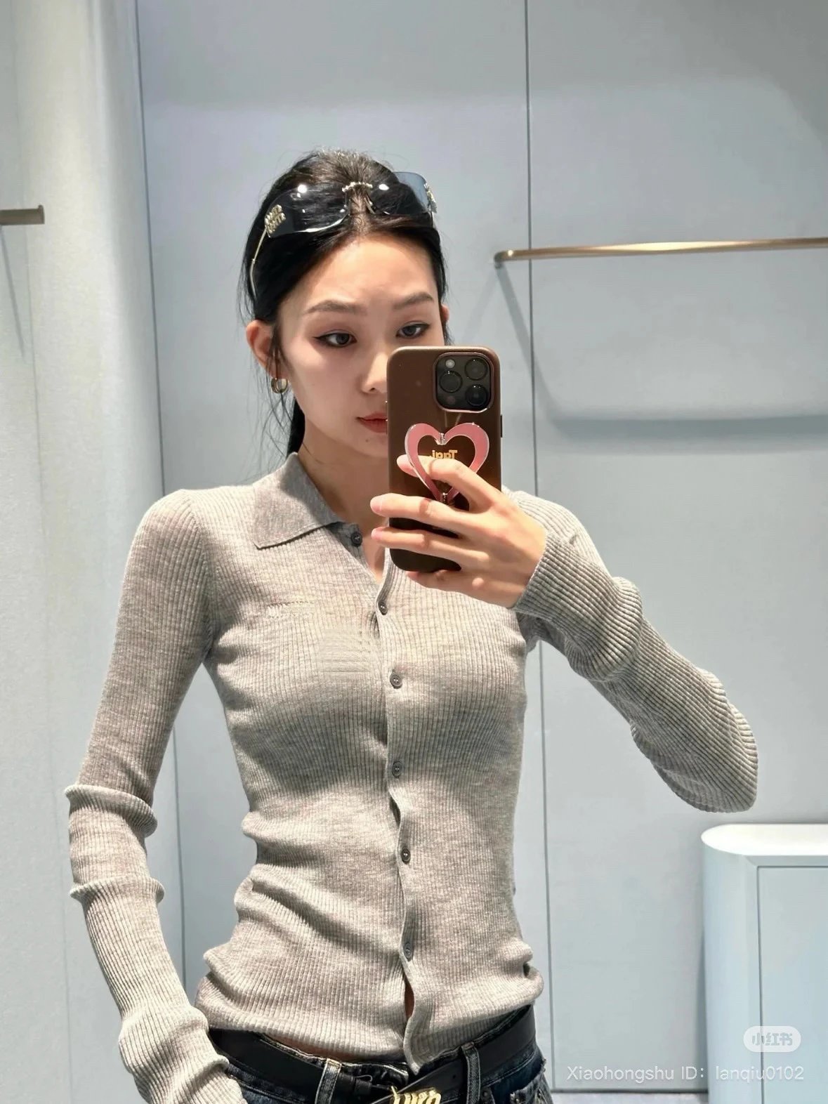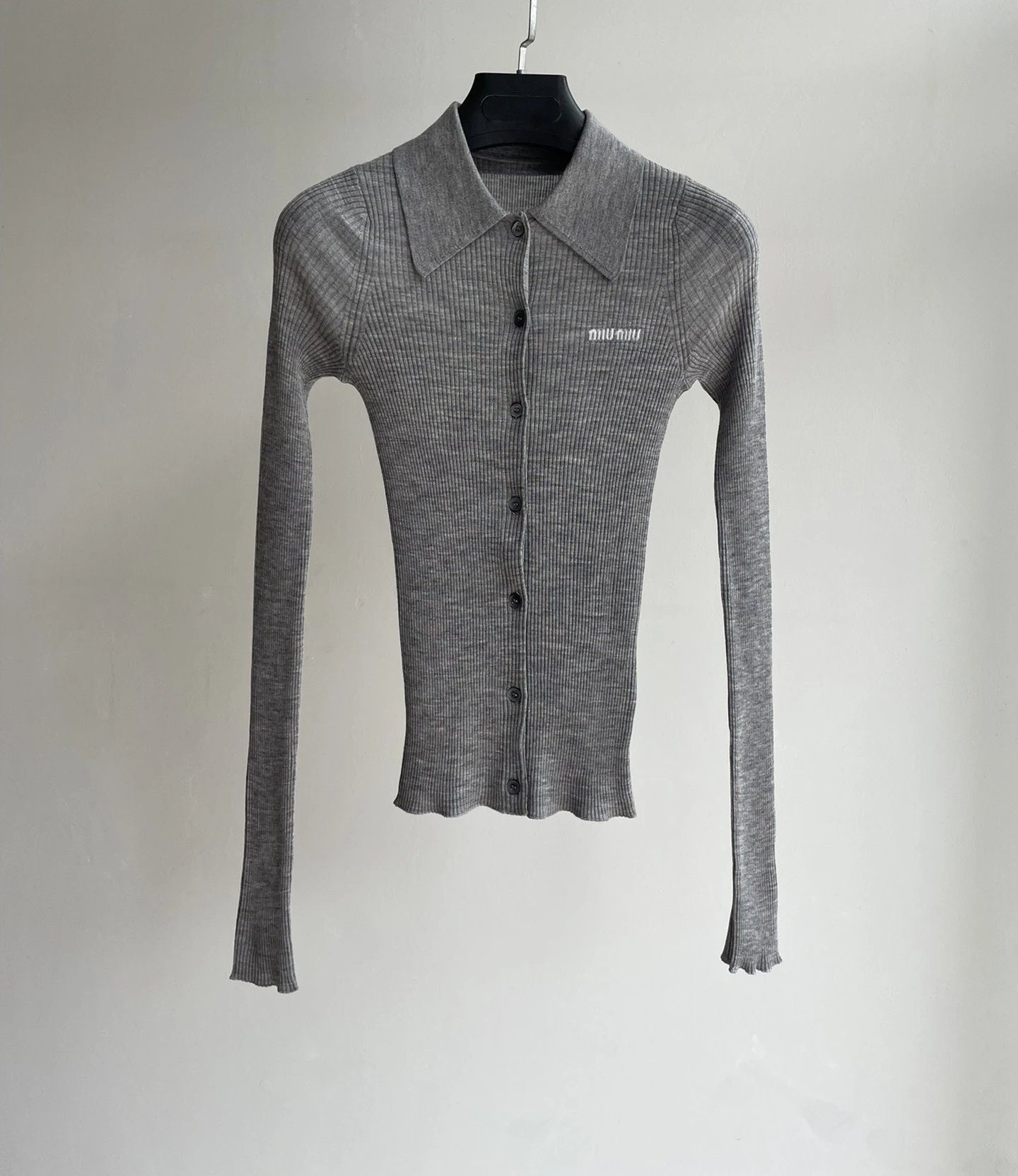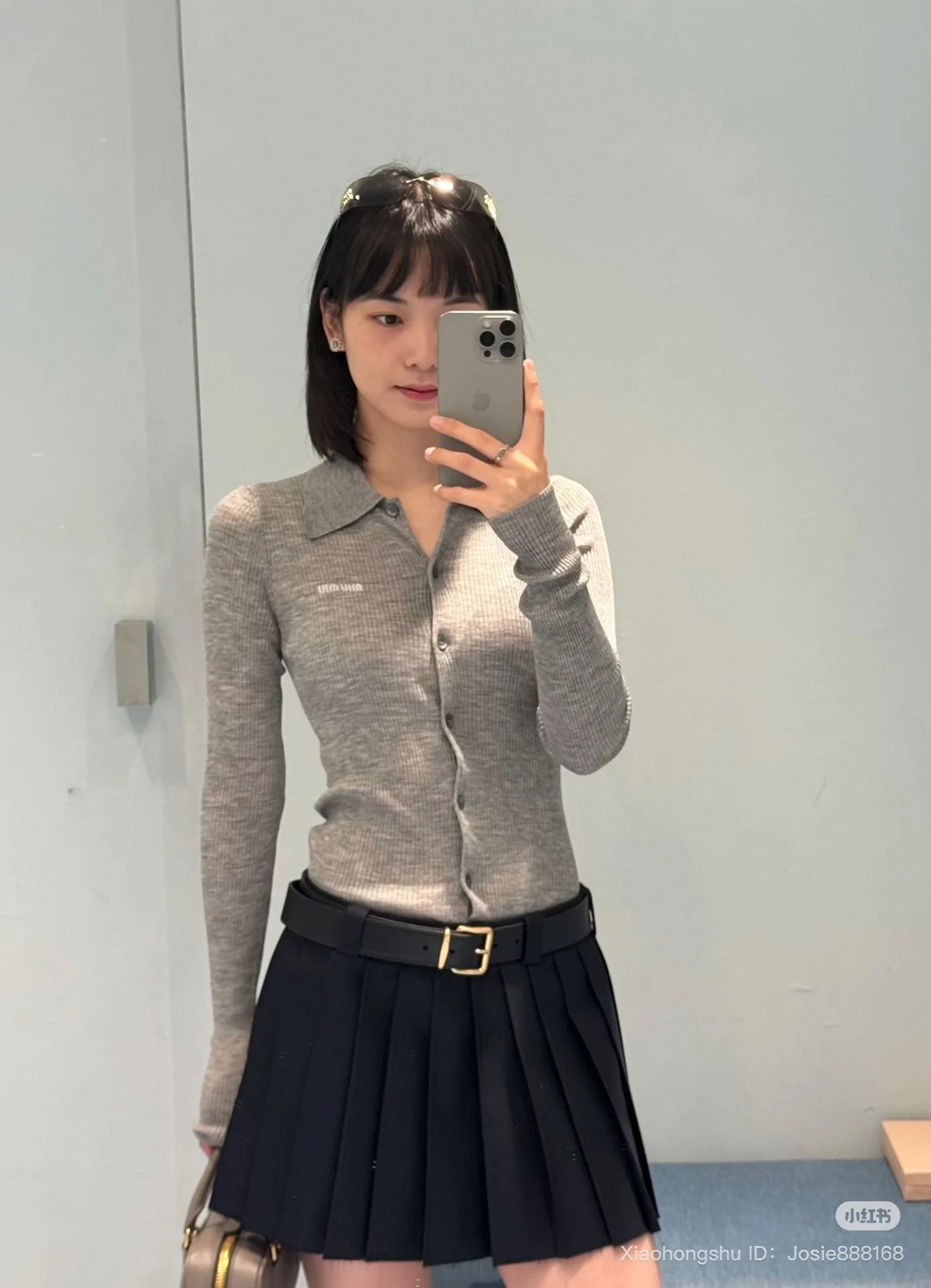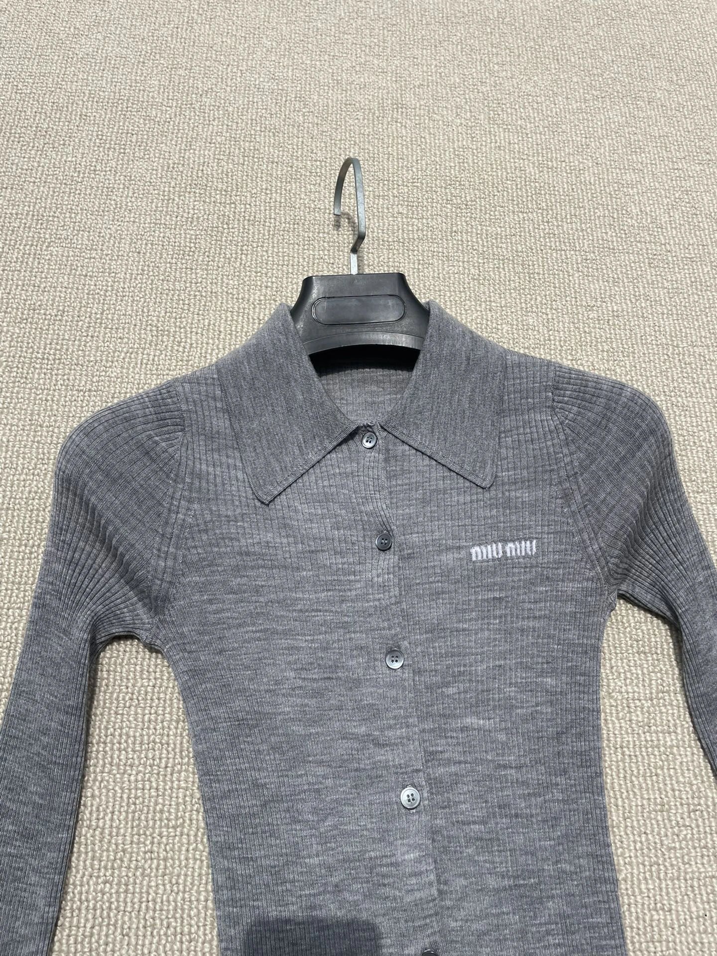 贸易公司渠道 miu丝羊绒长袖polo衫 坑条针织弹力修身版型