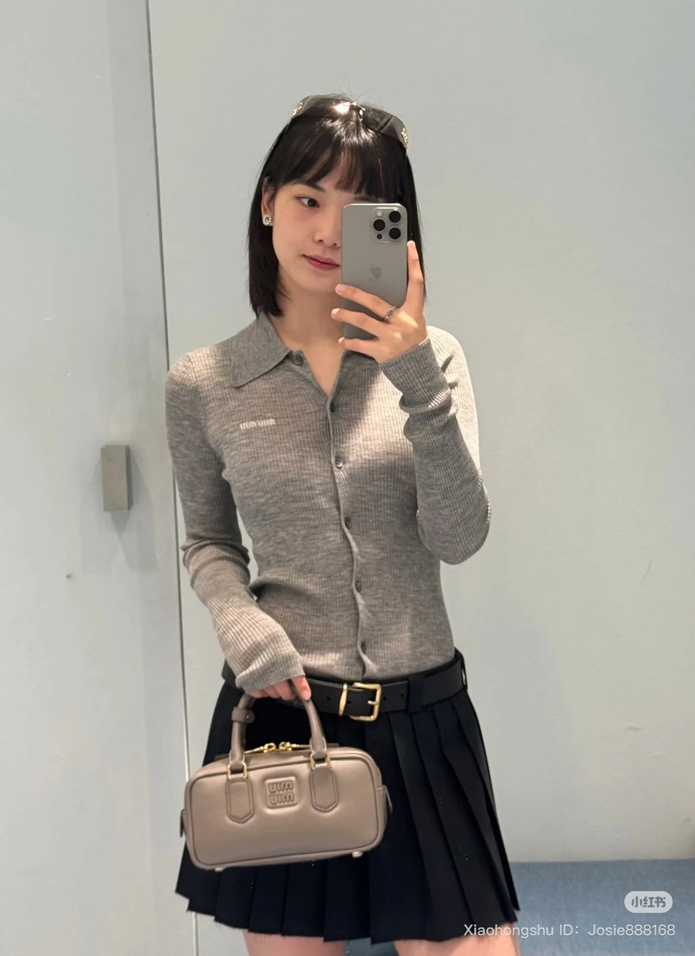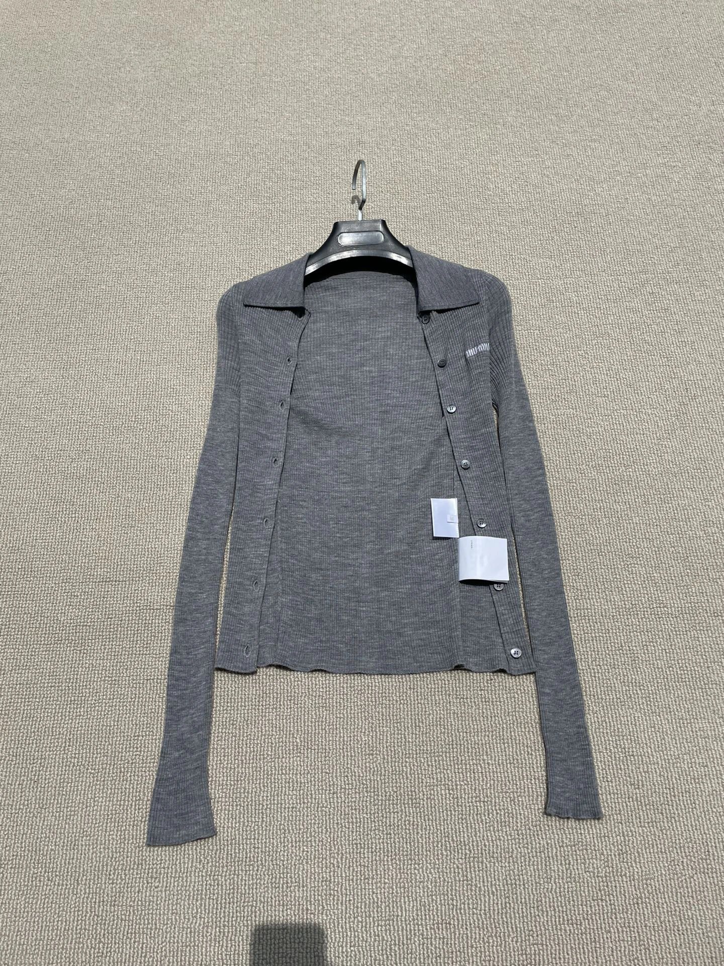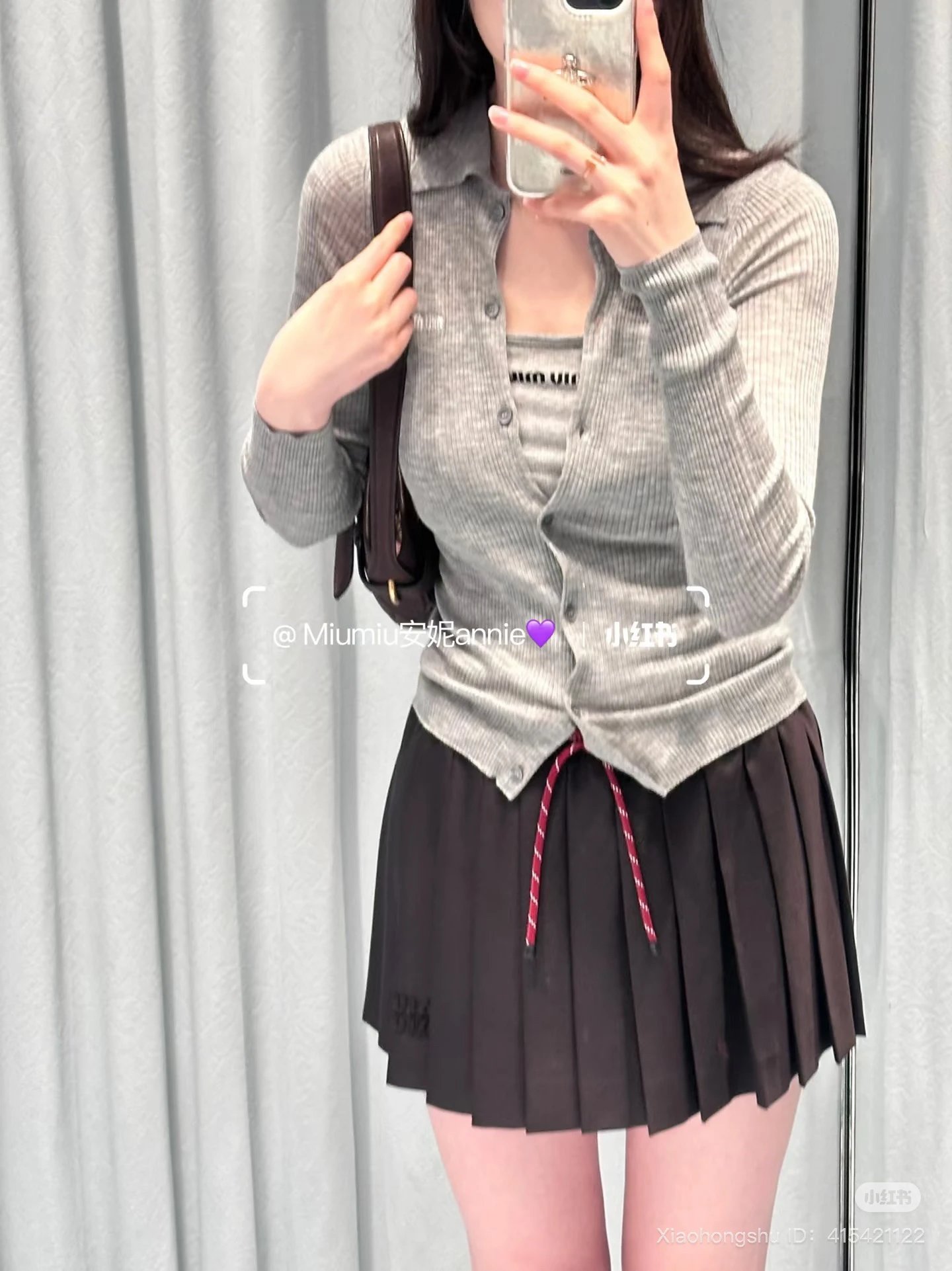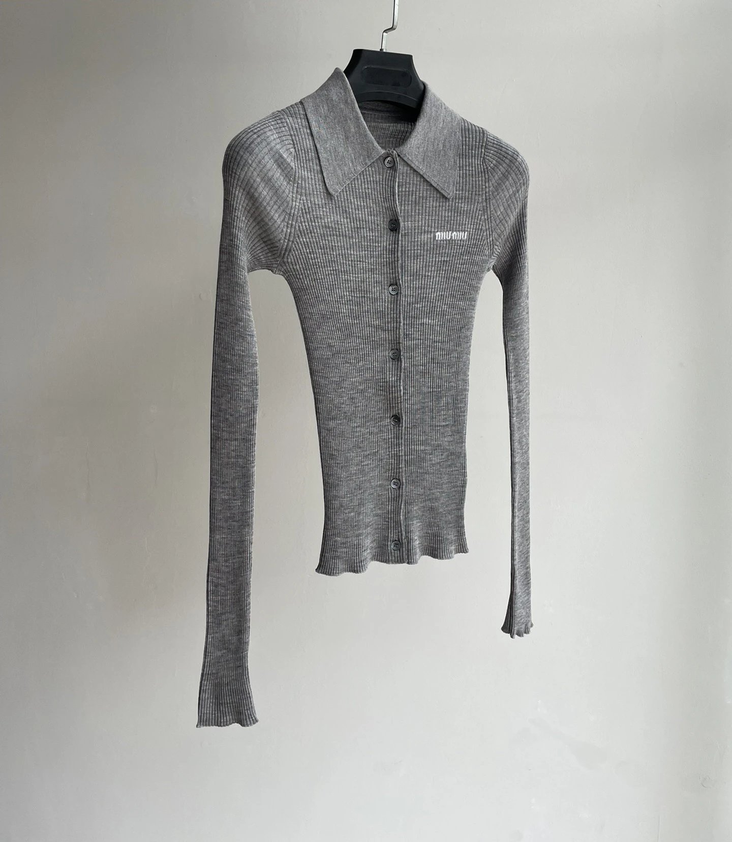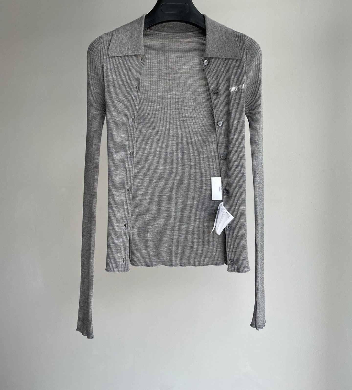 贸易公司渠道 miu丝羊绒长袖polo衫 坑条针织弹力修身版型