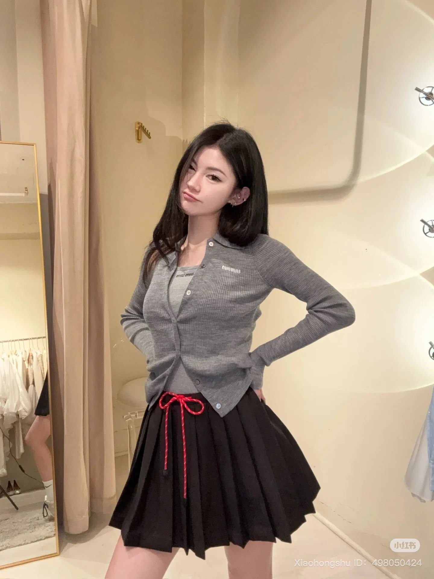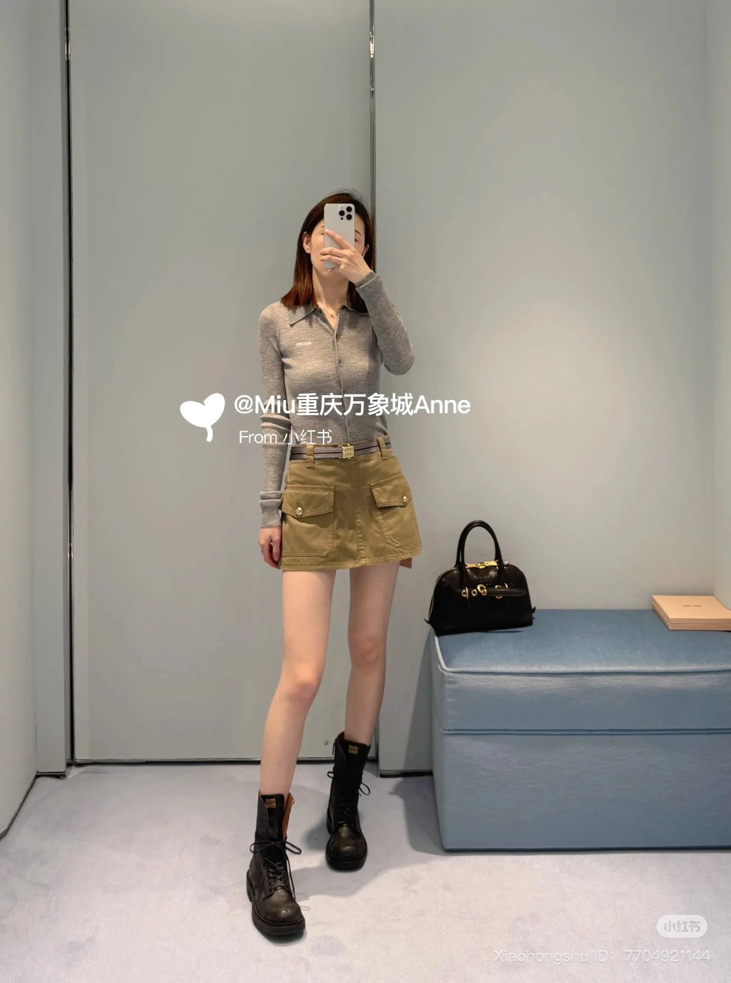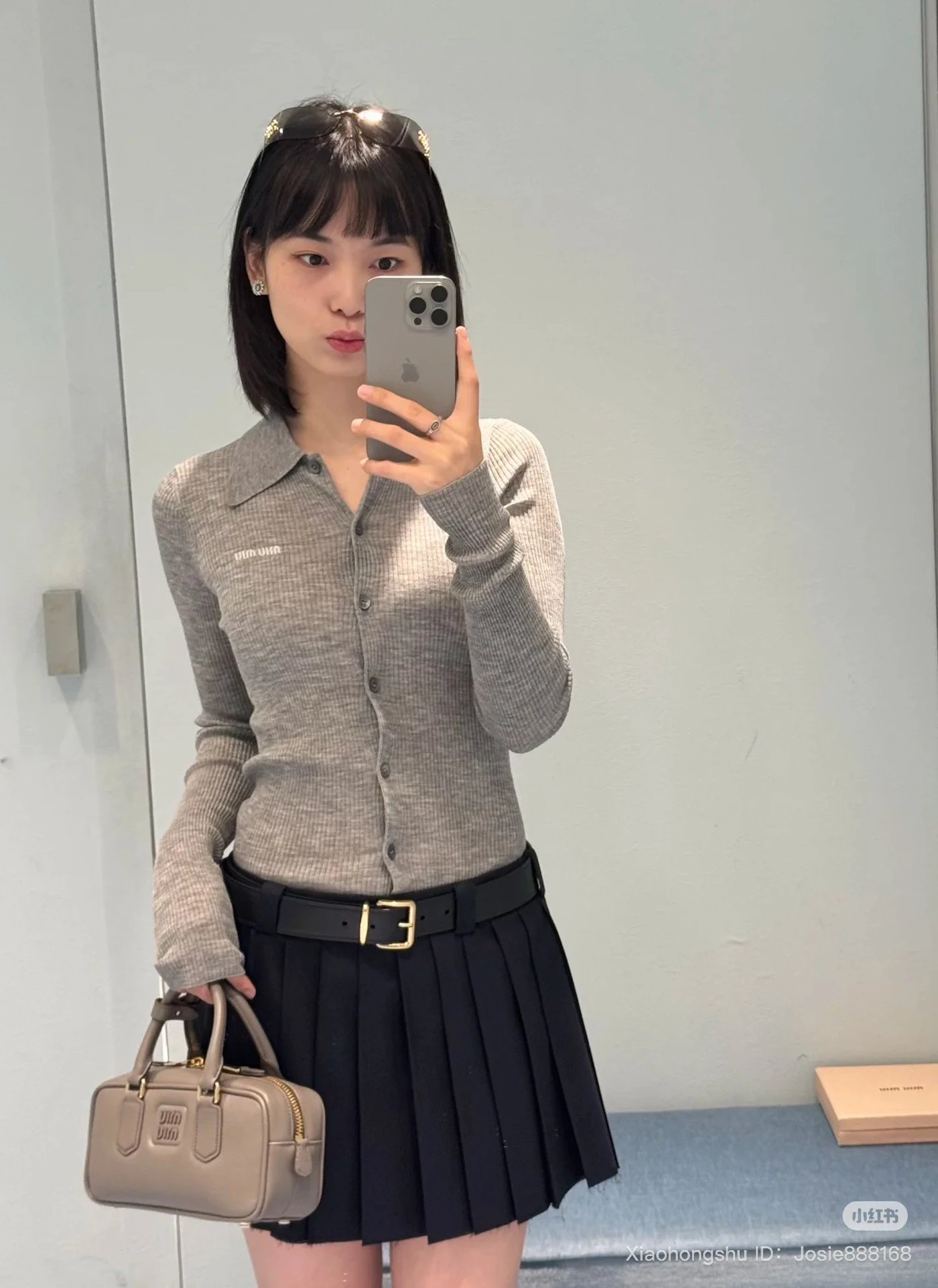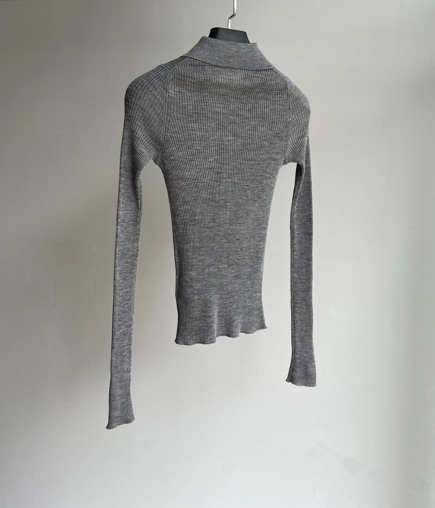 贸易公司渠道 miu丝羊绒长袖polo衫 坑条针织弹力修身版型